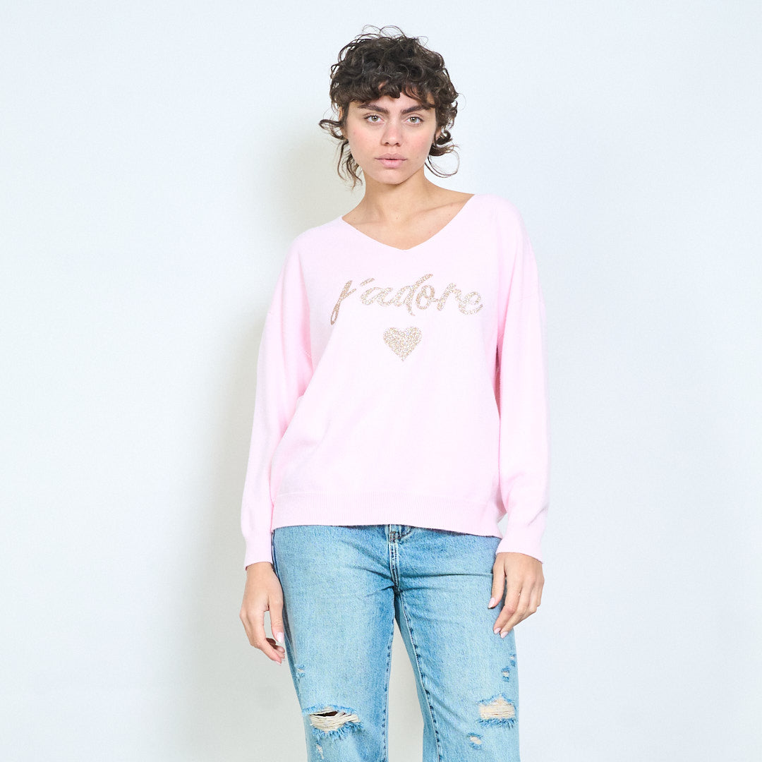 批发“j’adore”亮片字母 V 领针织毛衣