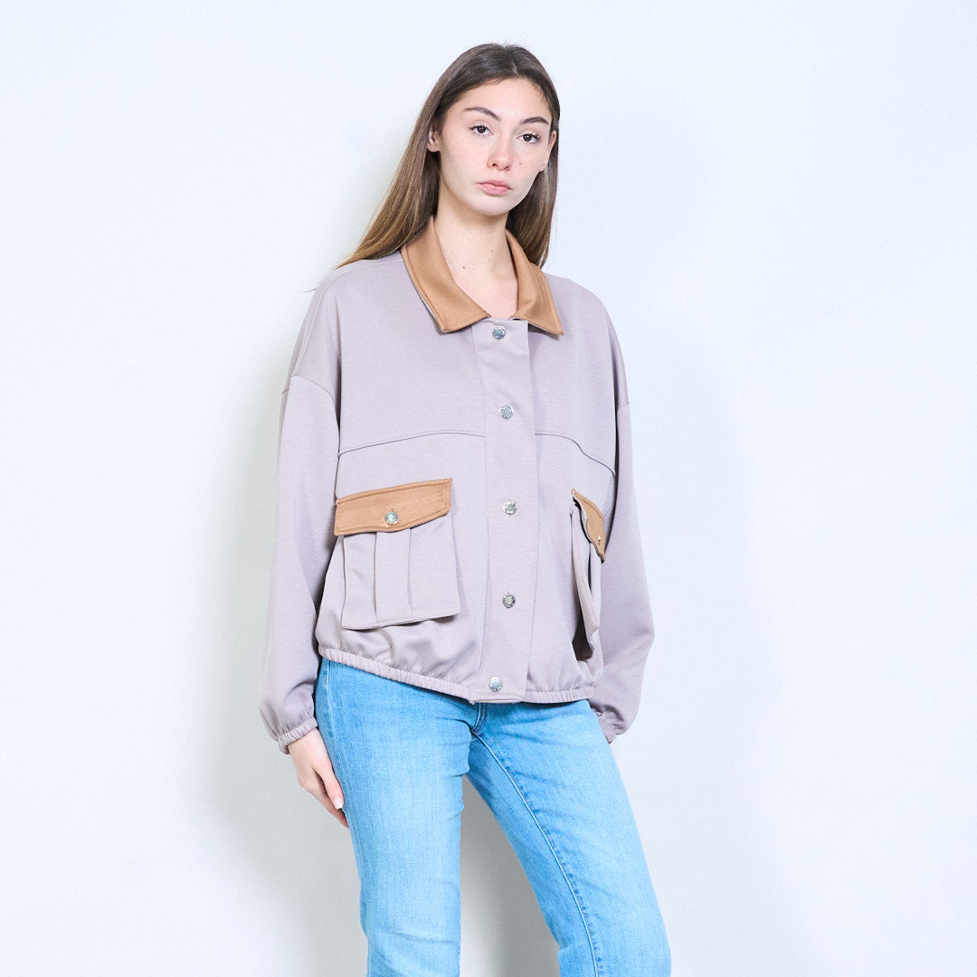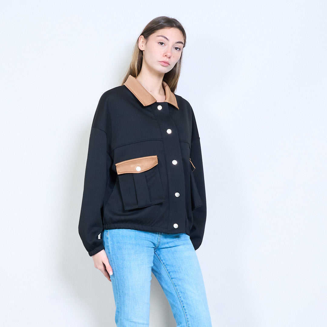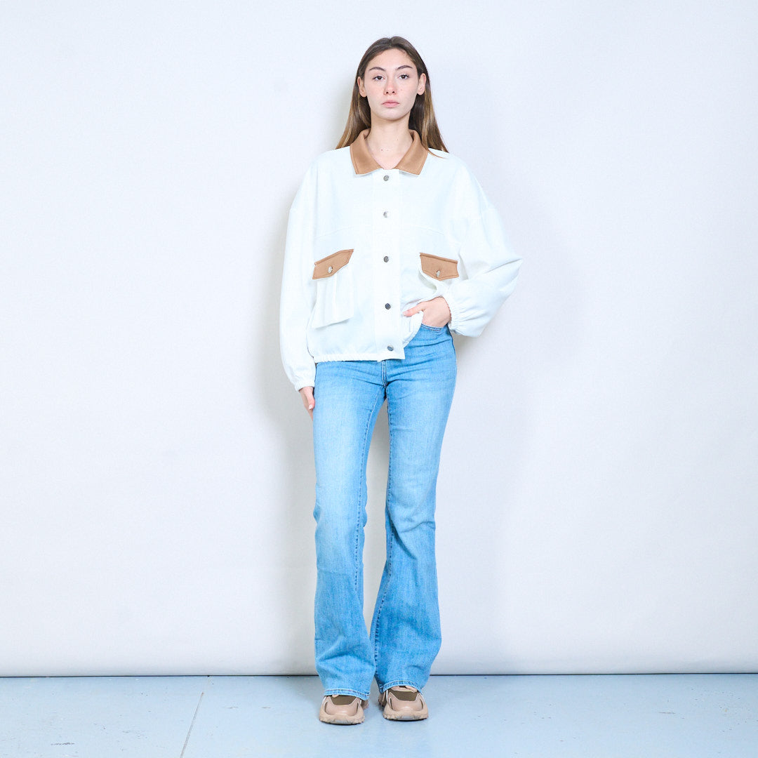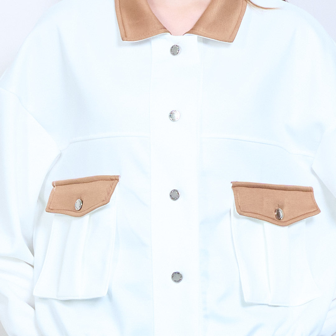 对比细节正面纽扣休闲夹克批发