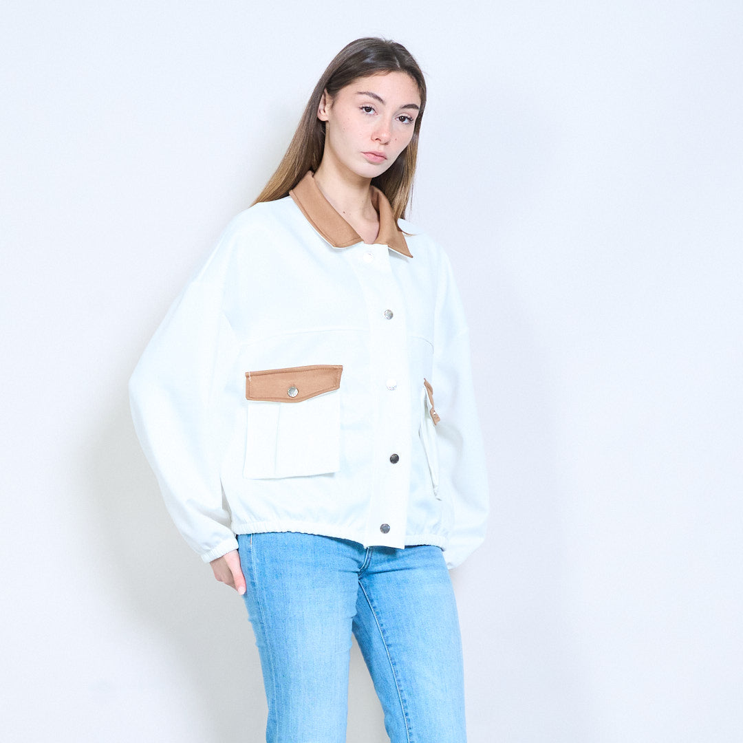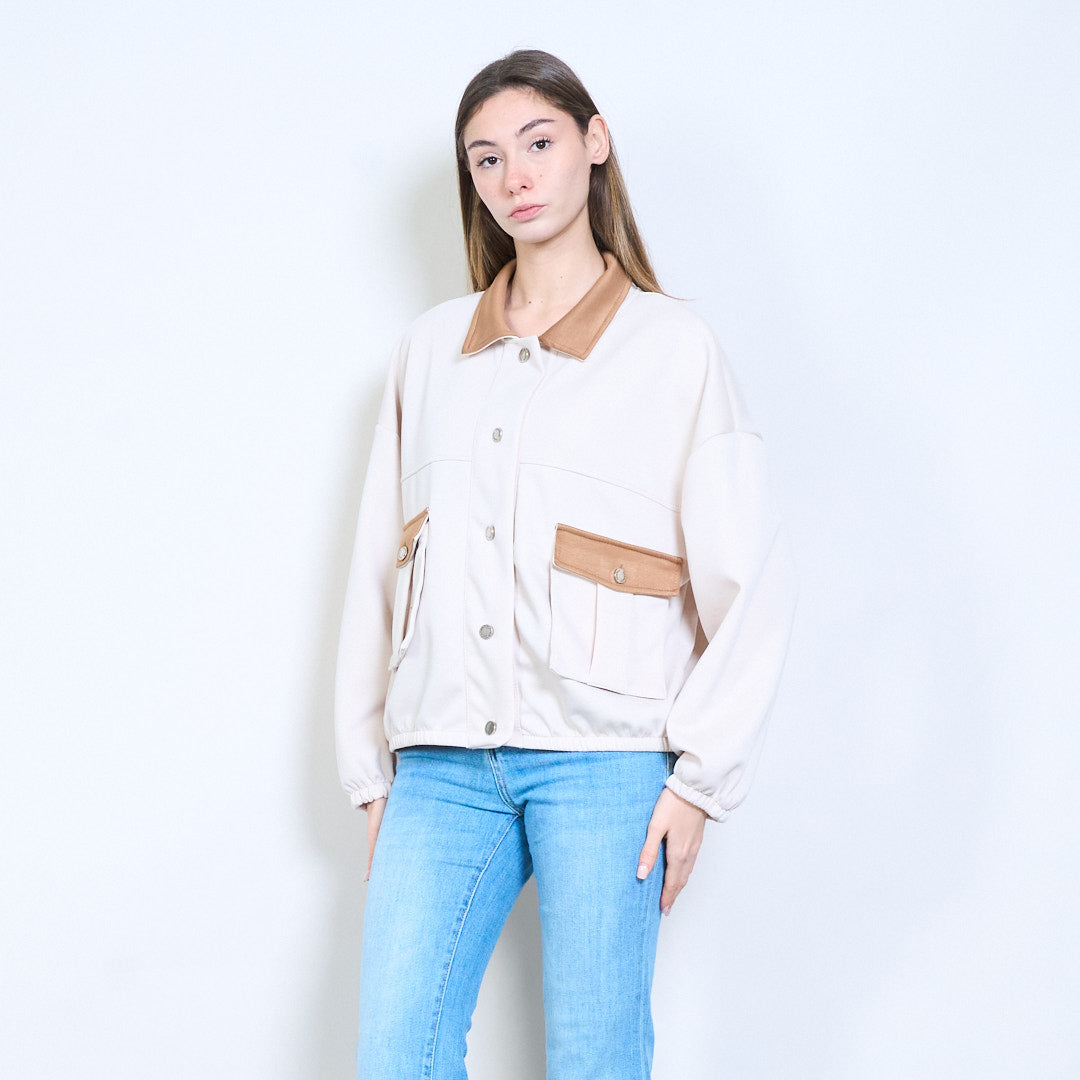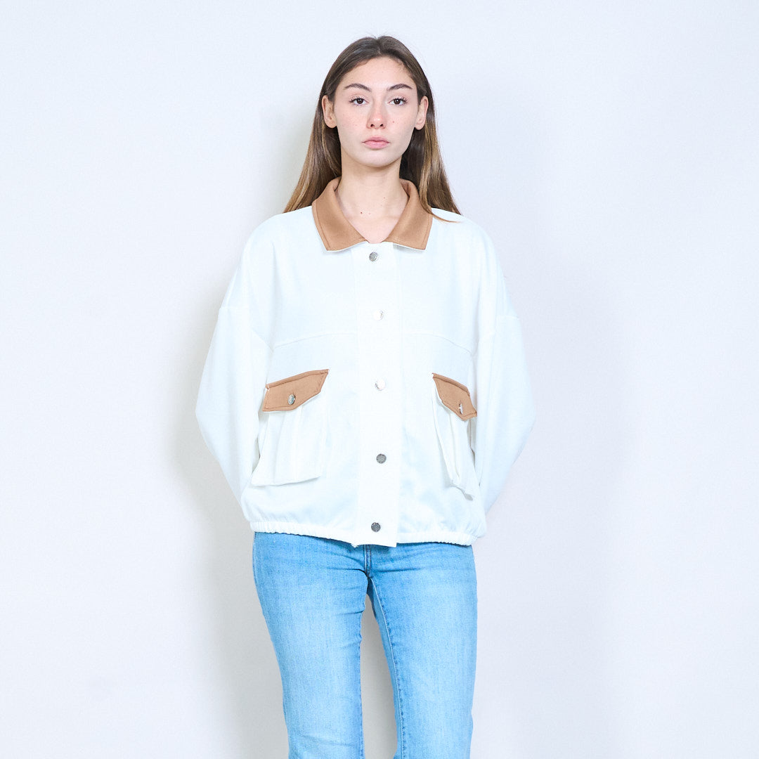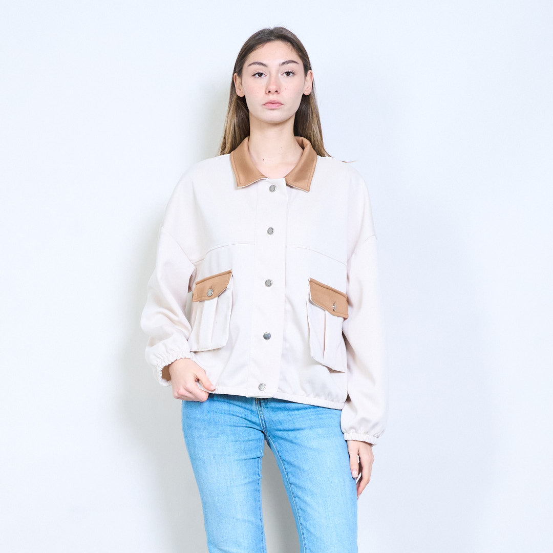 对比细节正面纽扣休闲夹克批发