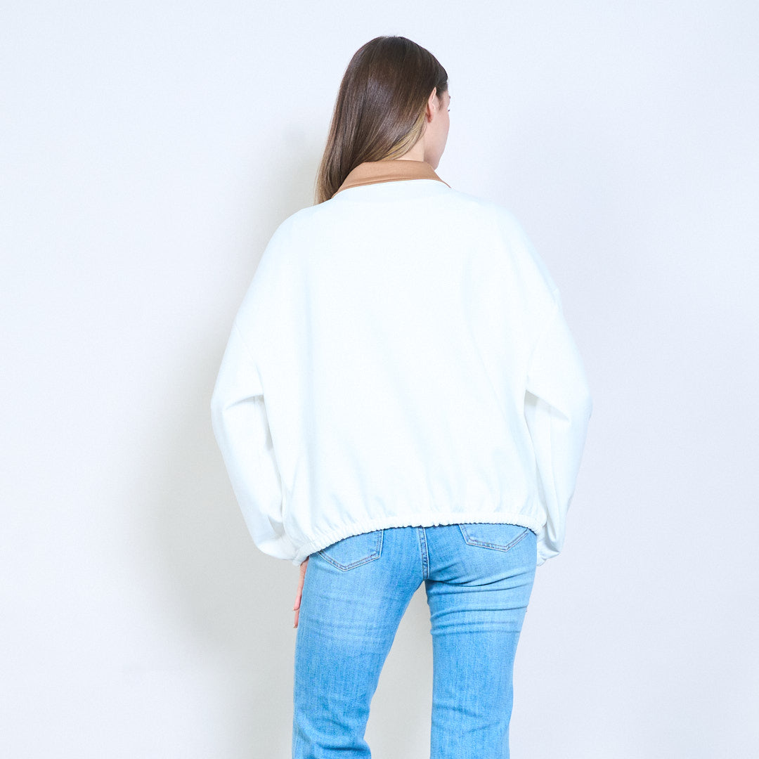 - 松紧下摆和袖口营造出简洁、平衡的造型