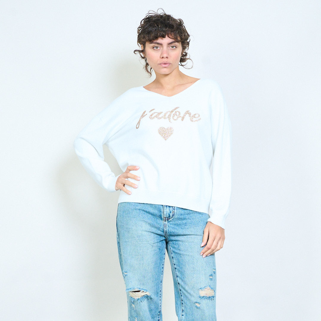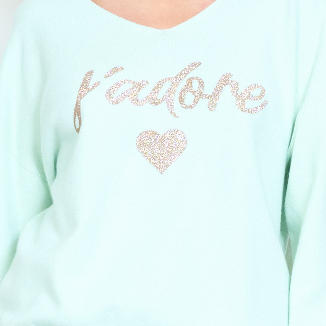 - 正面印有“j’adore”字样,带有闪光效果细节