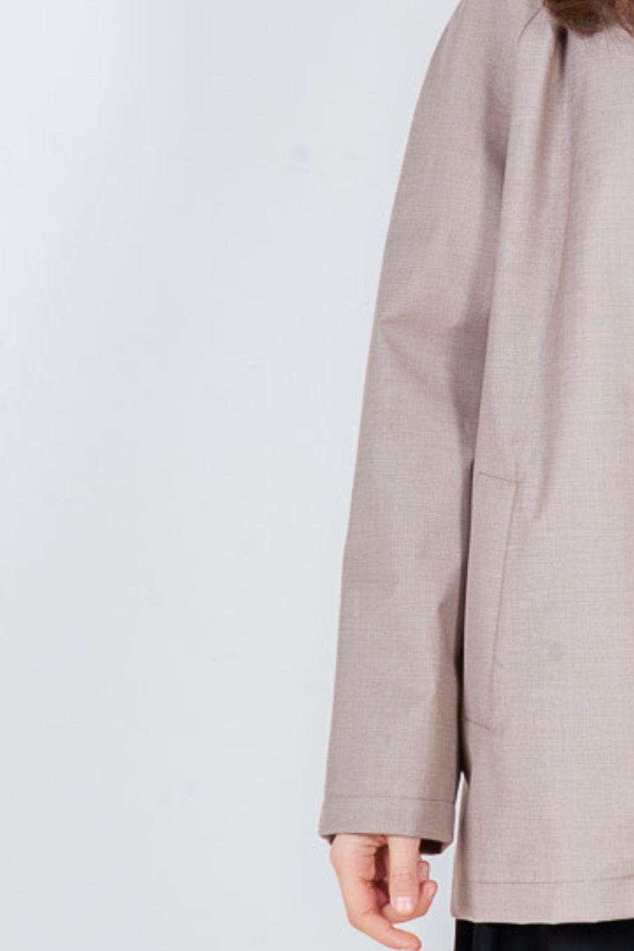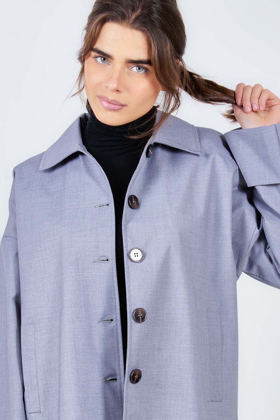 - 正面纽扣闭合营造出简洁、结构化的外观
