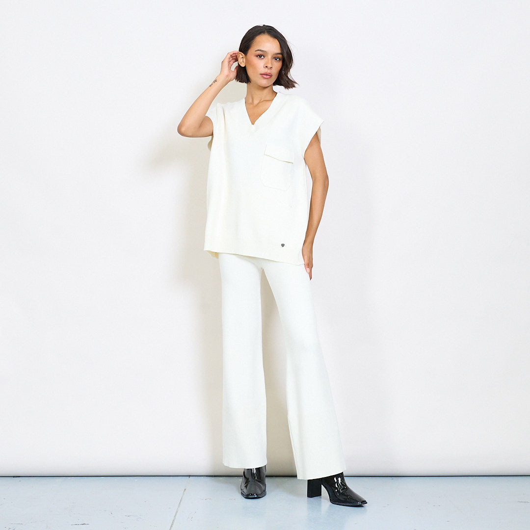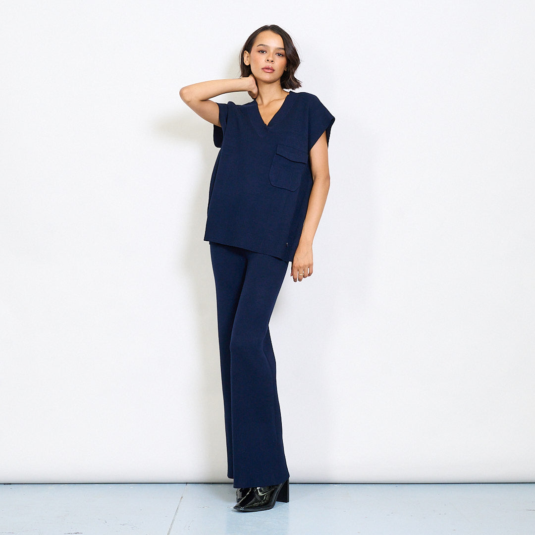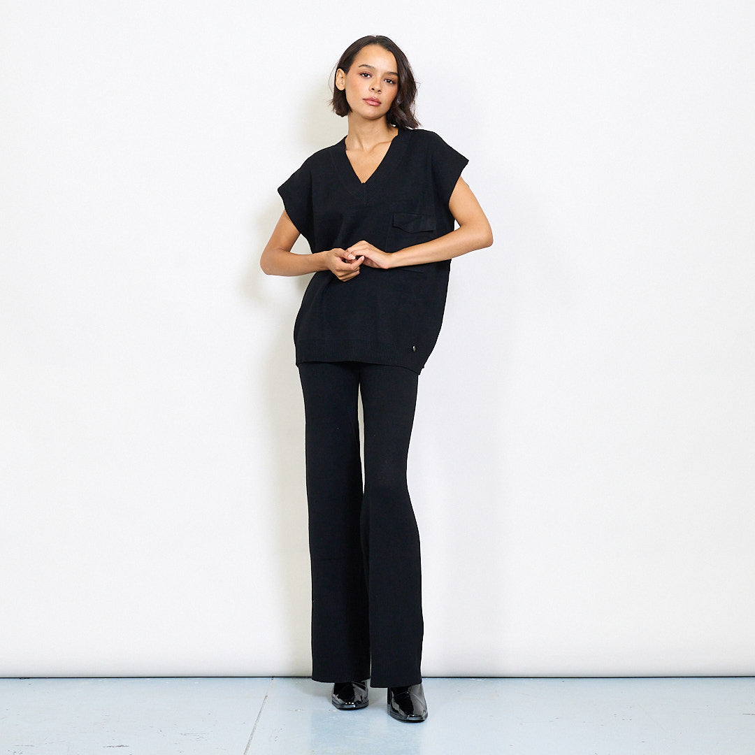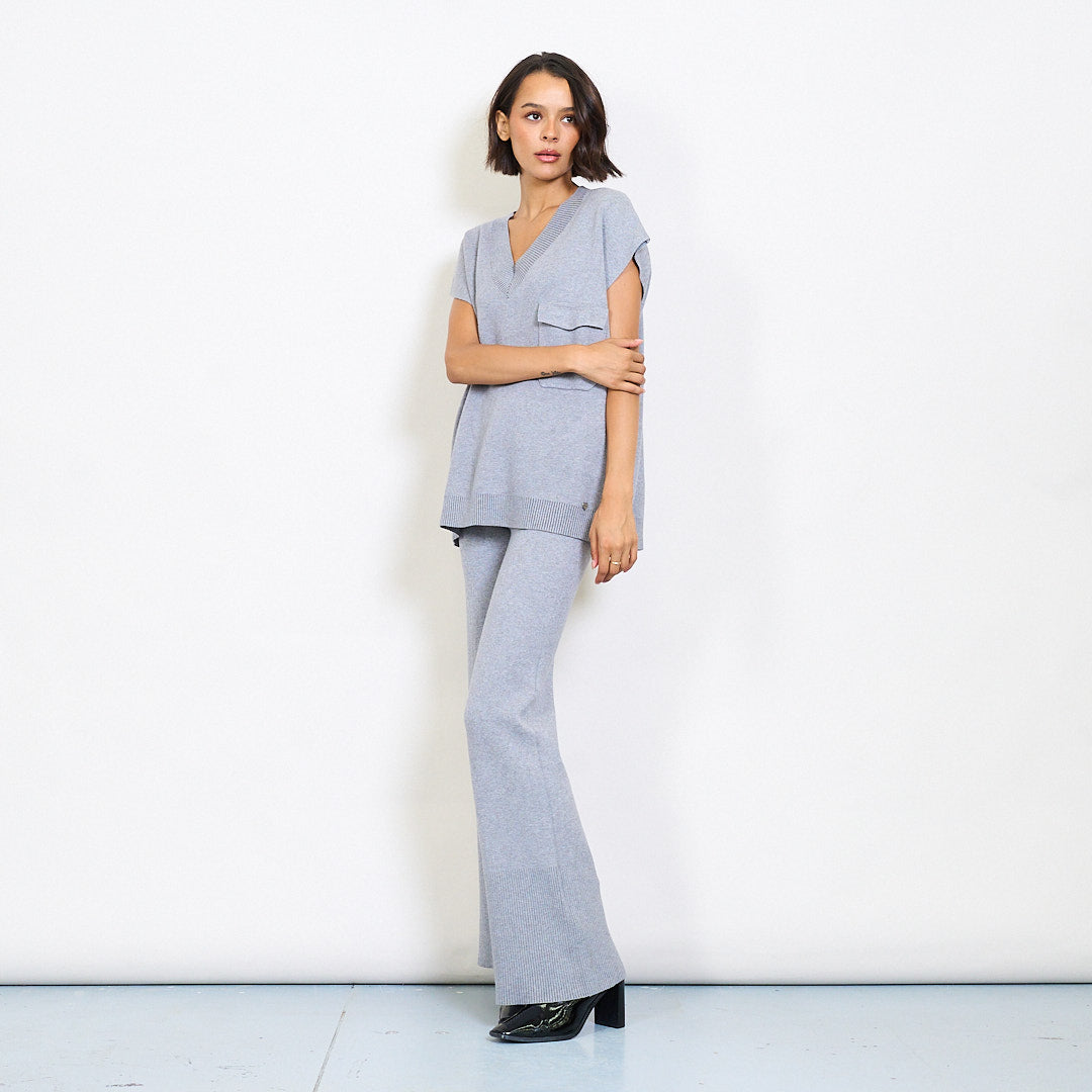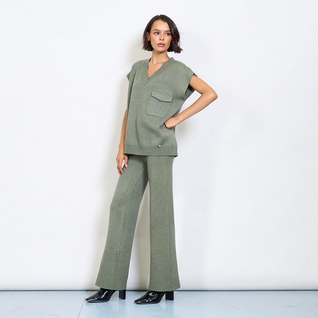 - 两件套针织套件,带有轻松的无袖上衣和搭配的长裤