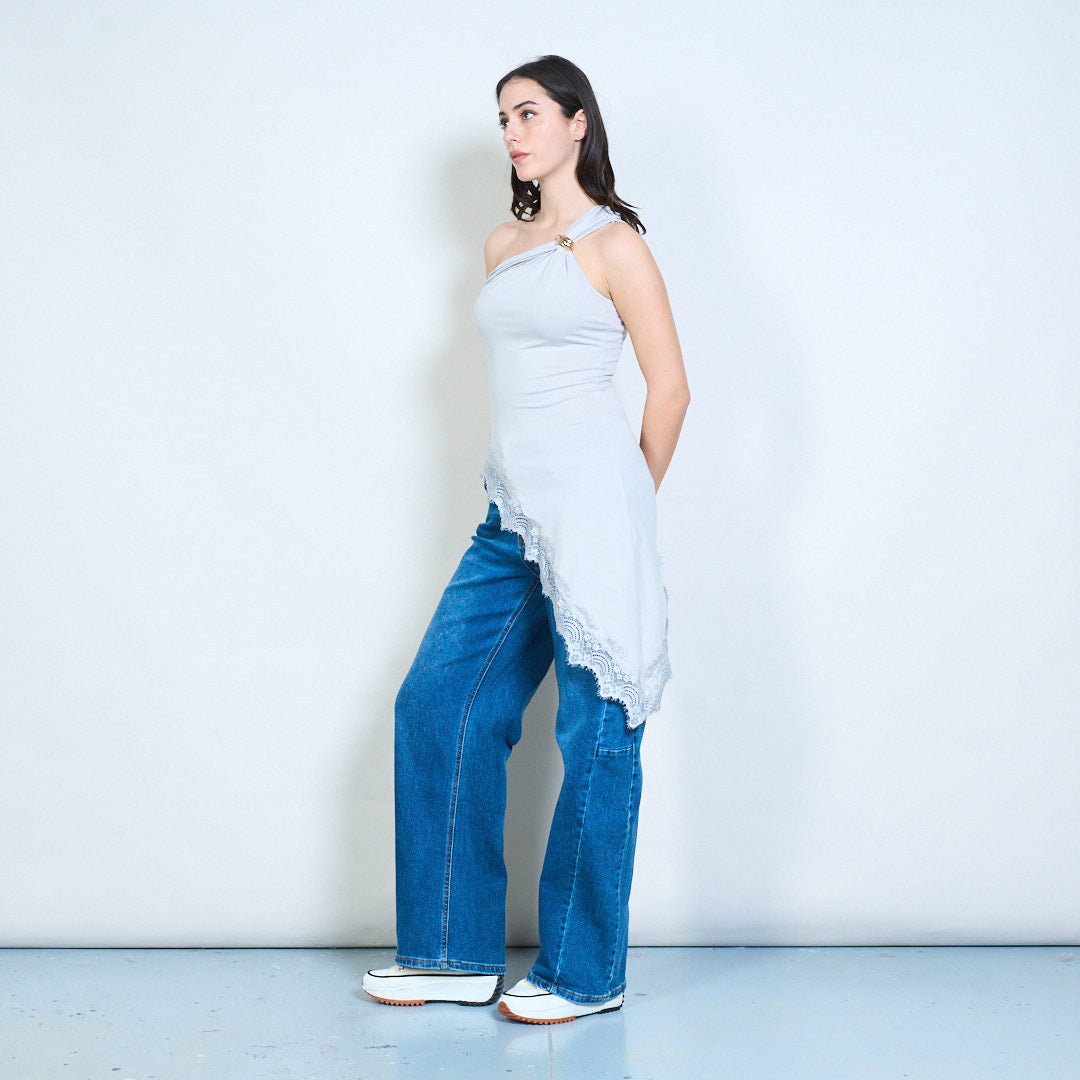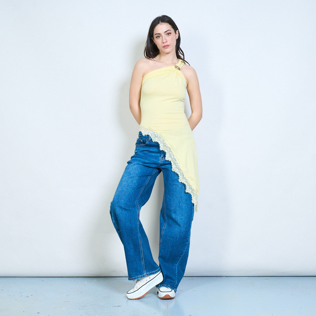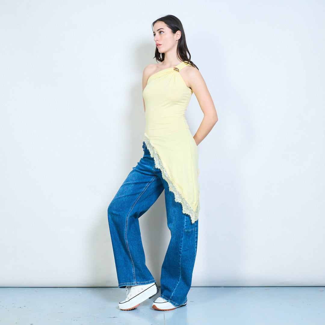 一肩不对称蕾丝边合身上衣批发