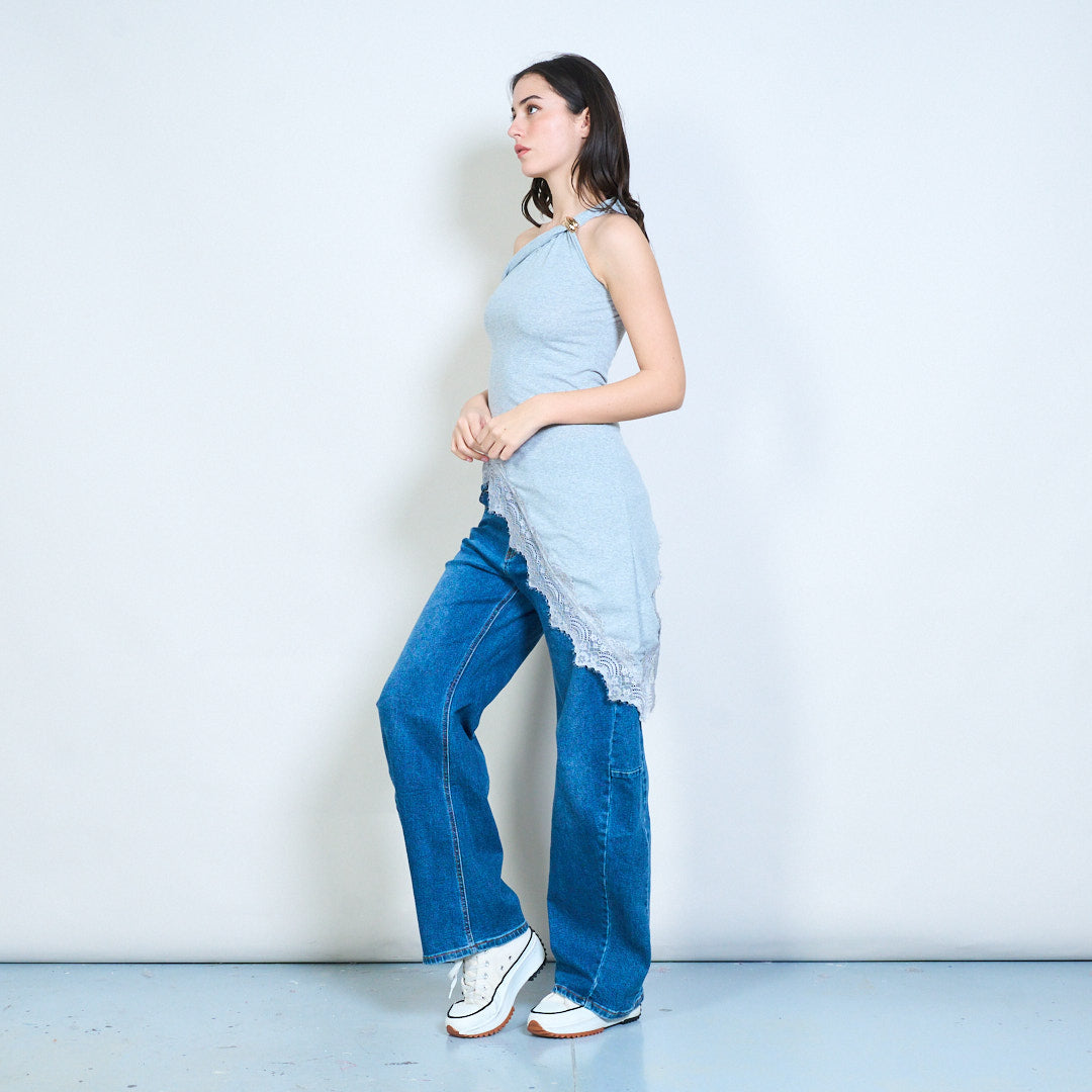 - 下摆饰有扇形蕾丝饰边
