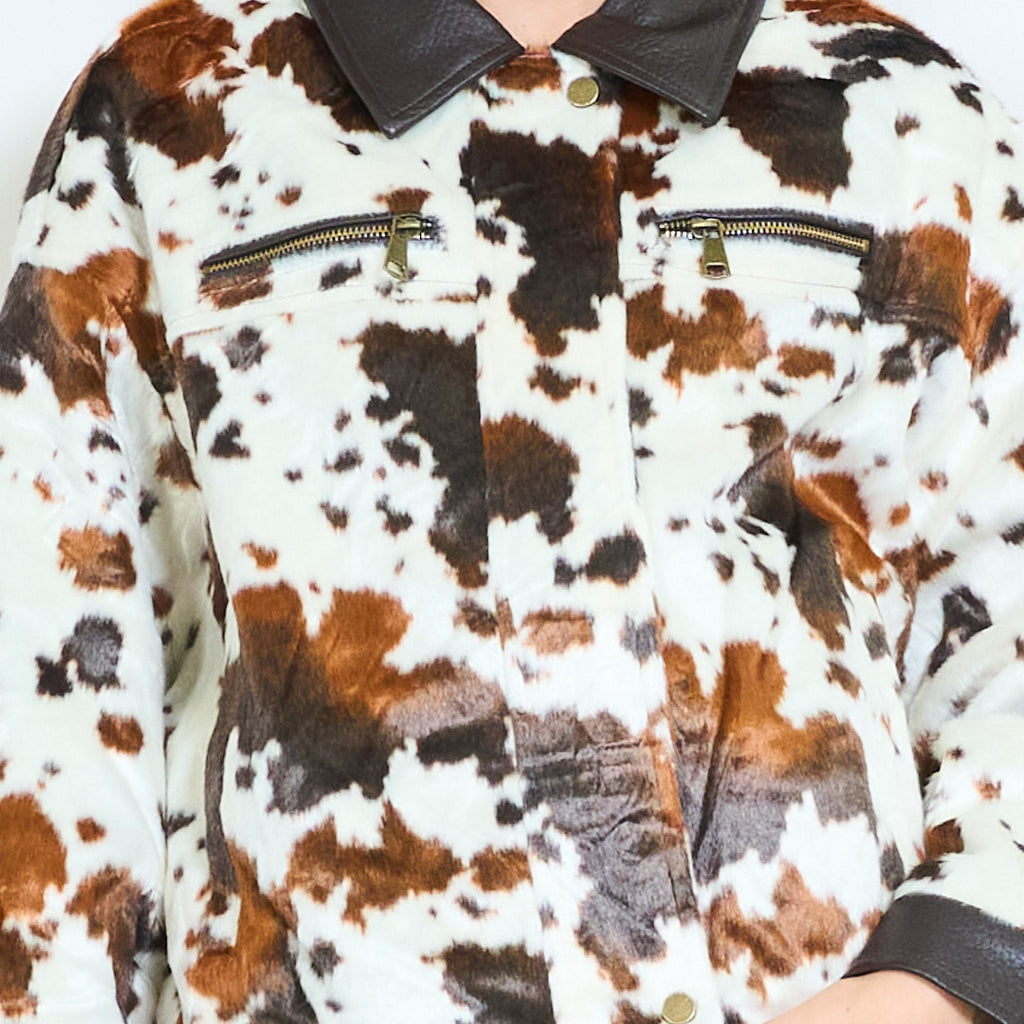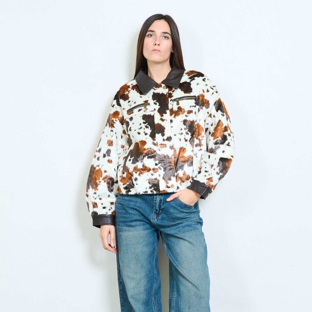 - 设计具有大胆的对比度领子和绒面式袖口效果饰面