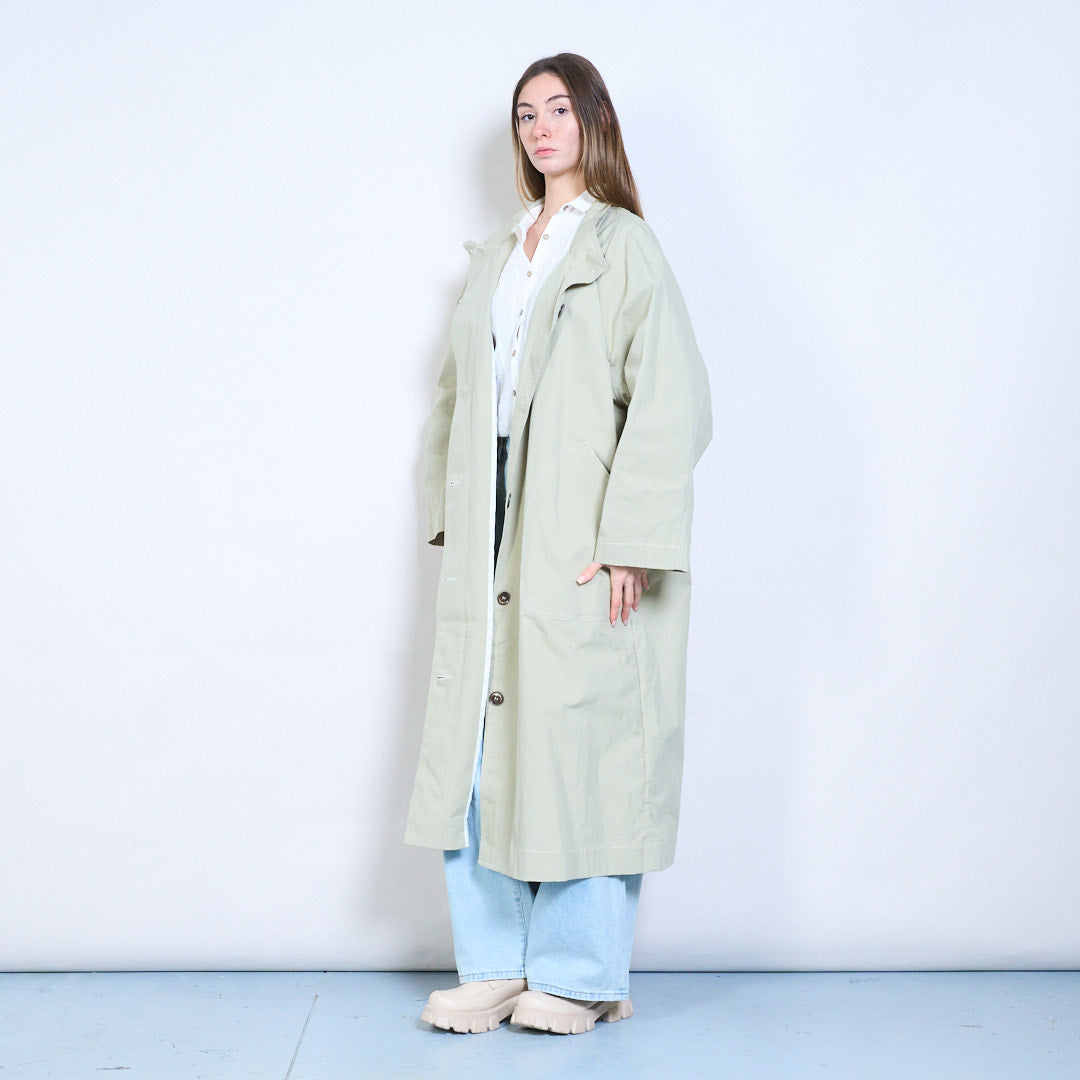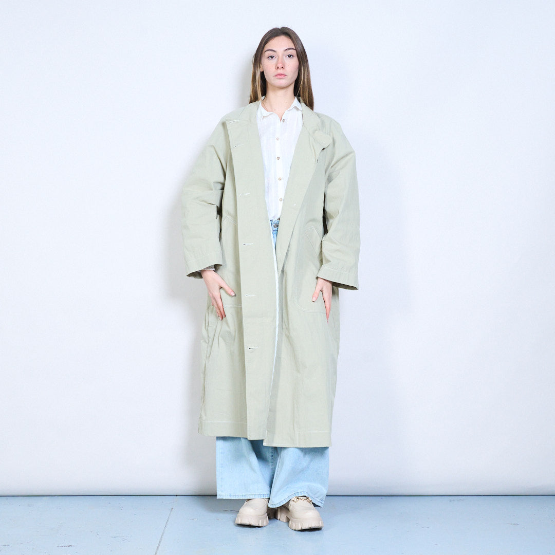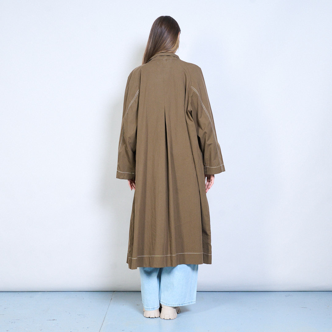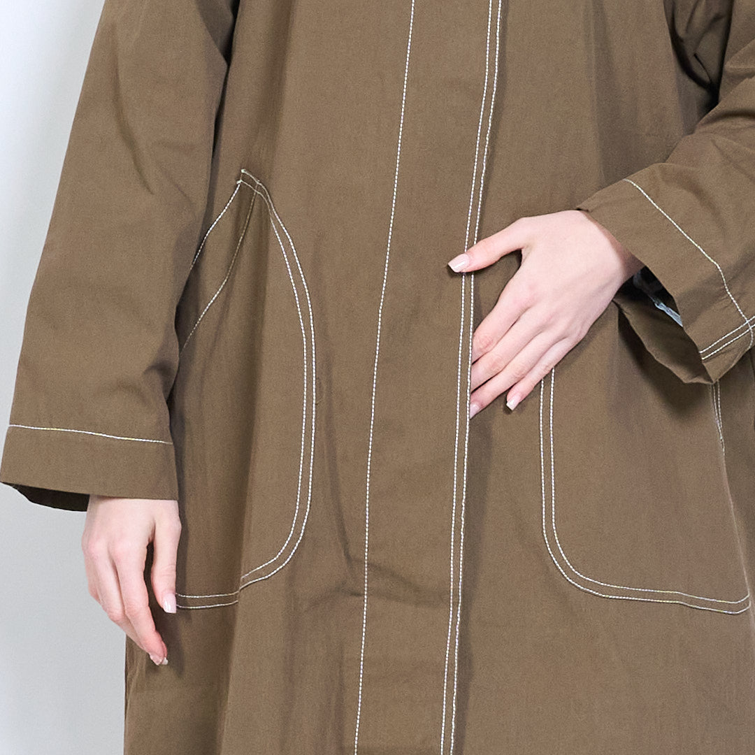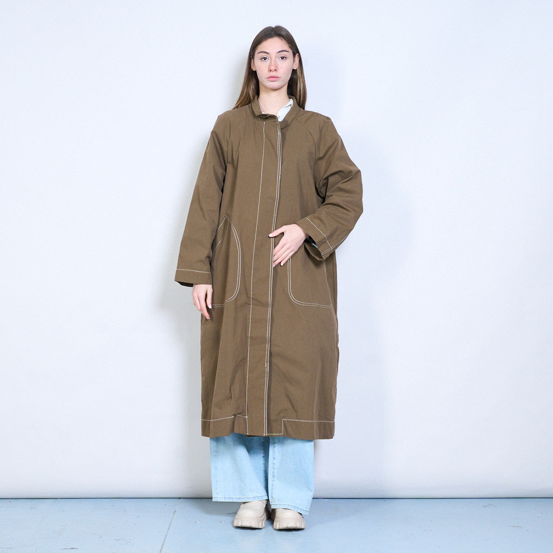 宽松版型长款对比缝线拉链前大衣批发