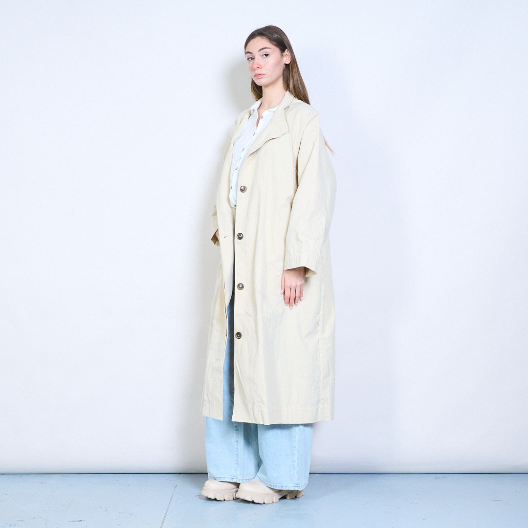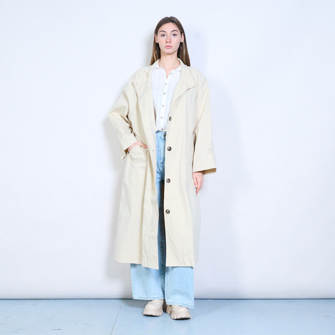 - 宽松版型长款外套,适合日常叠穿
