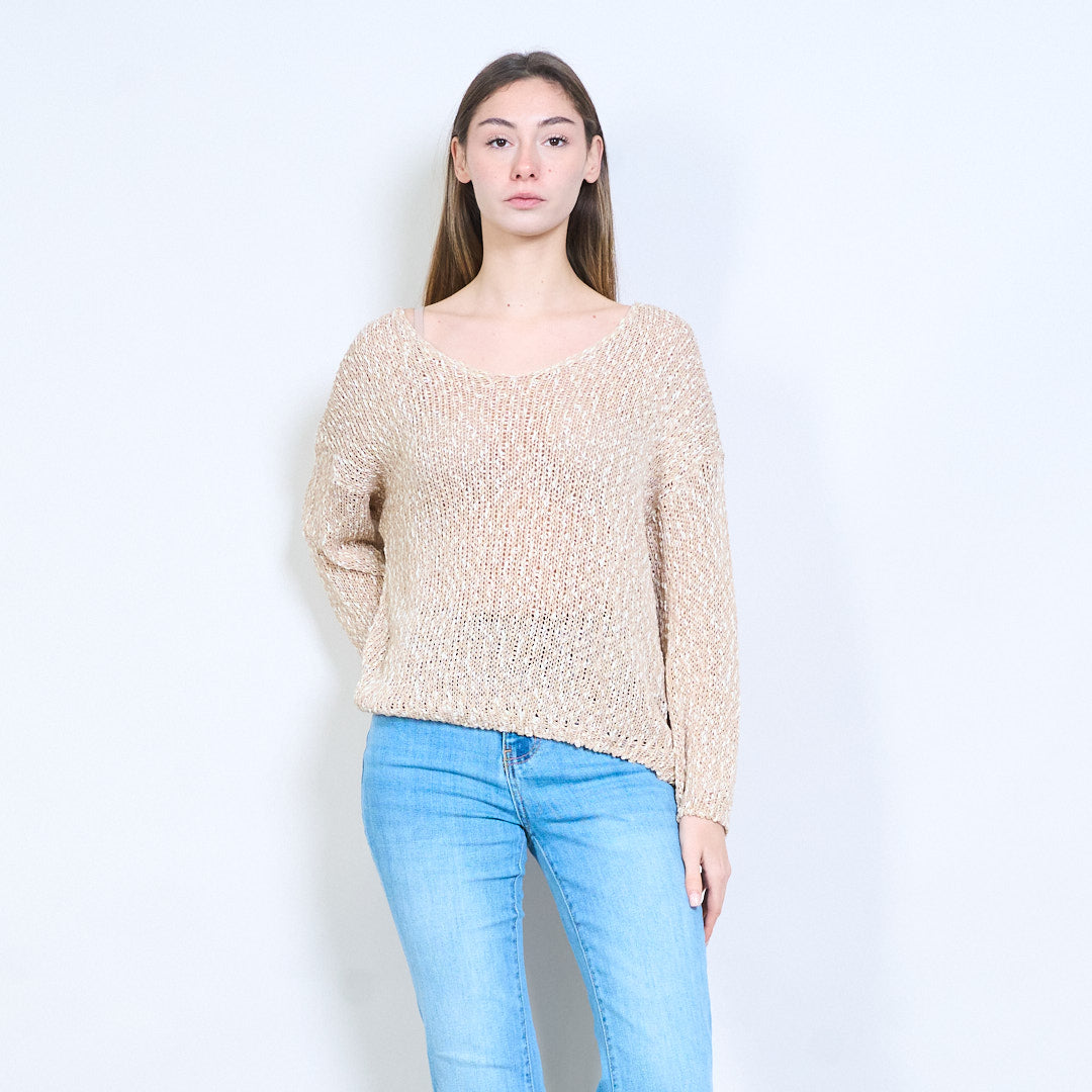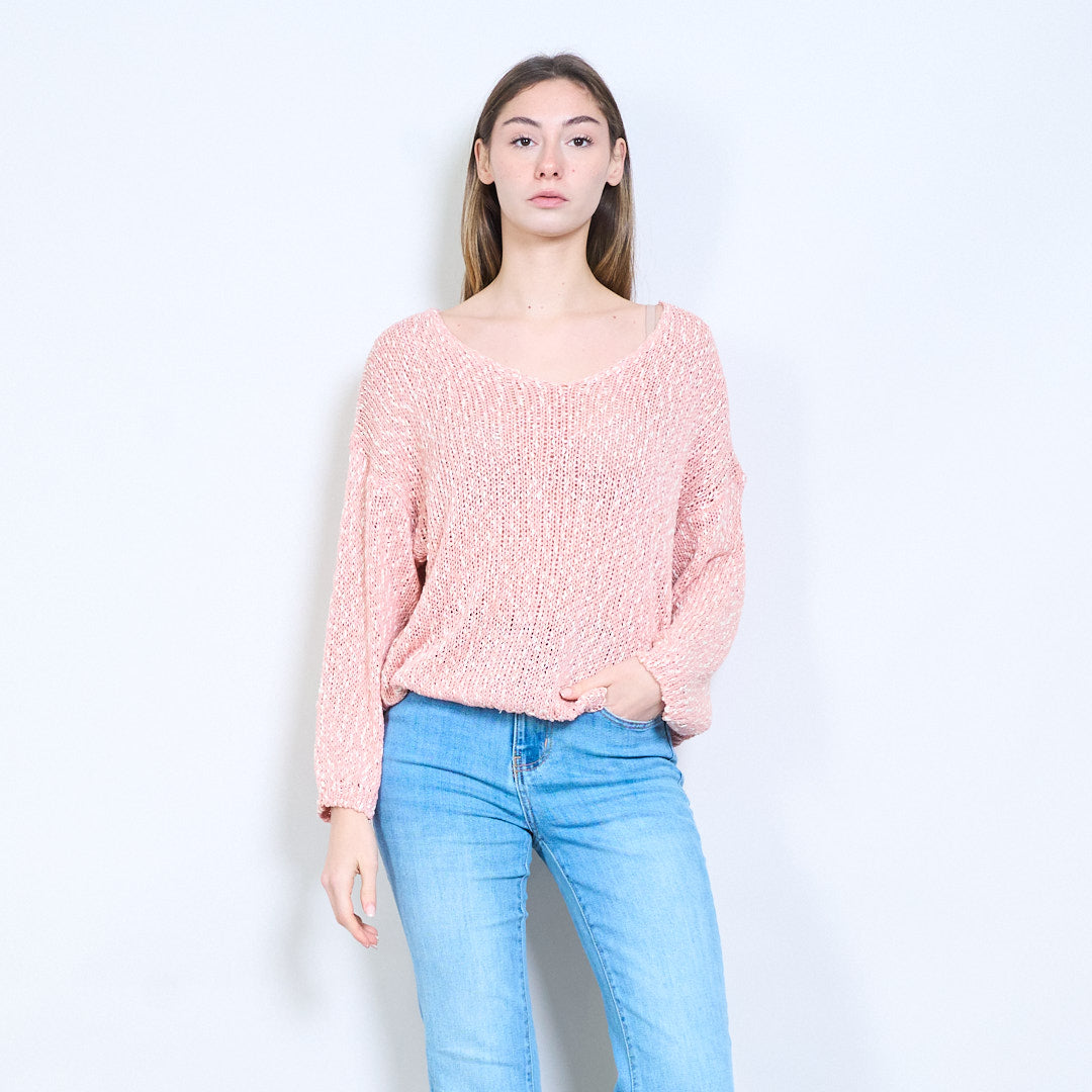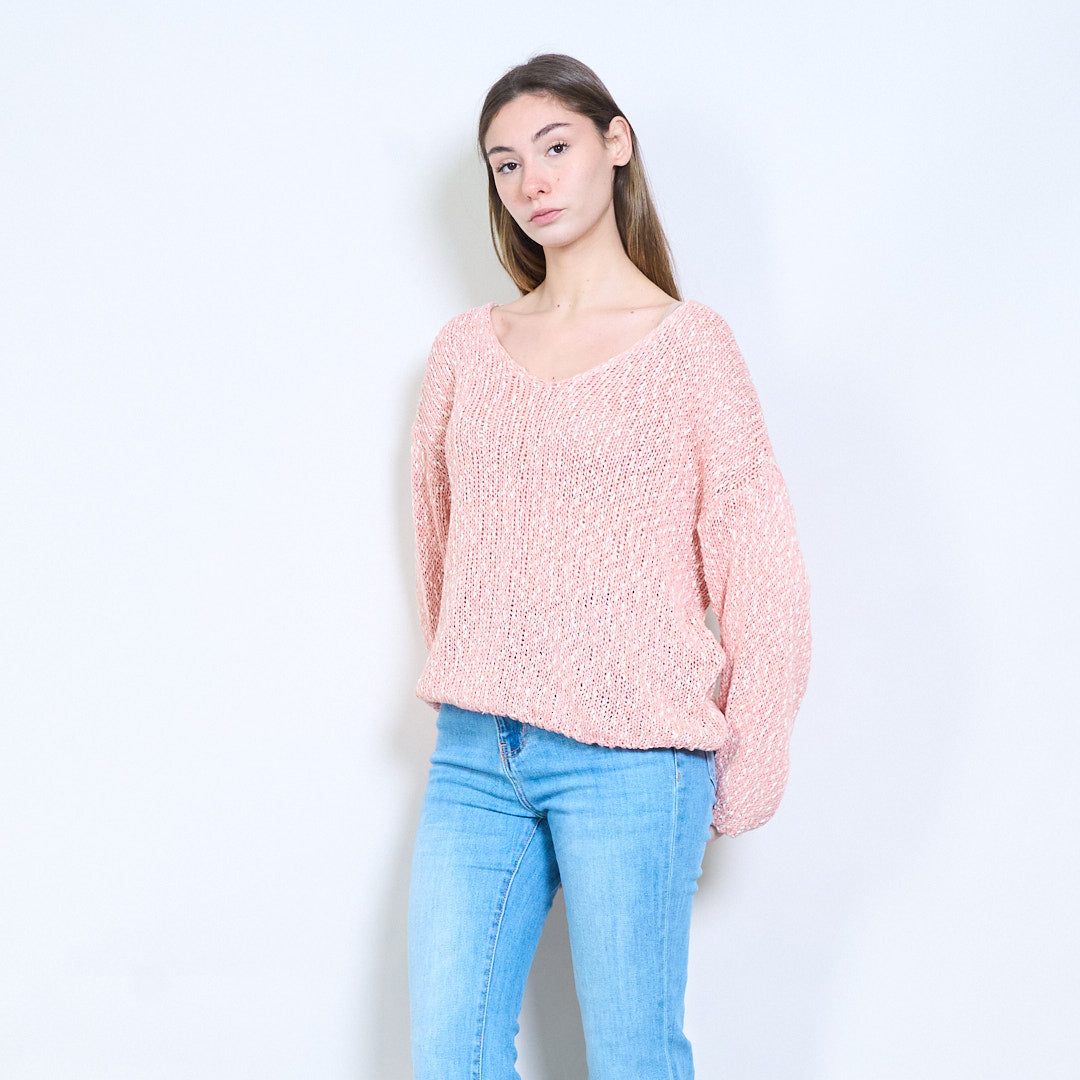 开放式针织透明V领长袖轻薄毛衣批发