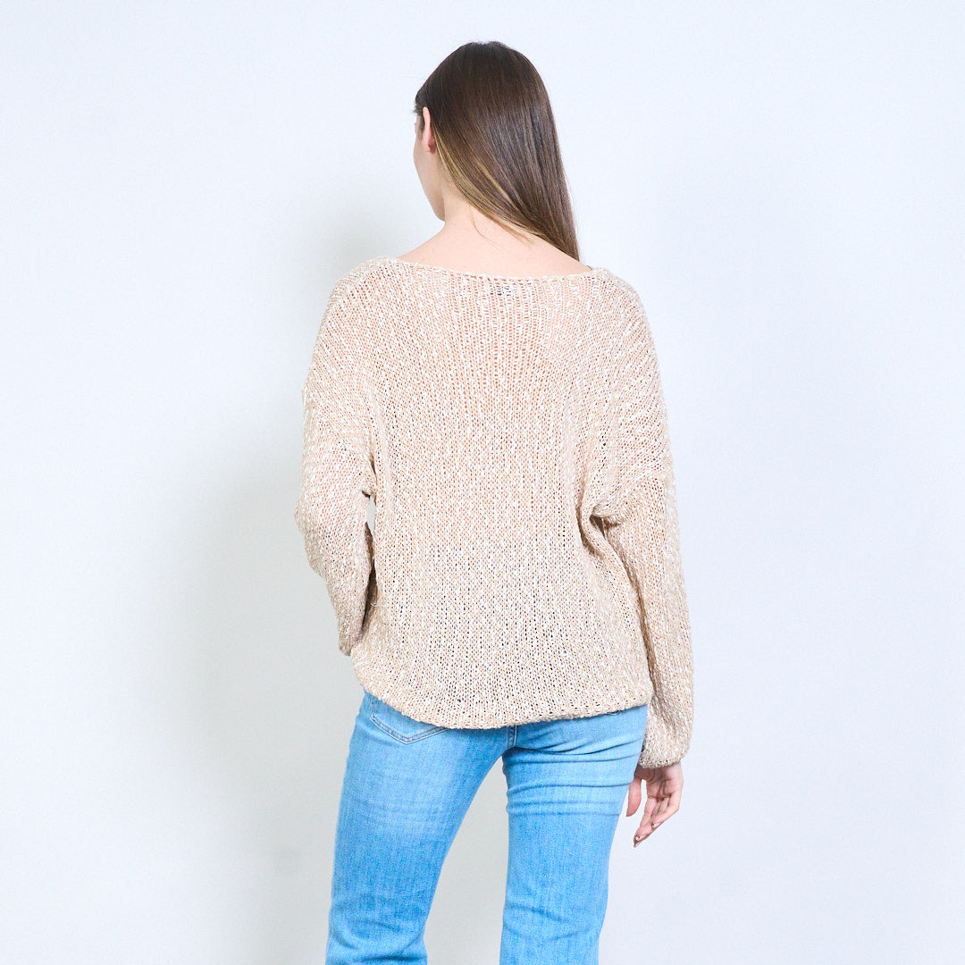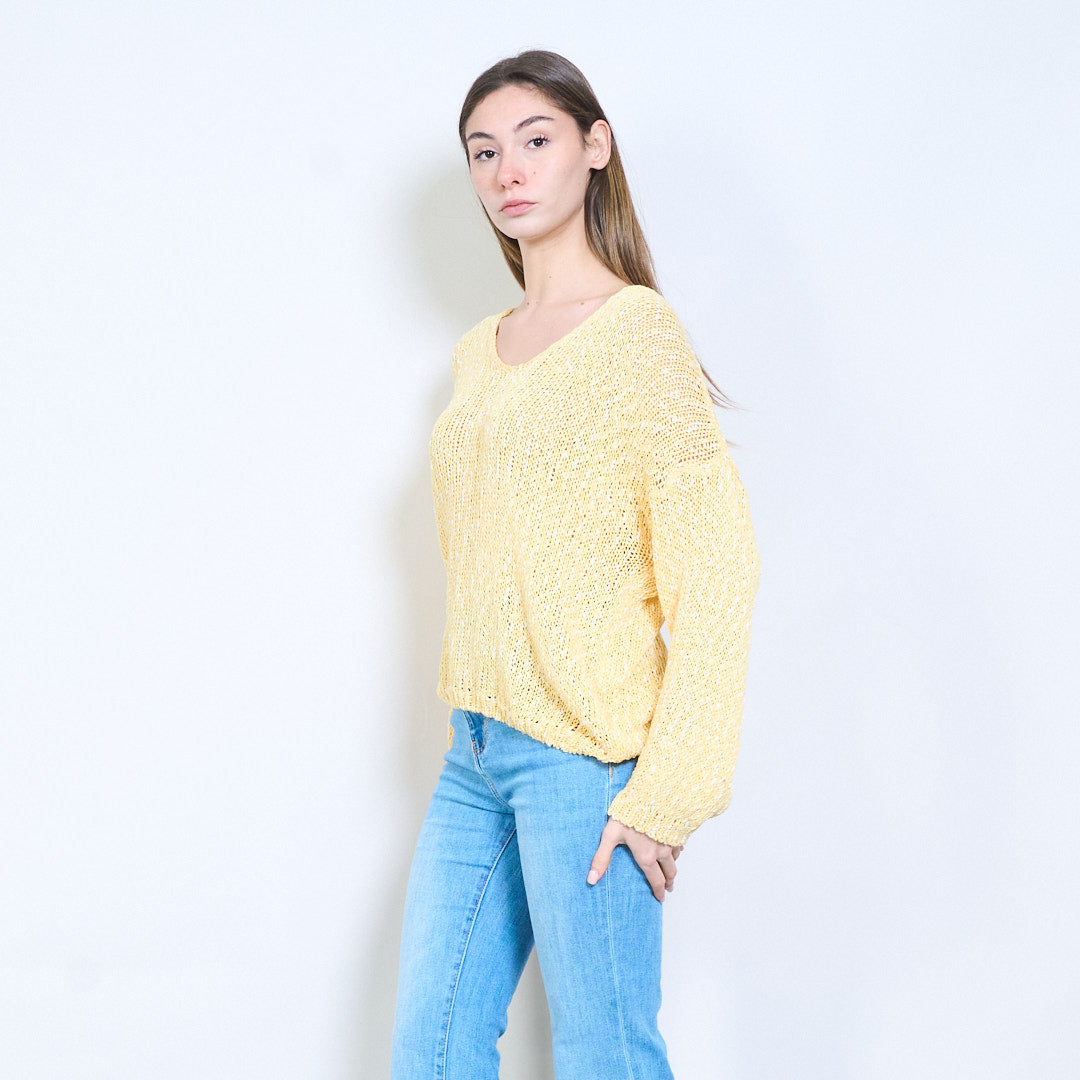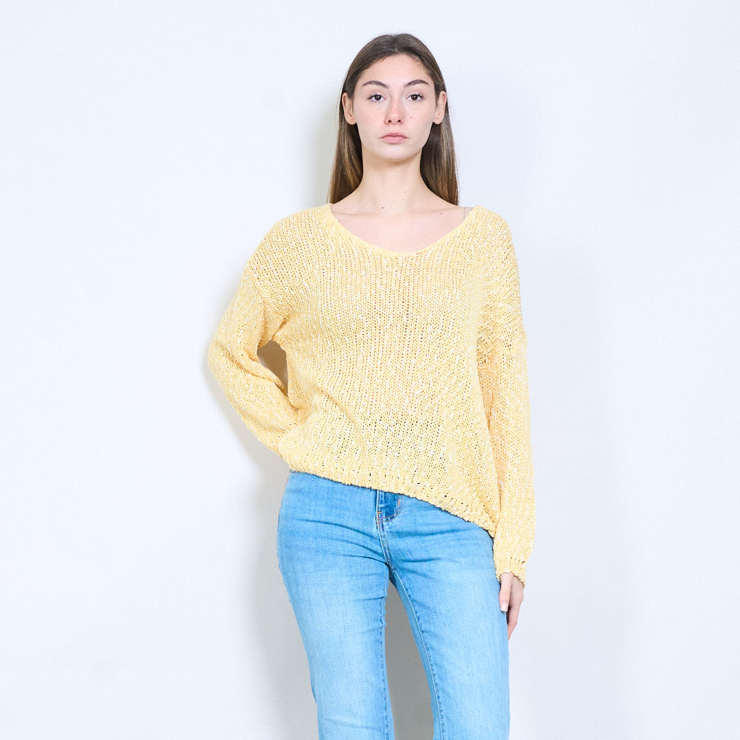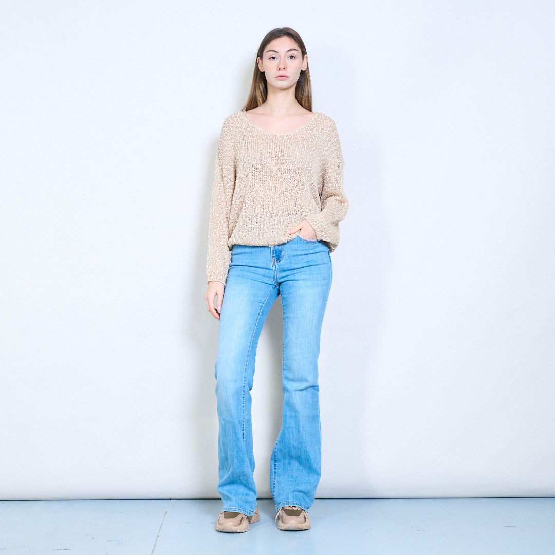开放式针织透明V领长袖轻薄毛衣批发