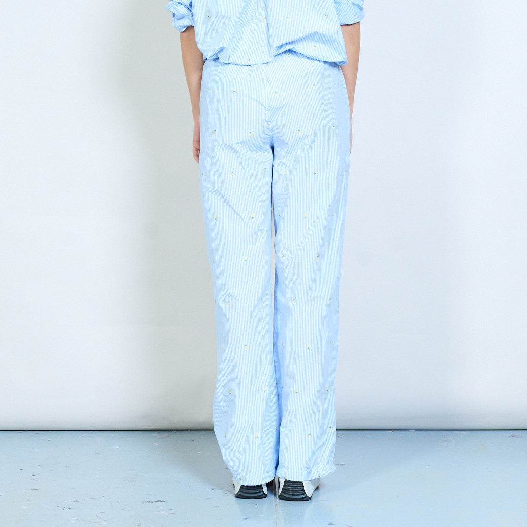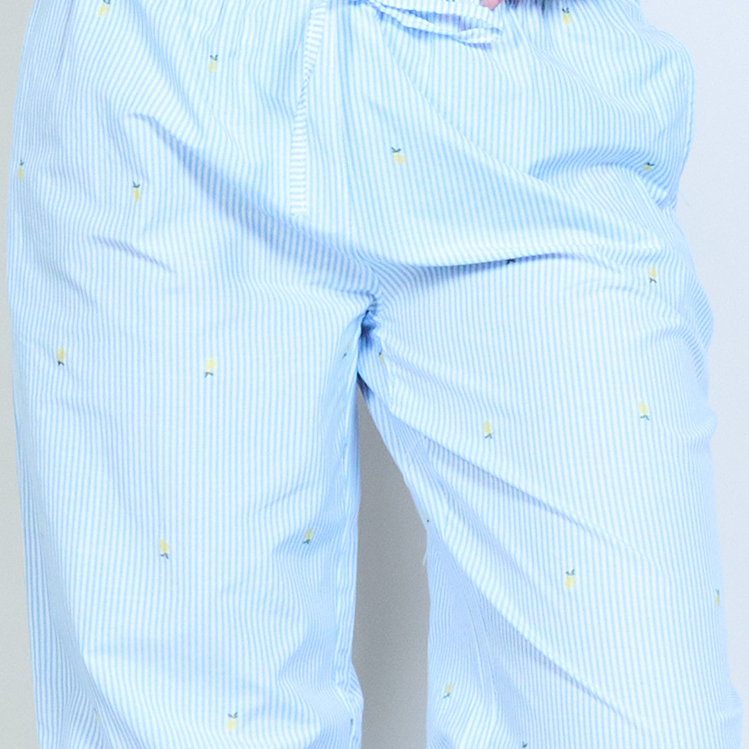 条纹简约图案印花休闲直筒长裤批发