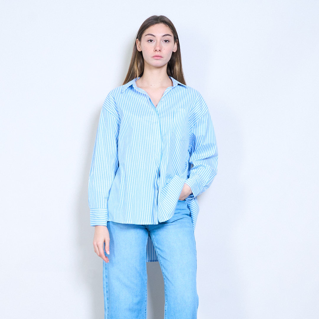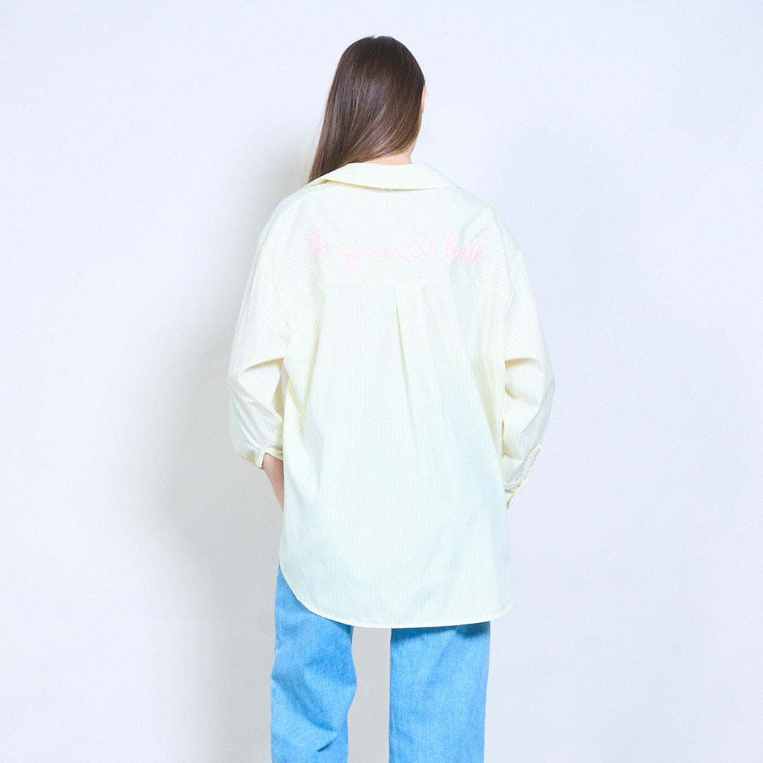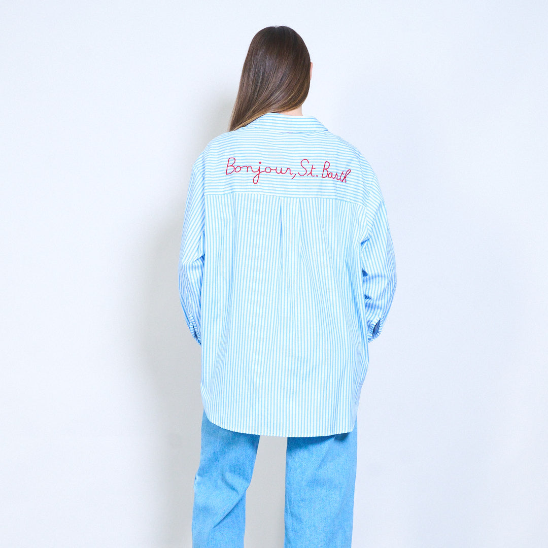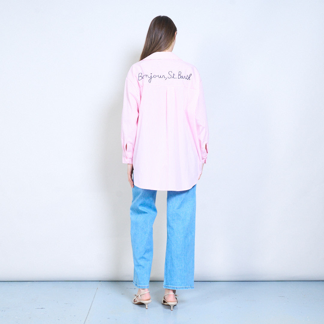 条纹“Bonjour St Barth”刺绣标语前纽扣衬衫批发