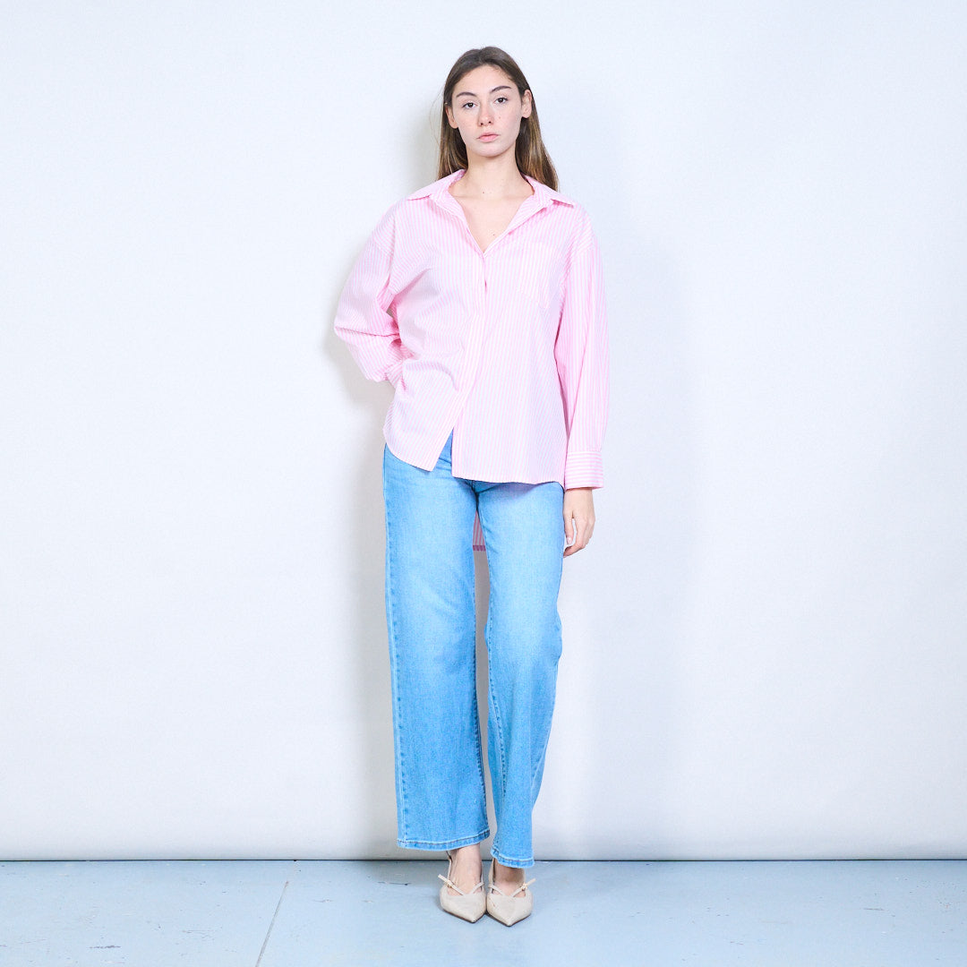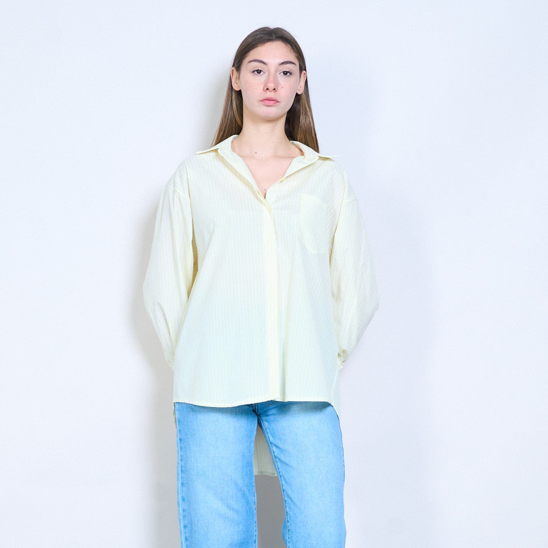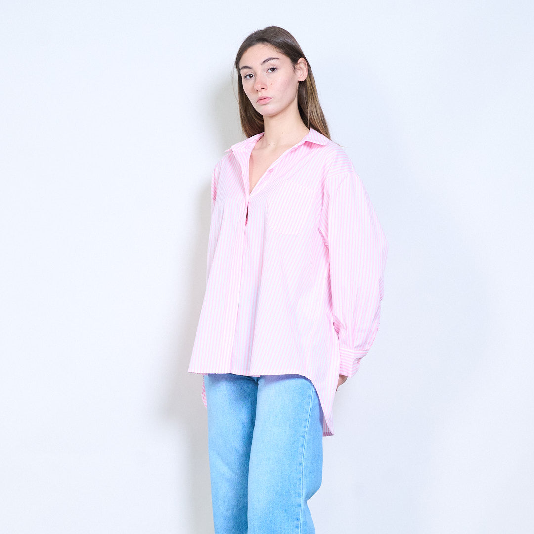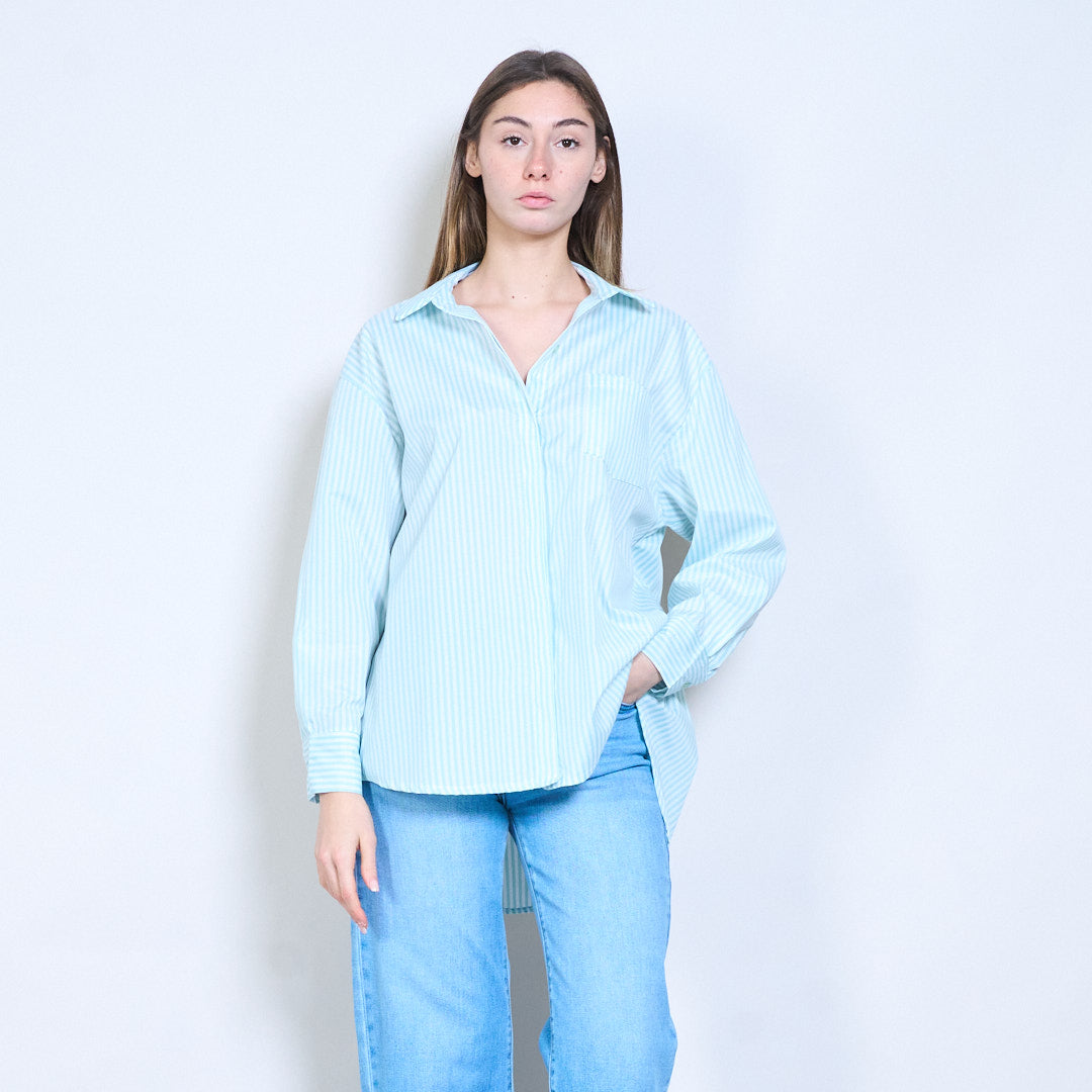 条纹“Bonjour St Barth”刺绣标语前纽扣衬衫批发