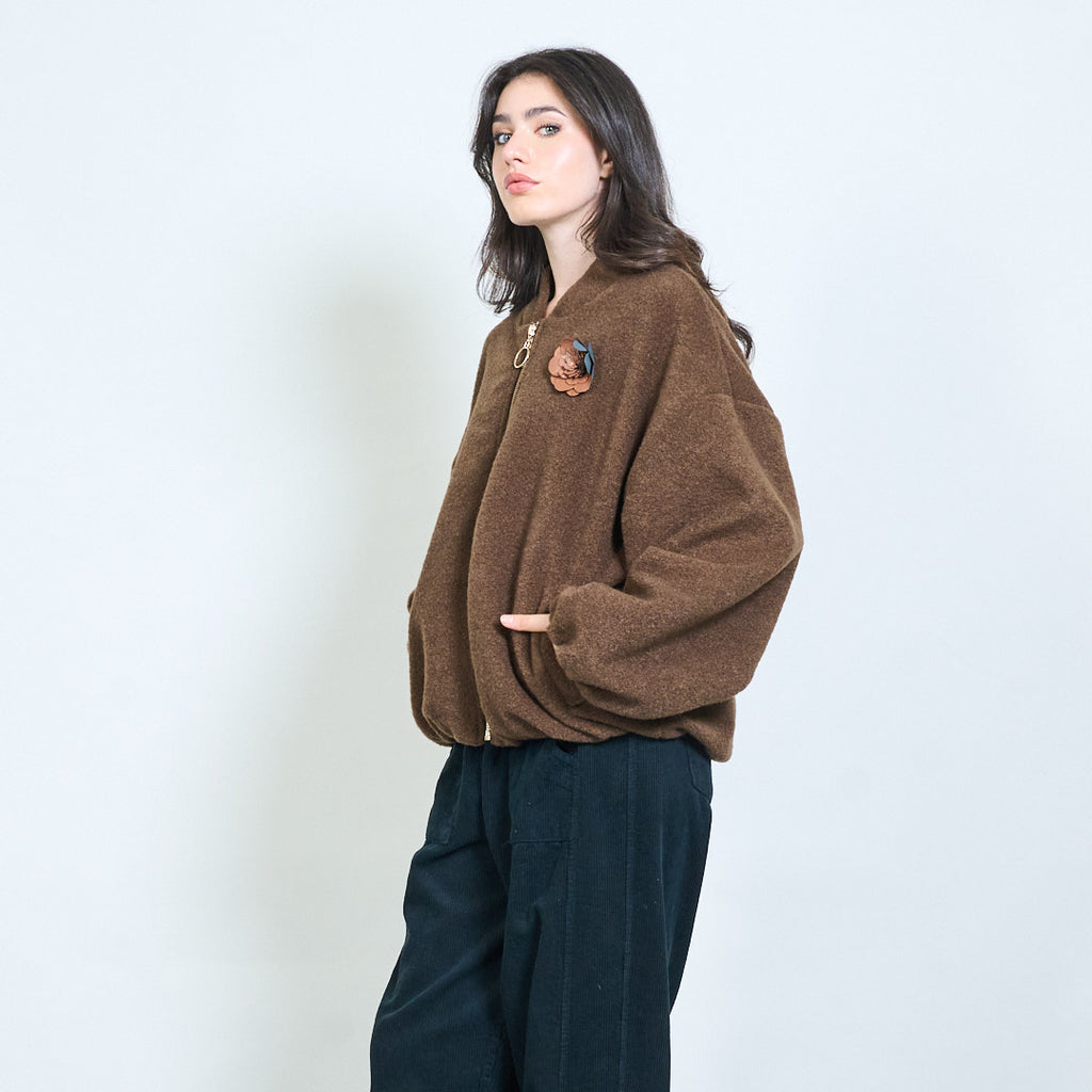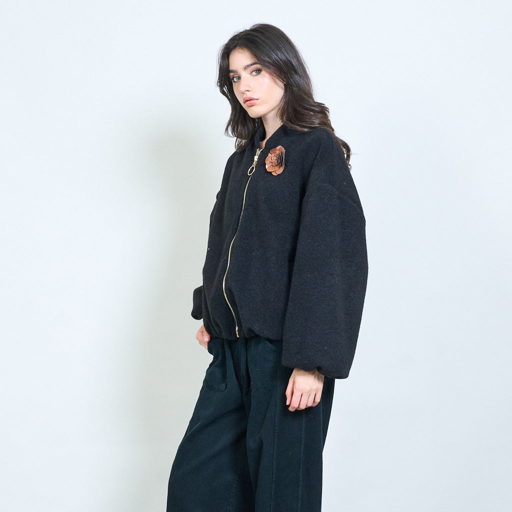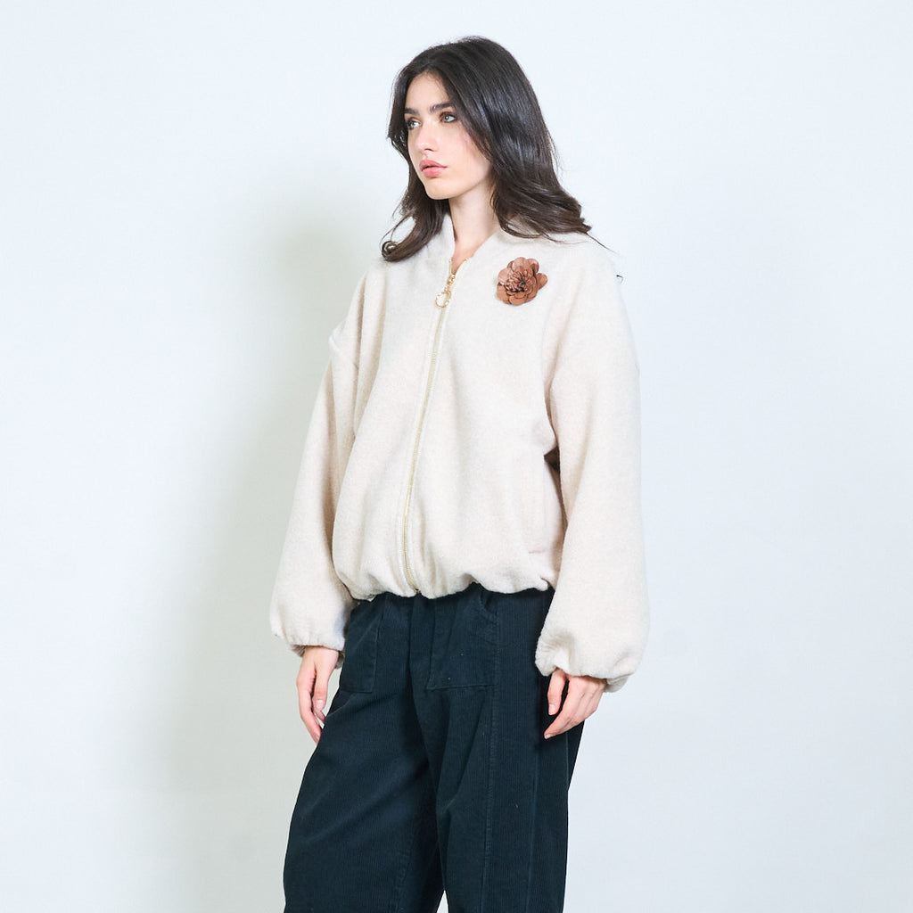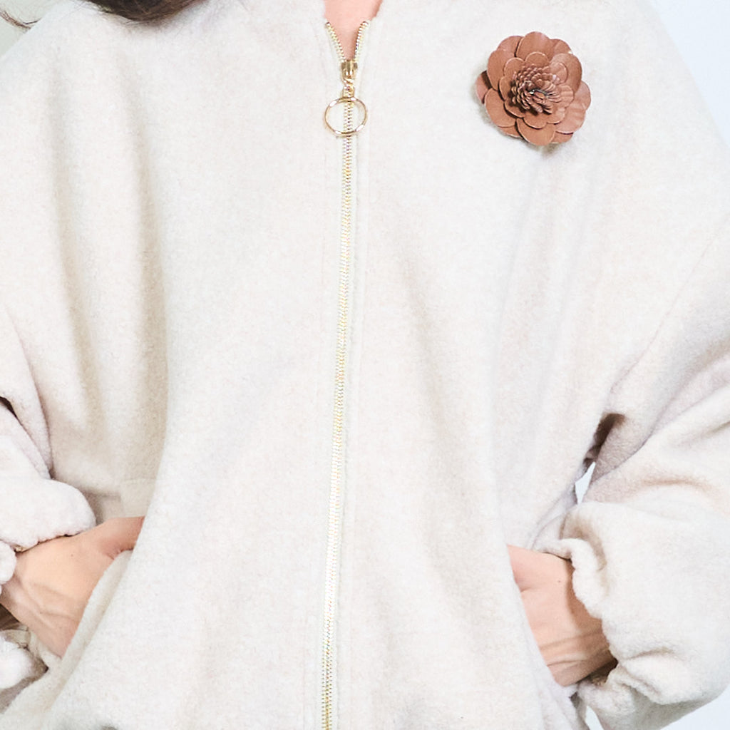 极简主义轰炸机风格的拉链夹克和花胸针细节批发