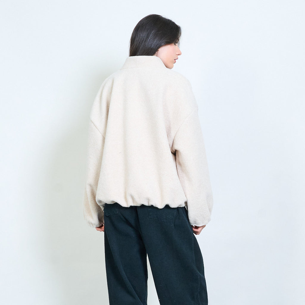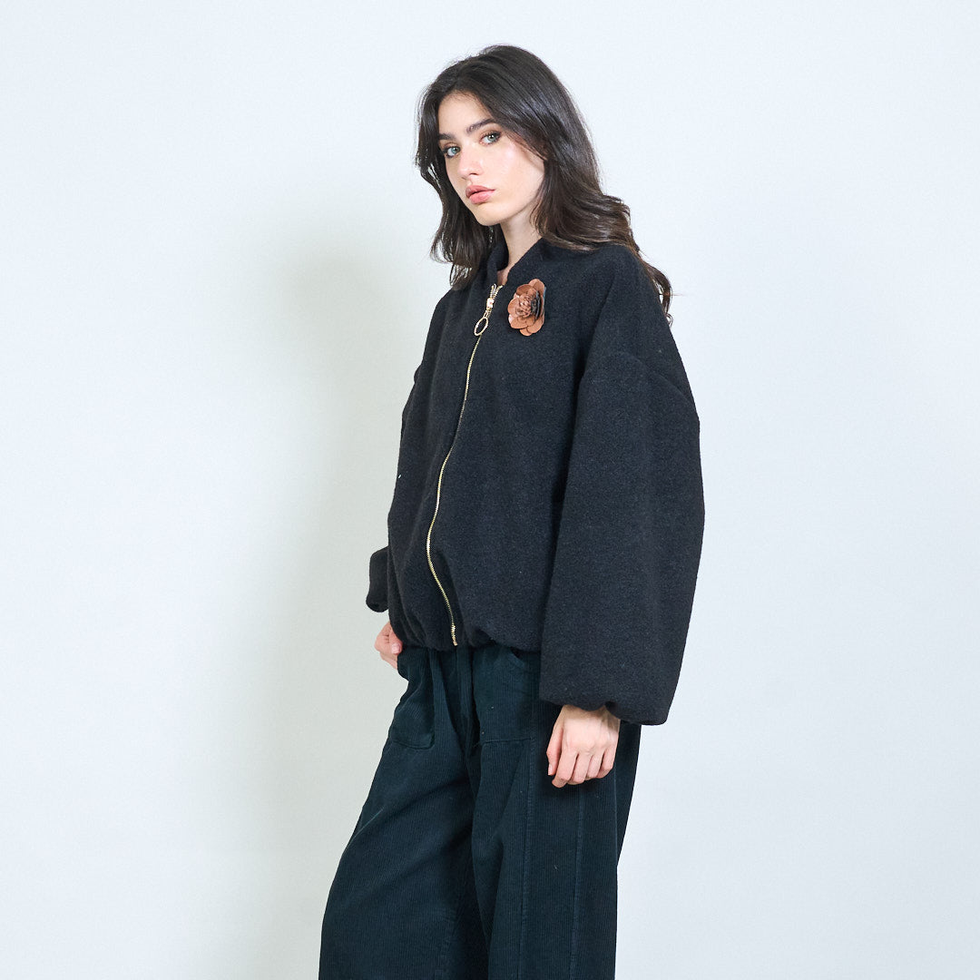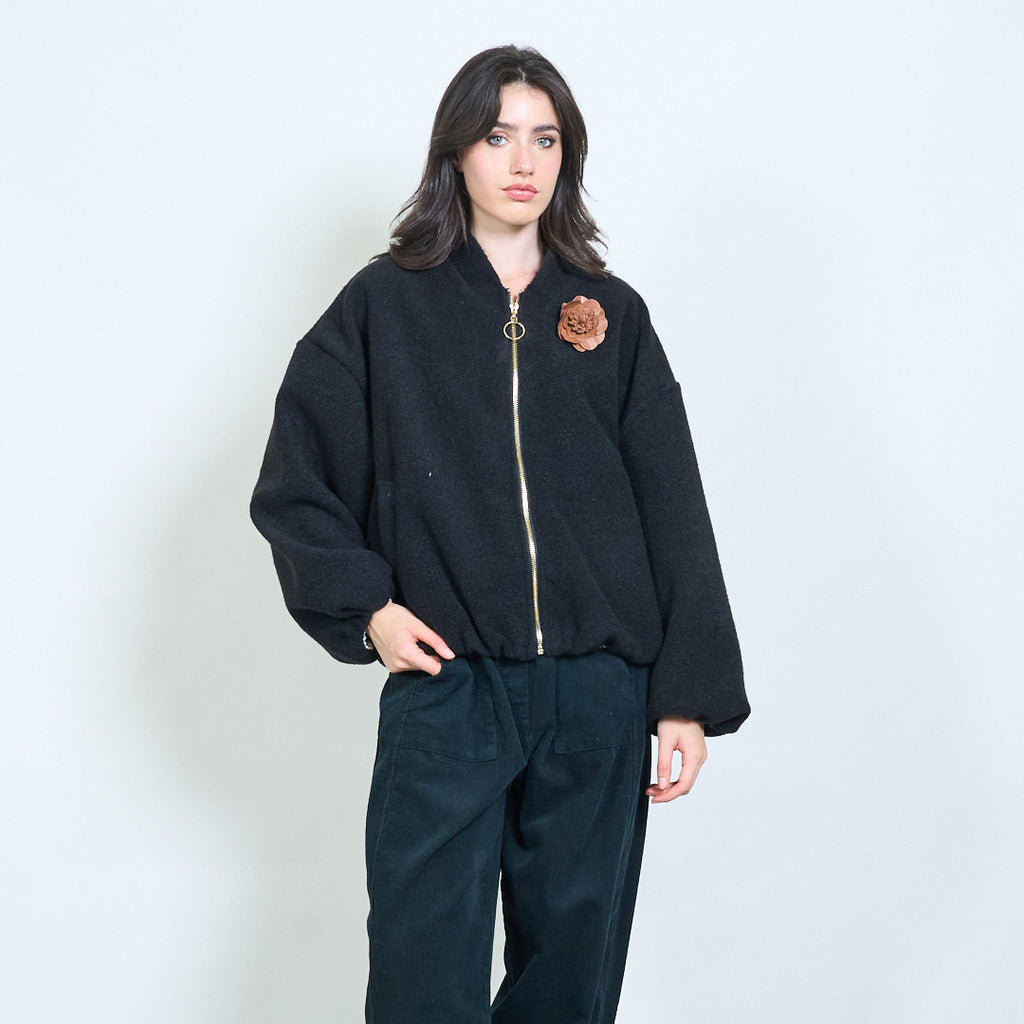 极简主义轰炸机风格的拉链夹克和花胸针细节批发