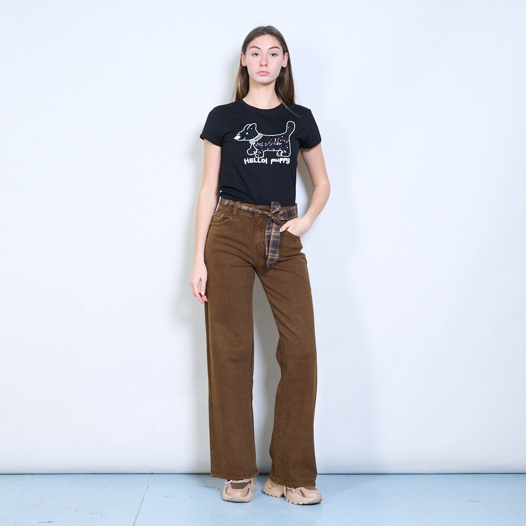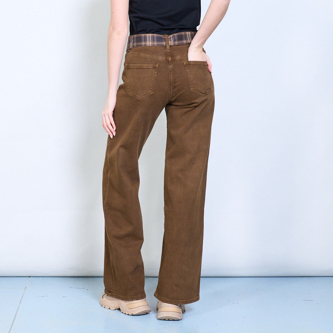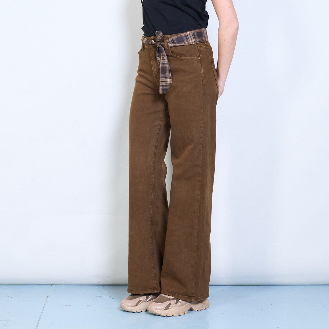 格纹腰系带细节直筒长裤批发