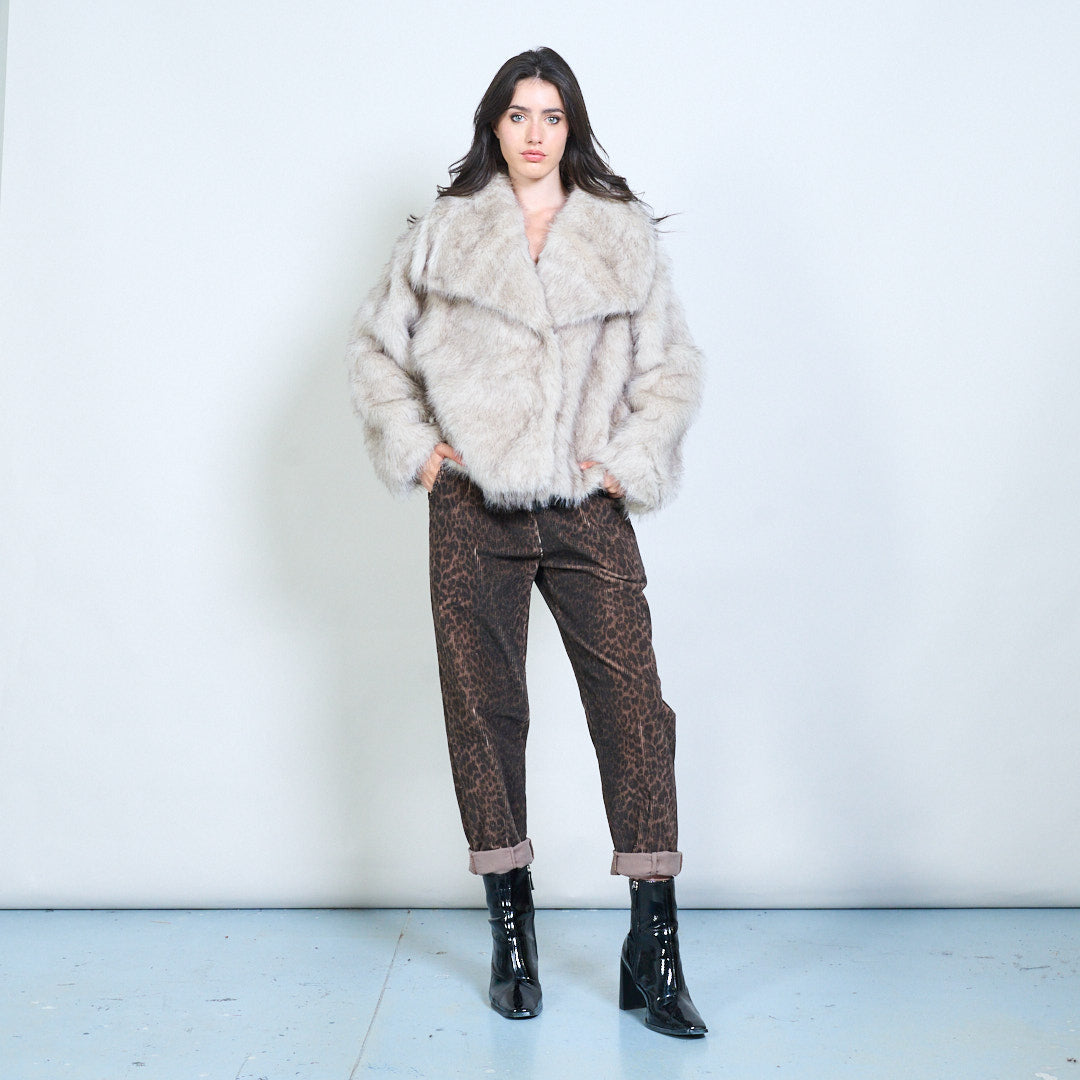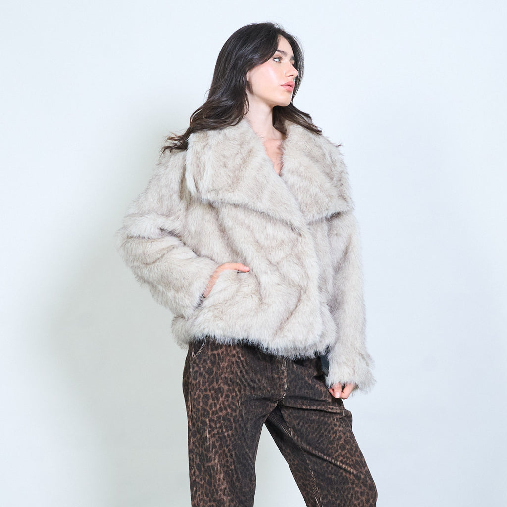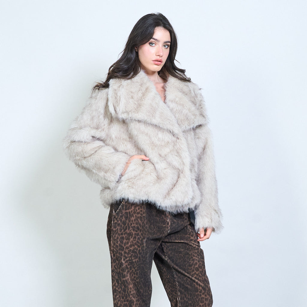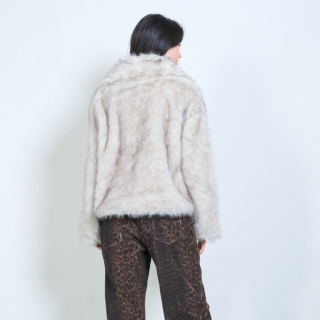 毛绒人造皮草裁剪夹克,超大的翻领批发