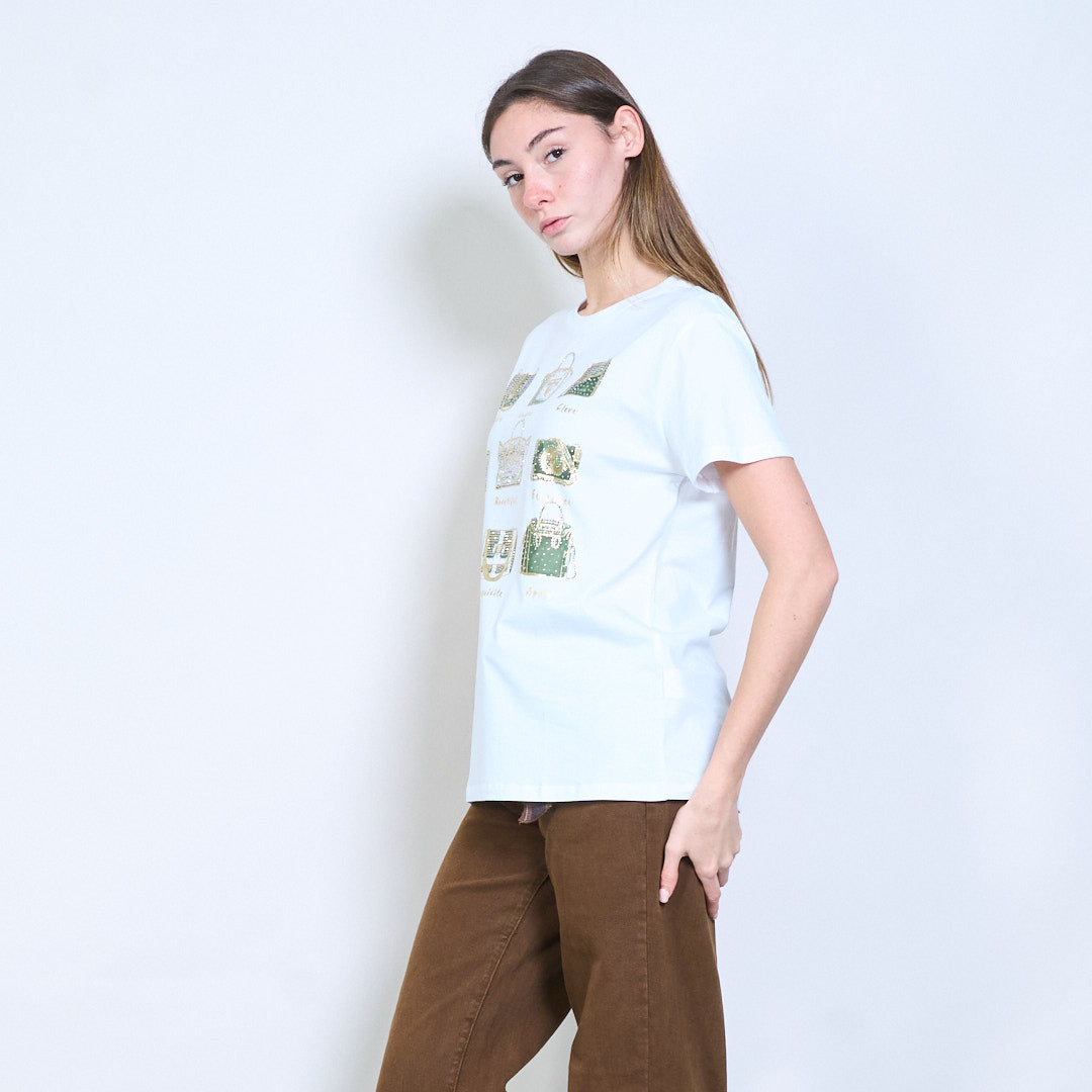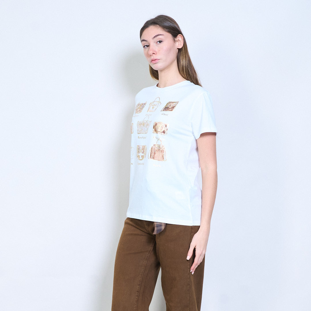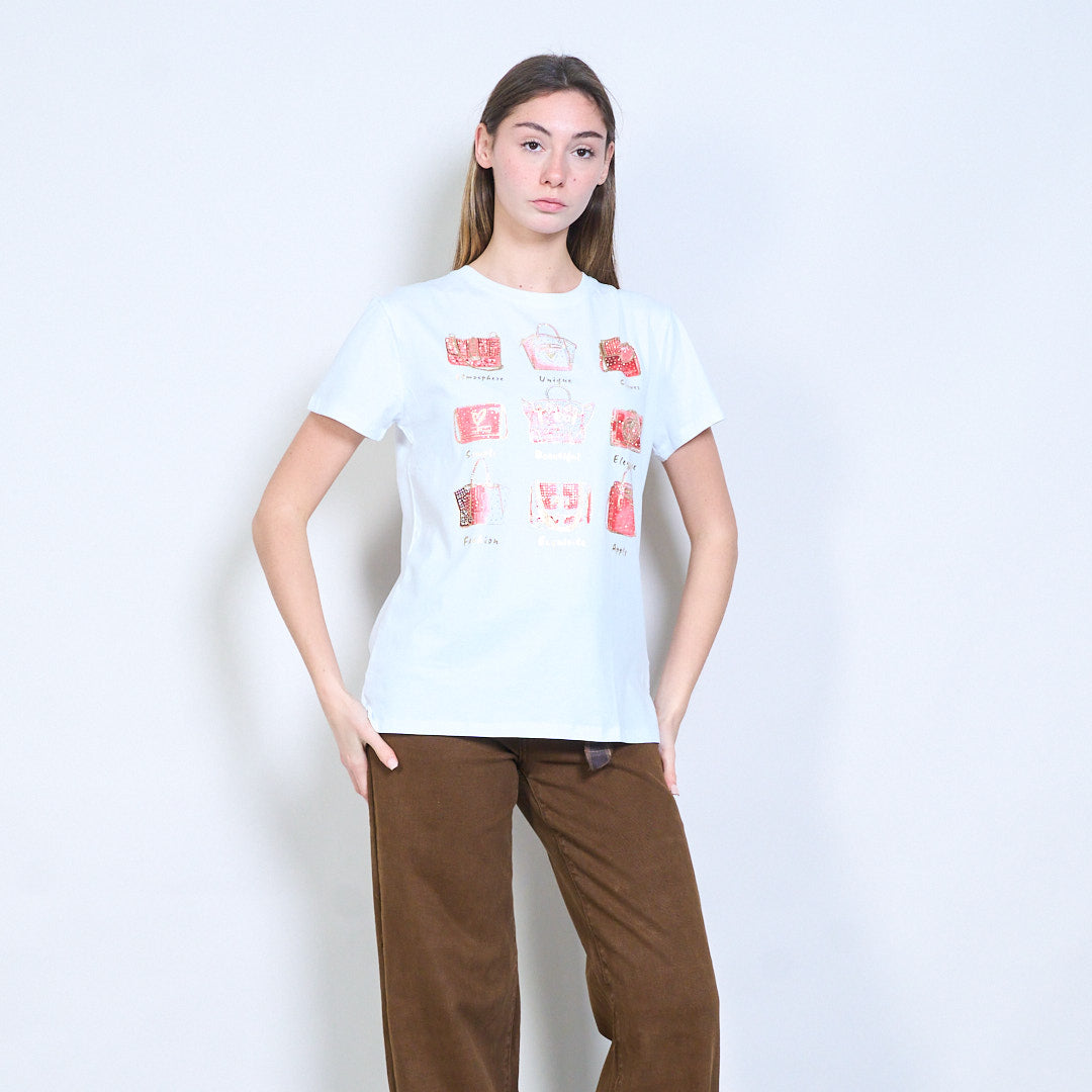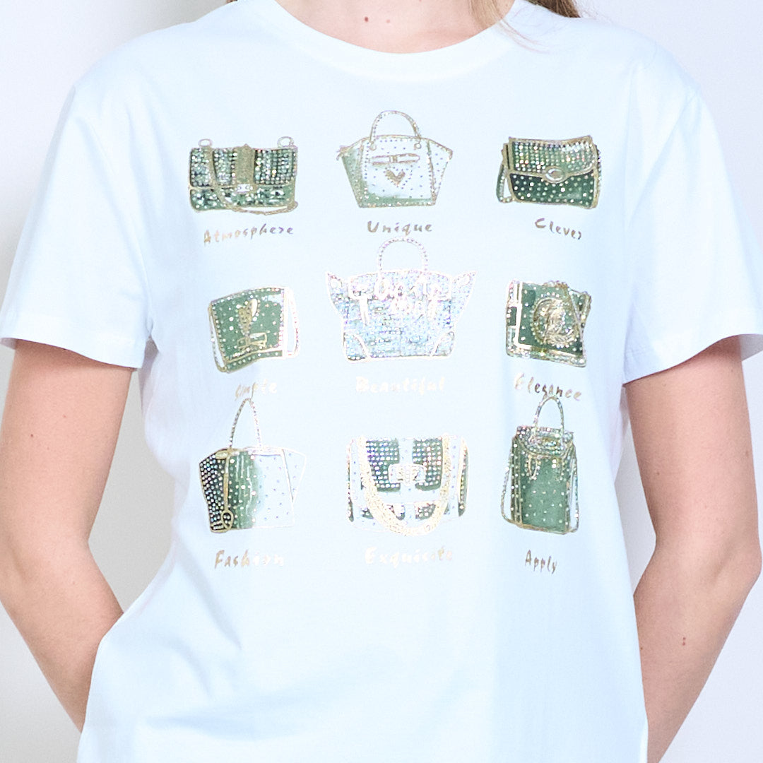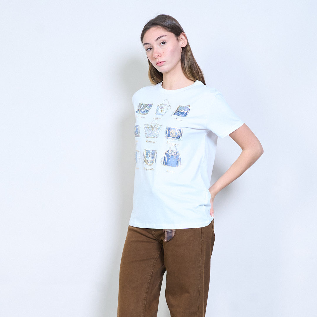 水钻和亮片装饰手提包图案印花短袖T恤批发