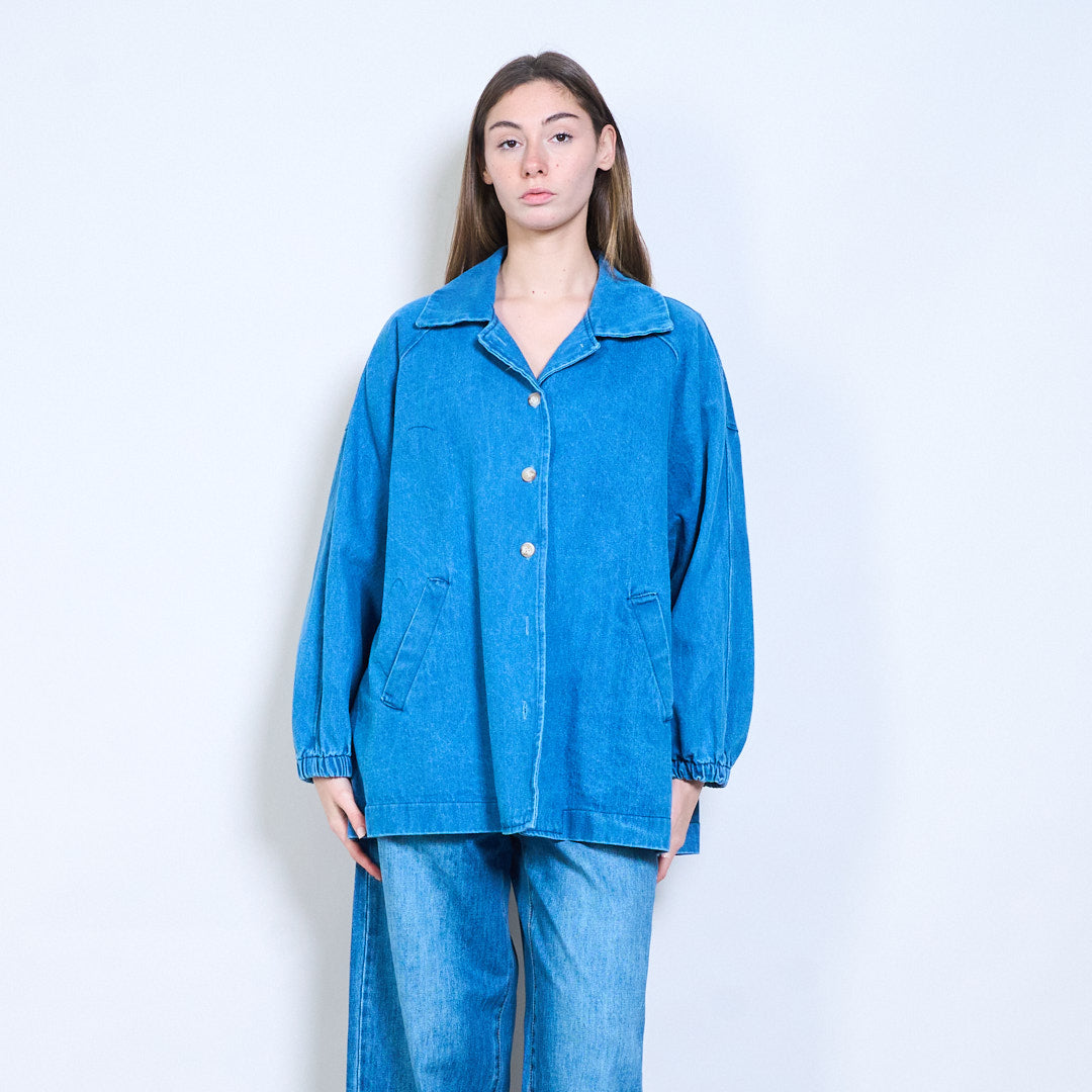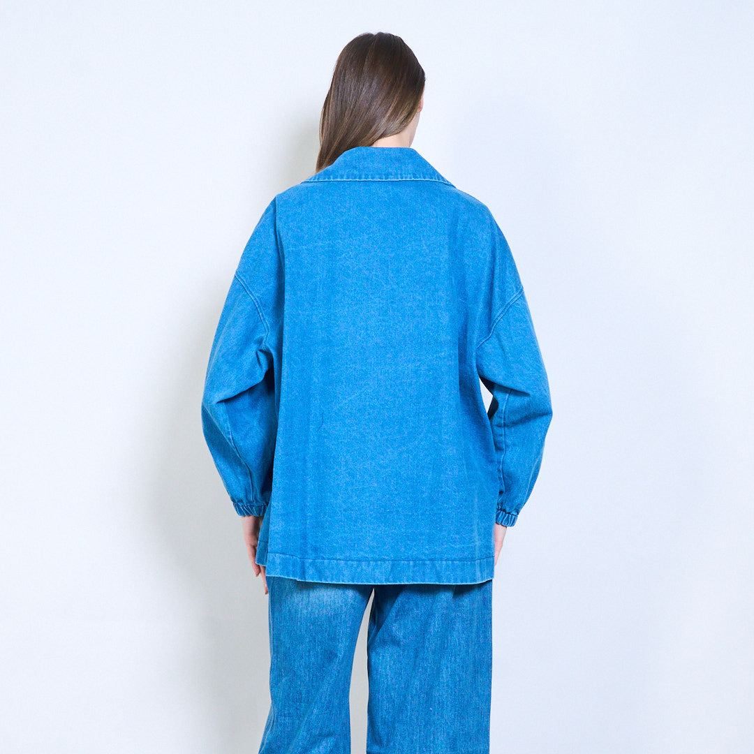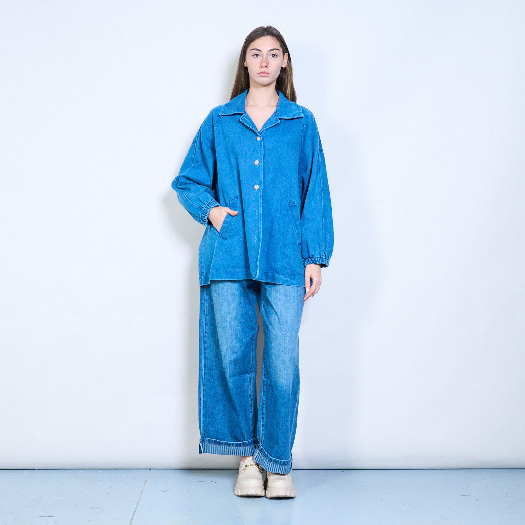 牛仔宽松领口纽扣夹克批发