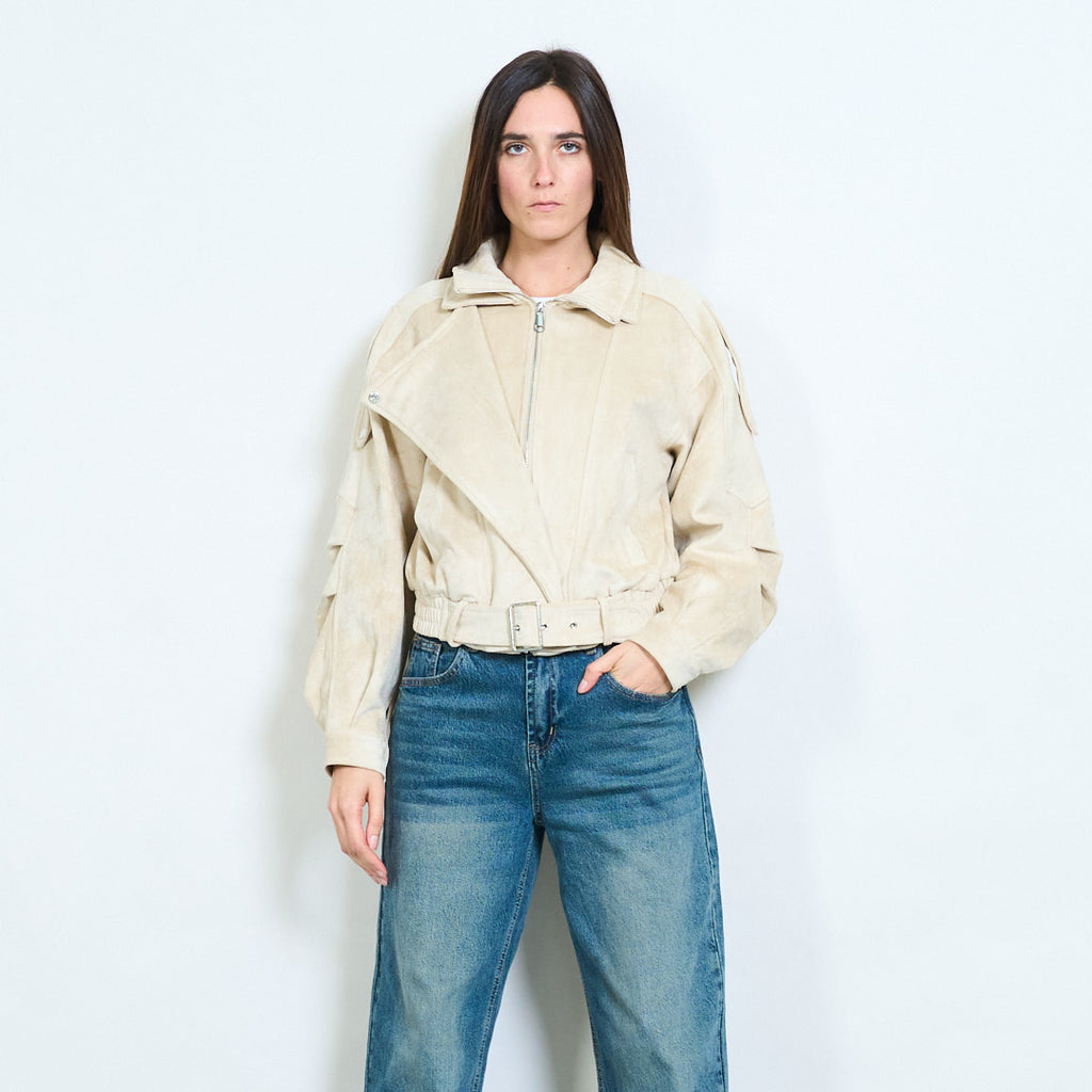 皮带式拉链前绒面革效果骑自行车的夹克批发