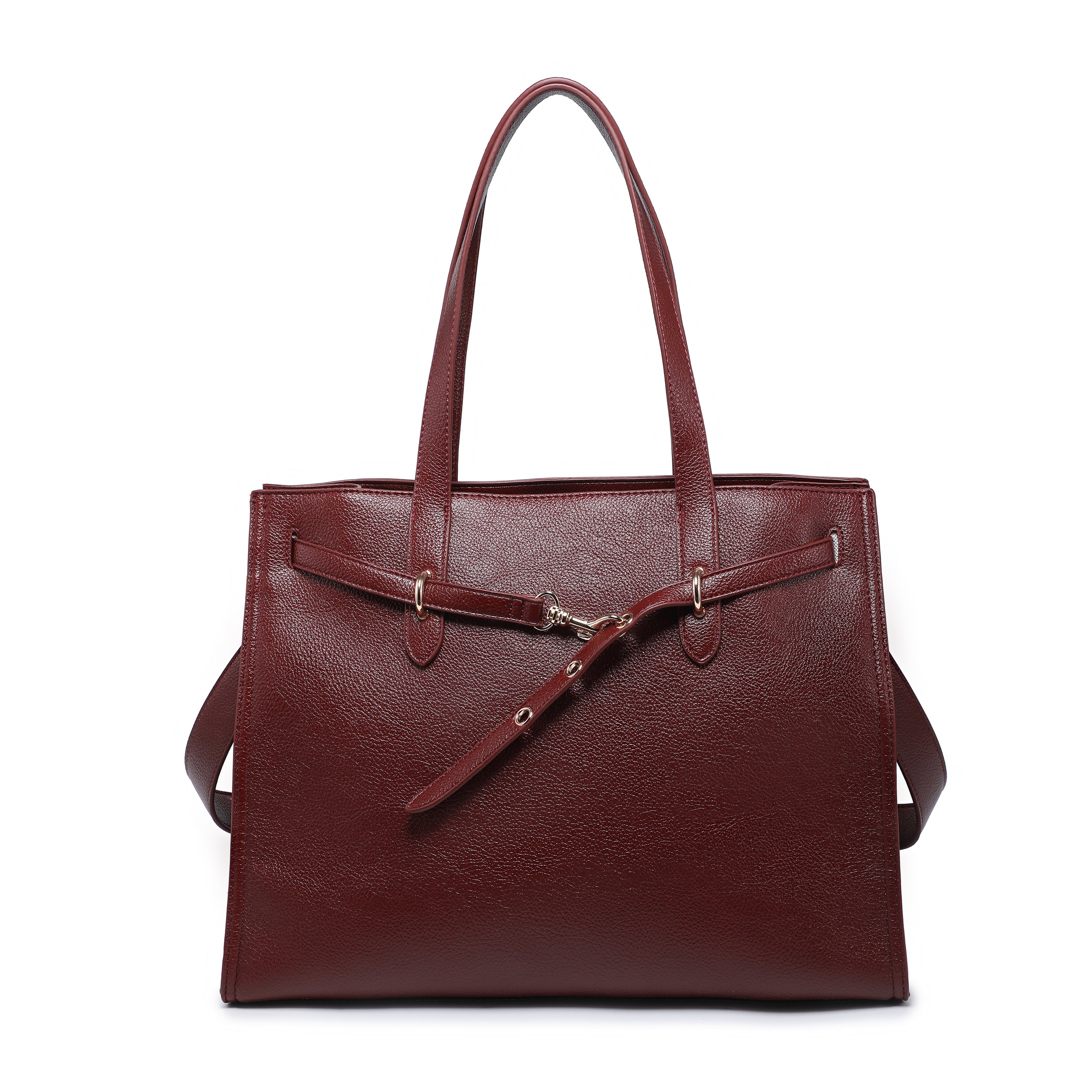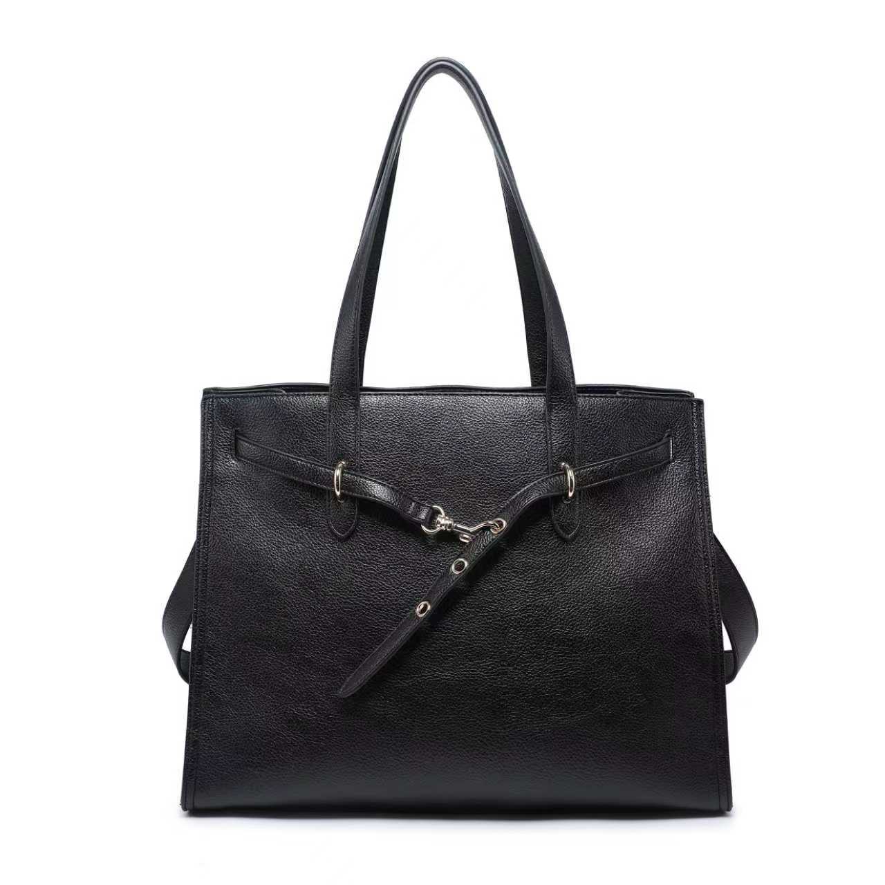 结构化带扣细节皮革手提包批发