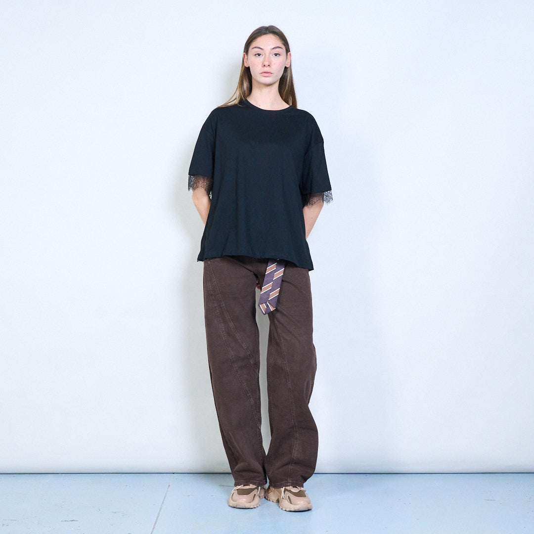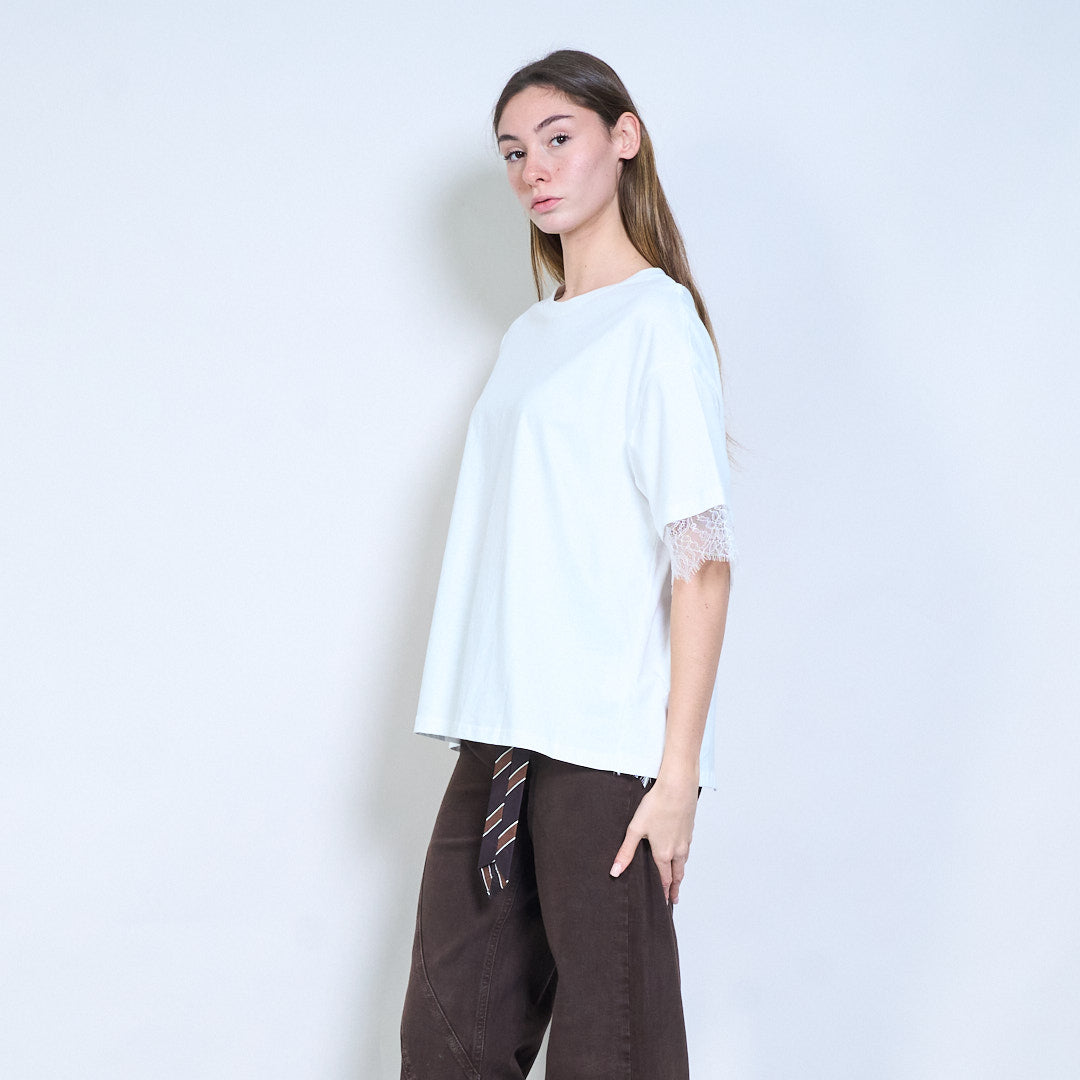 - 蕾丝下摆饰面营造出柔和的层次感和微妙的纹理