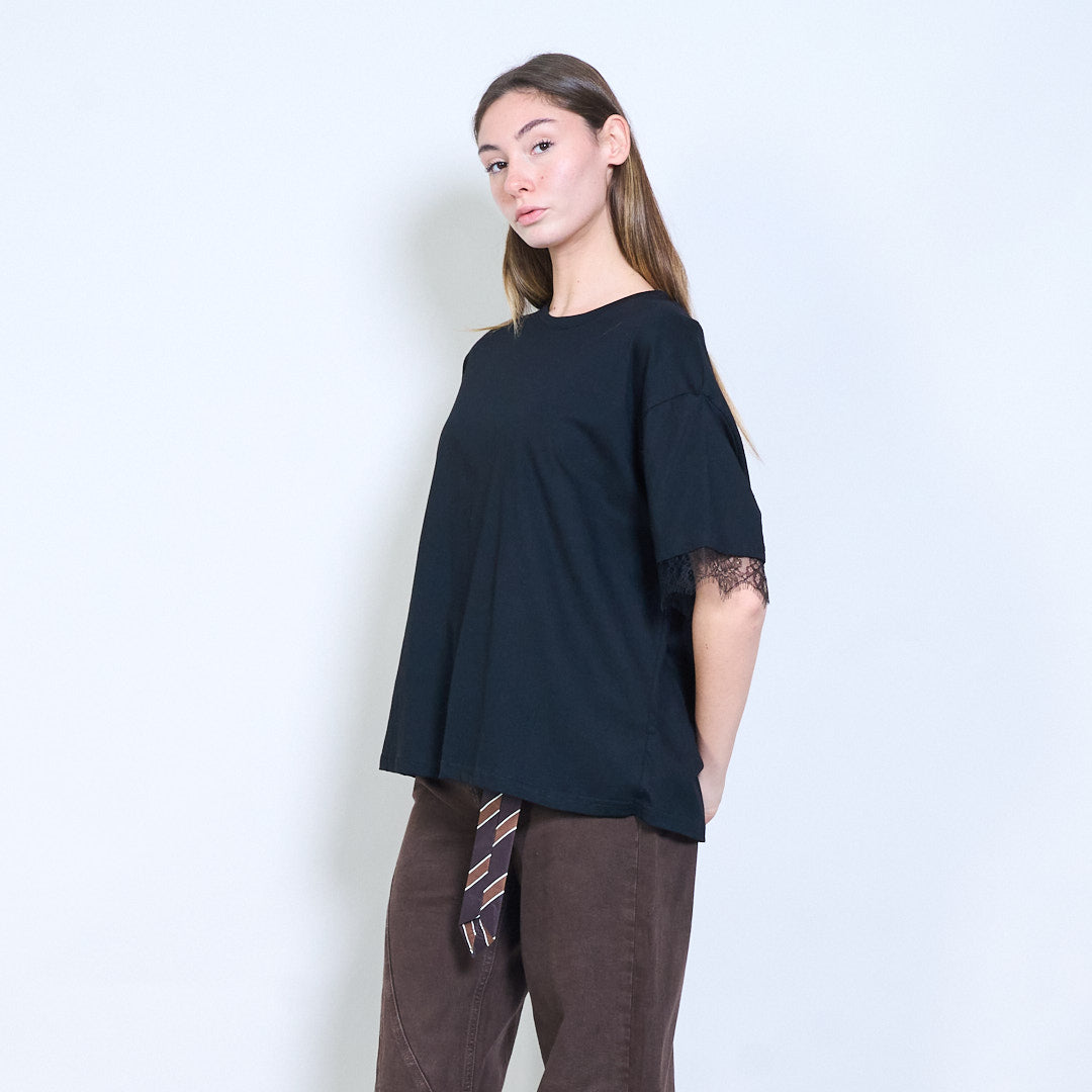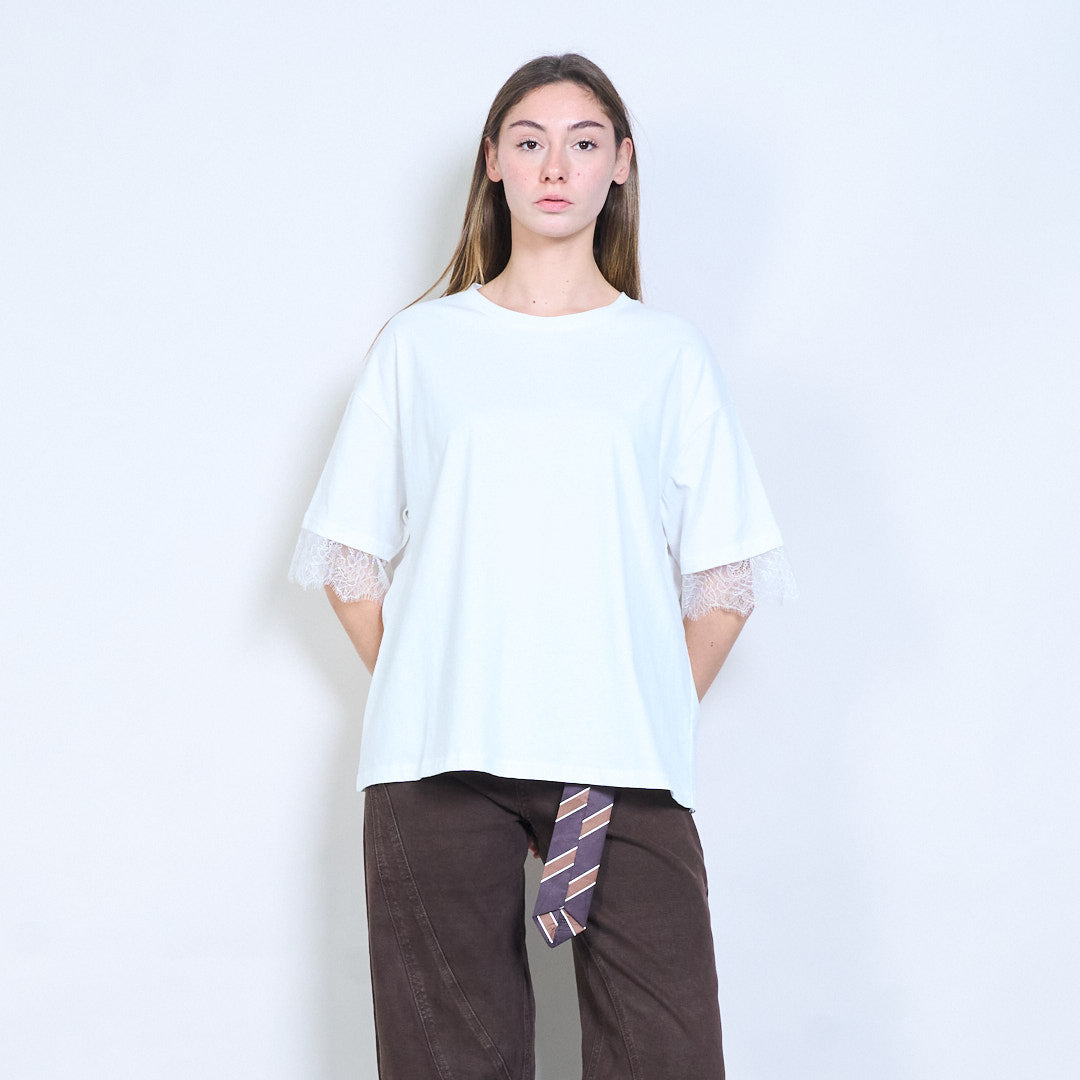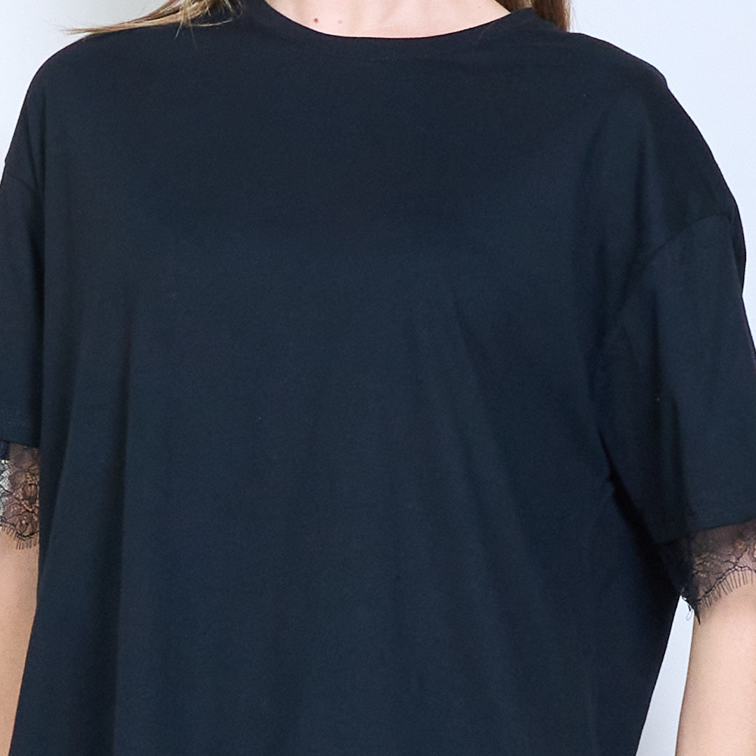 蕾丝边圆领短袖休闲衬衫T恤批发