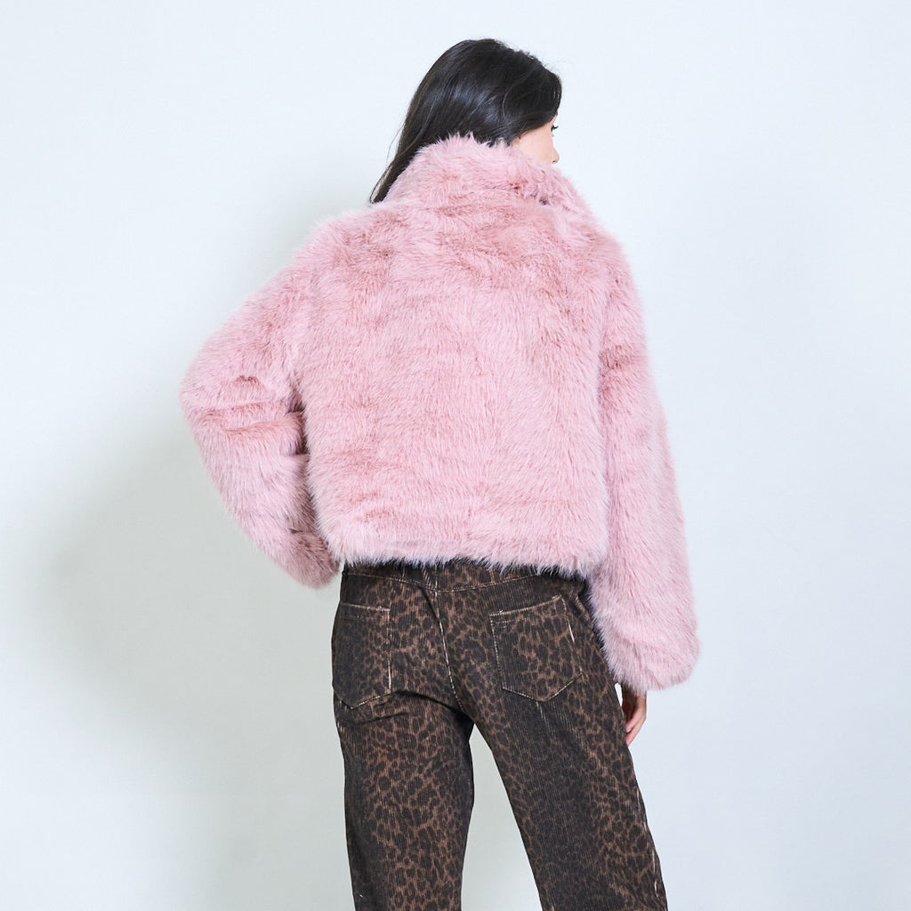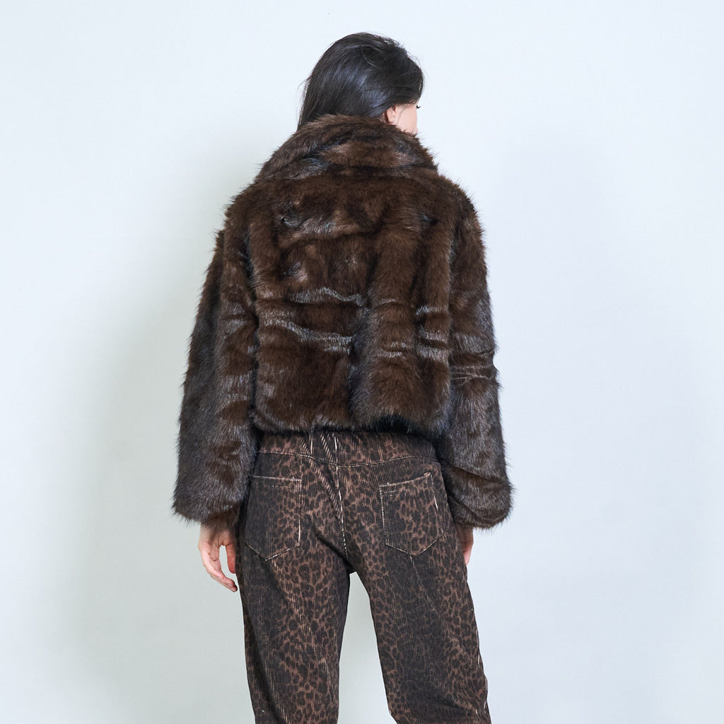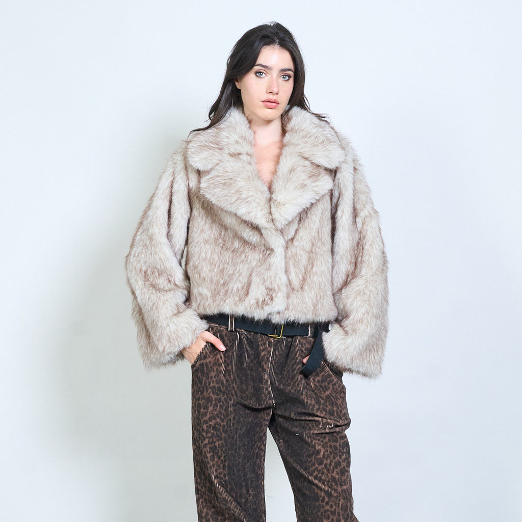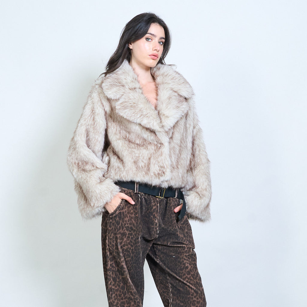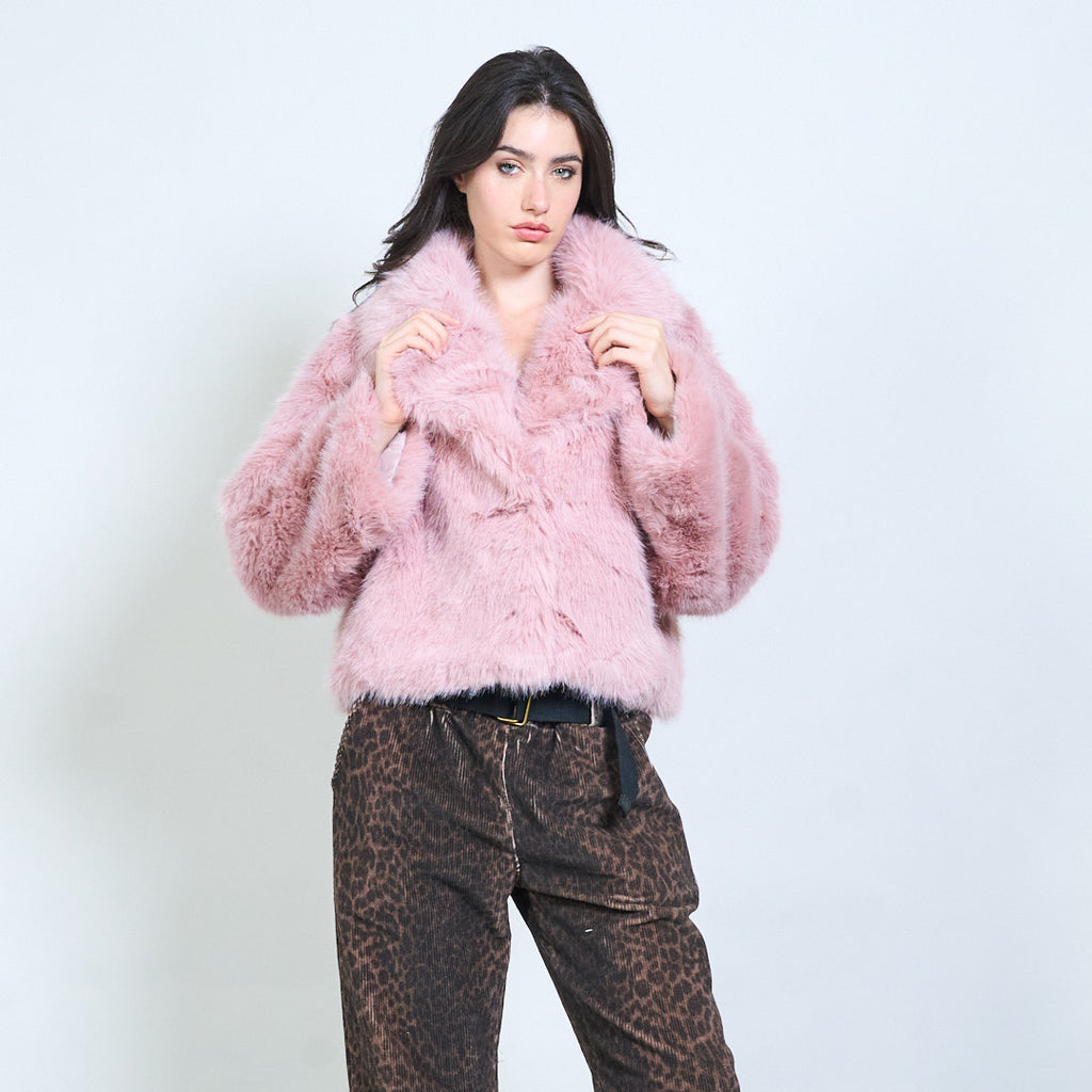 豪华人造皮草裁剪夹克,宽阔的翻领批发