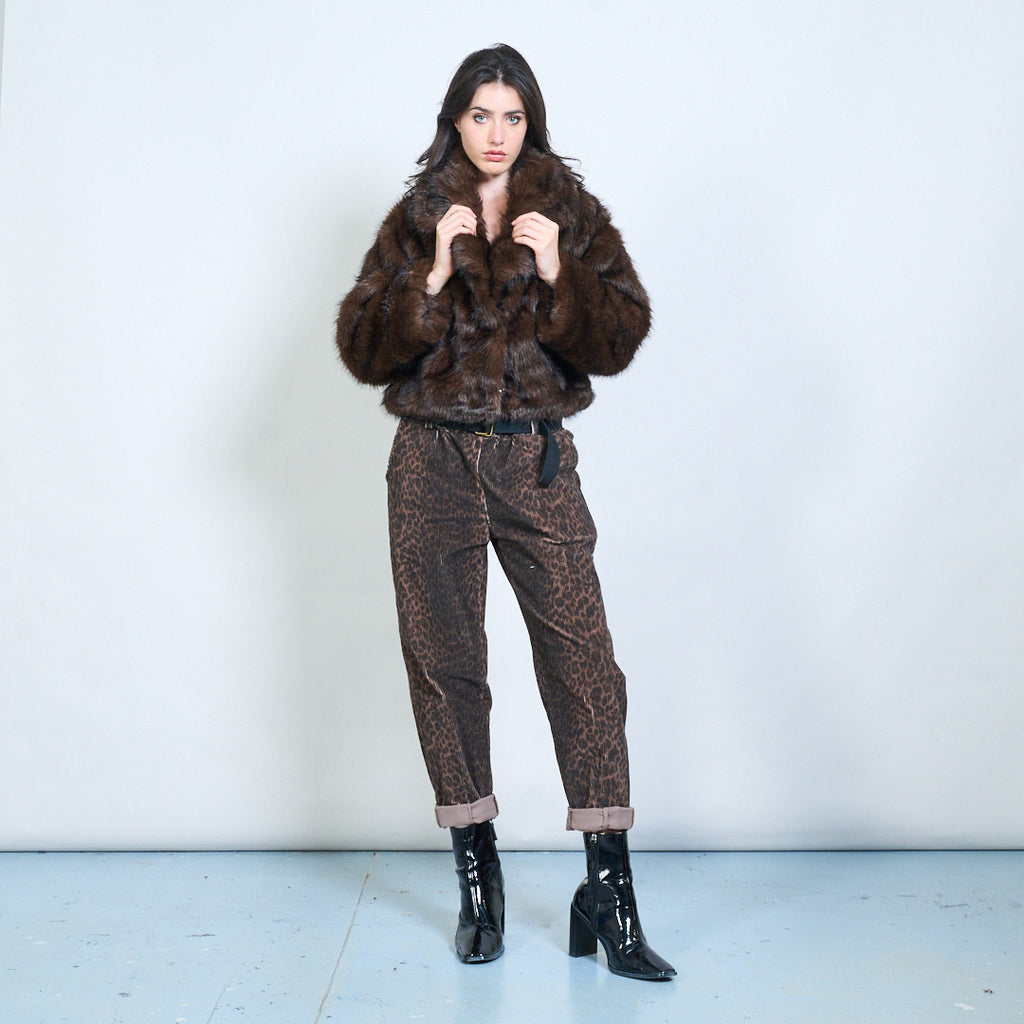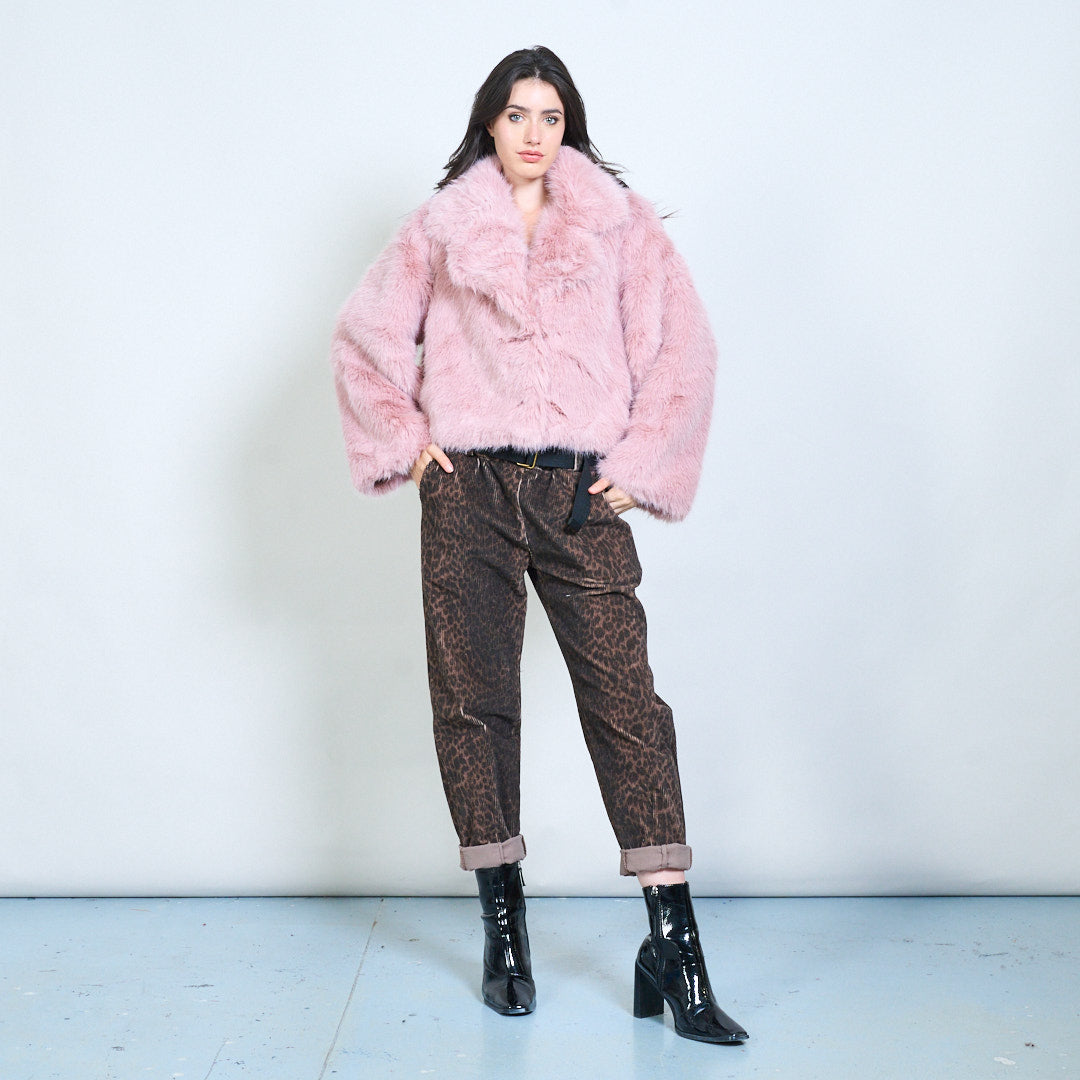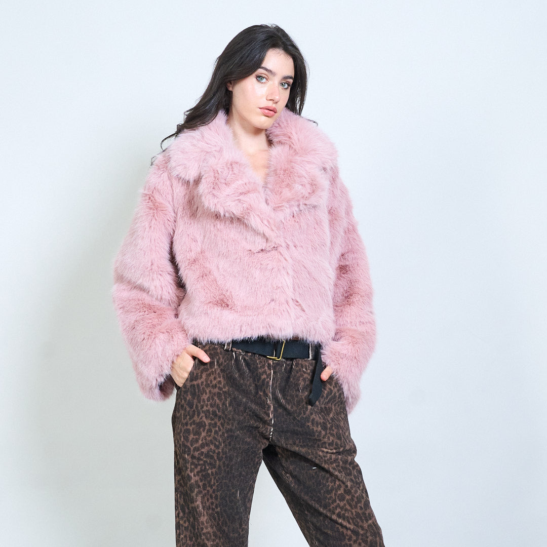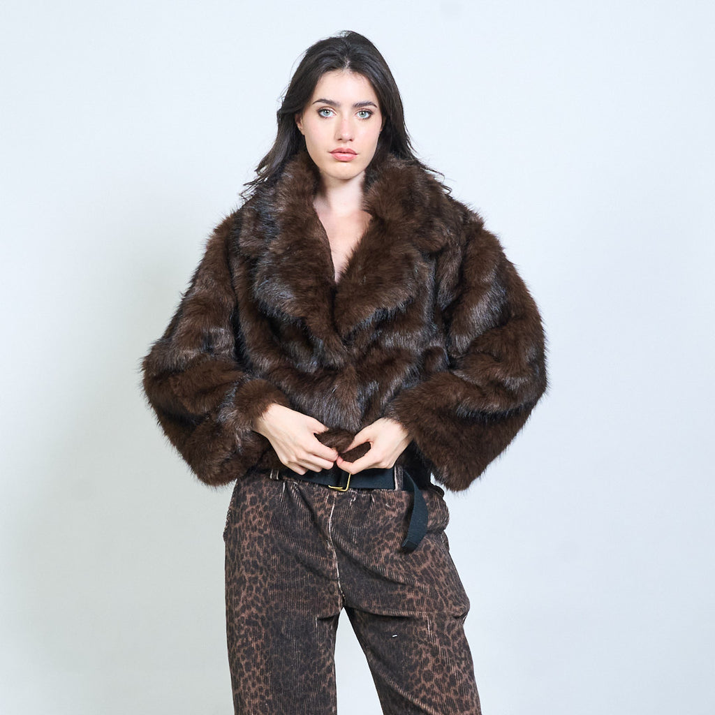 豪华人造皮草裁剪夹克,宽阔的翻领批发
