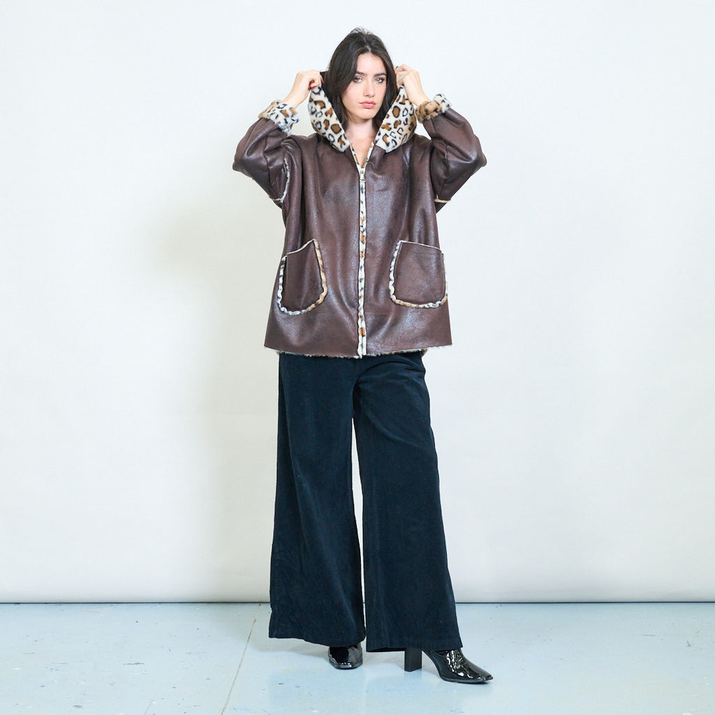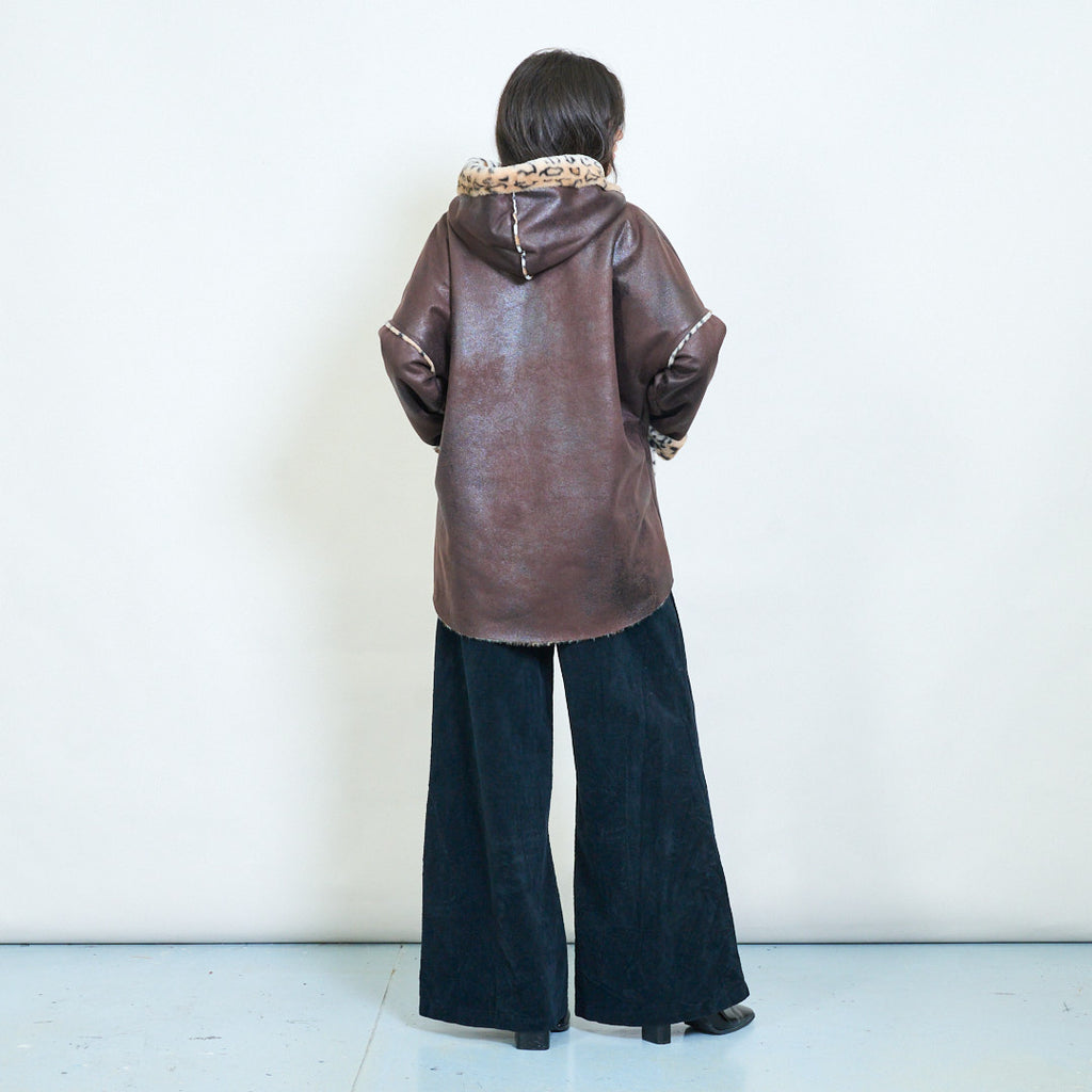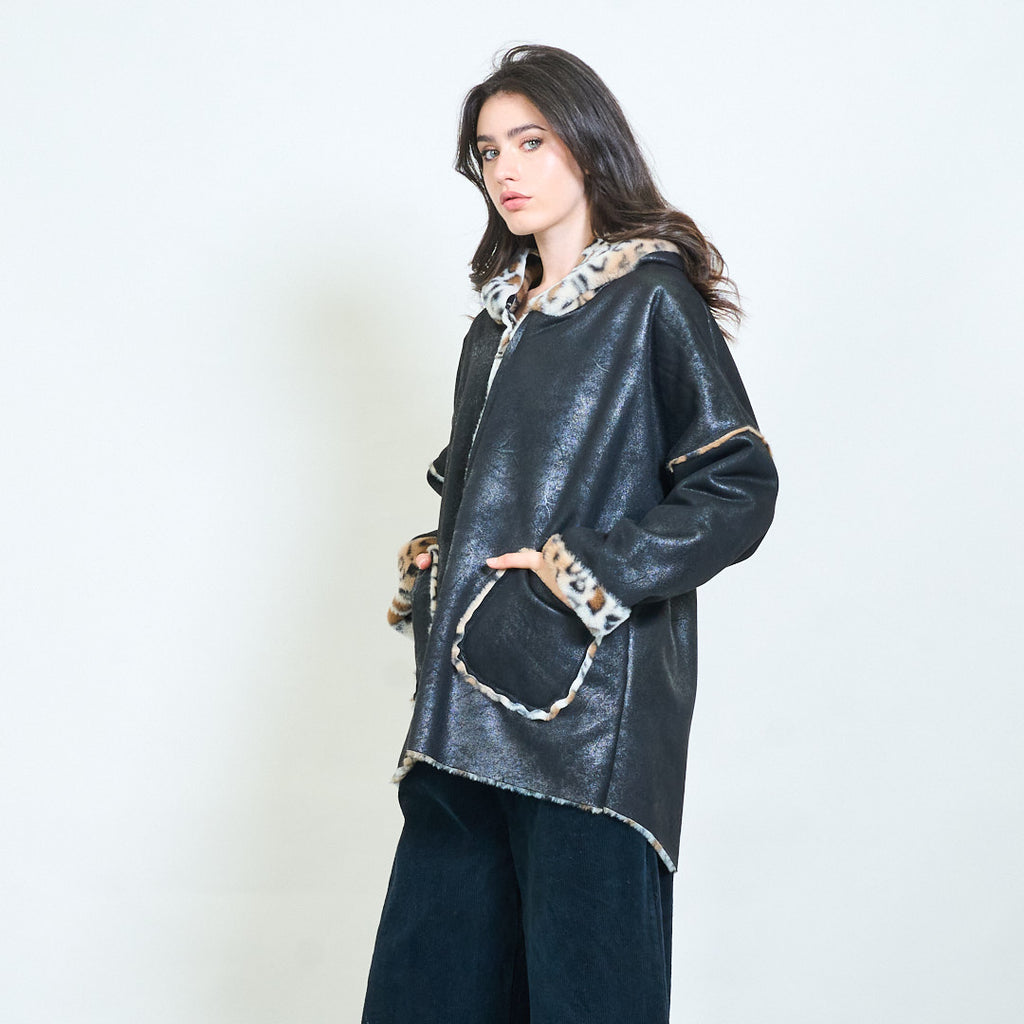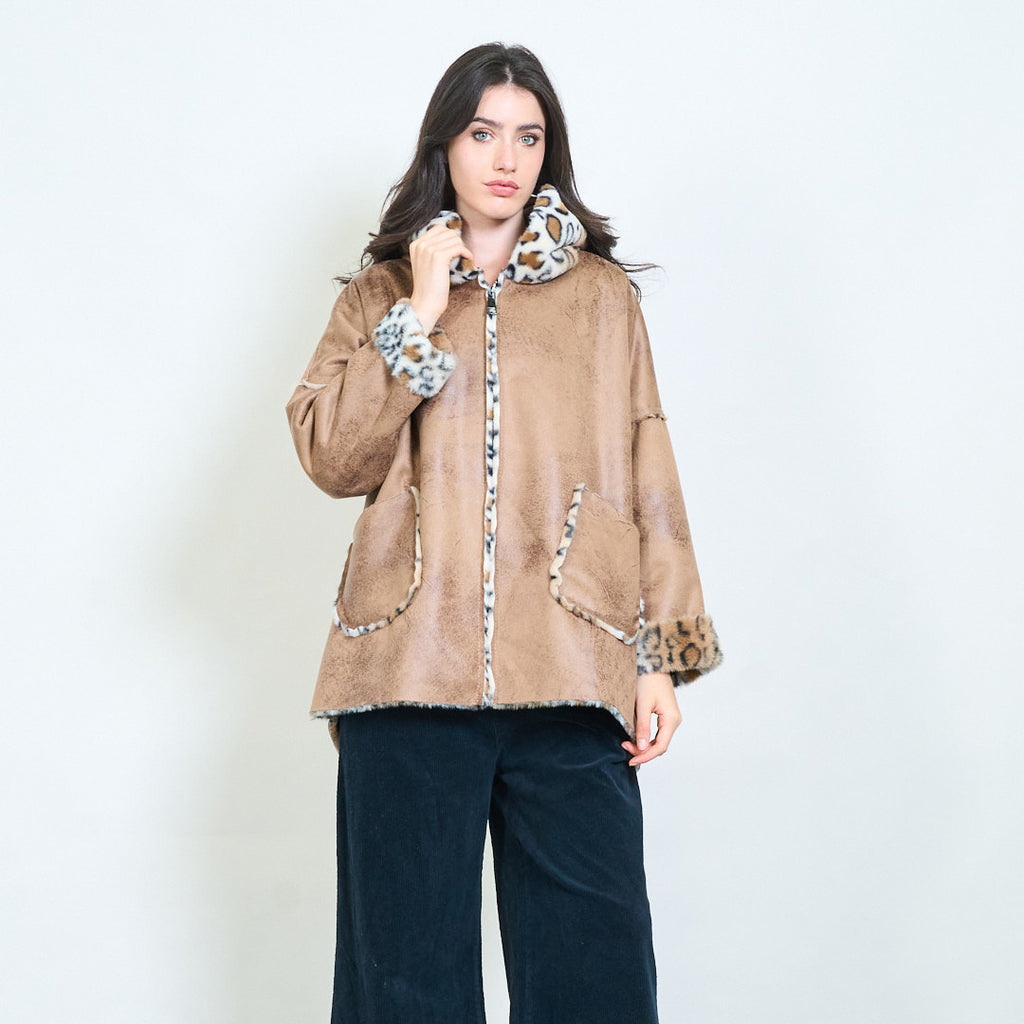 • 舒适的连帽设计,大胆的豹纹衬里和装饰