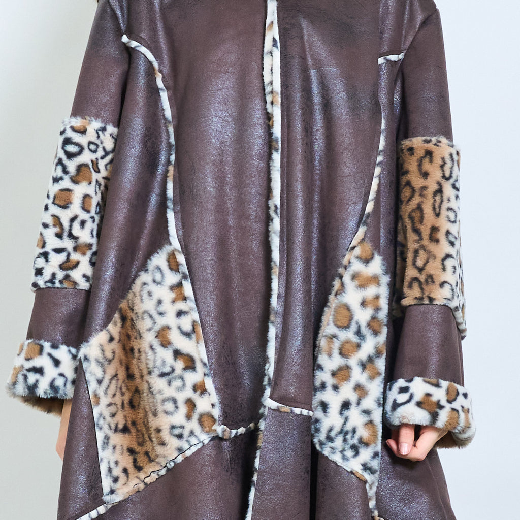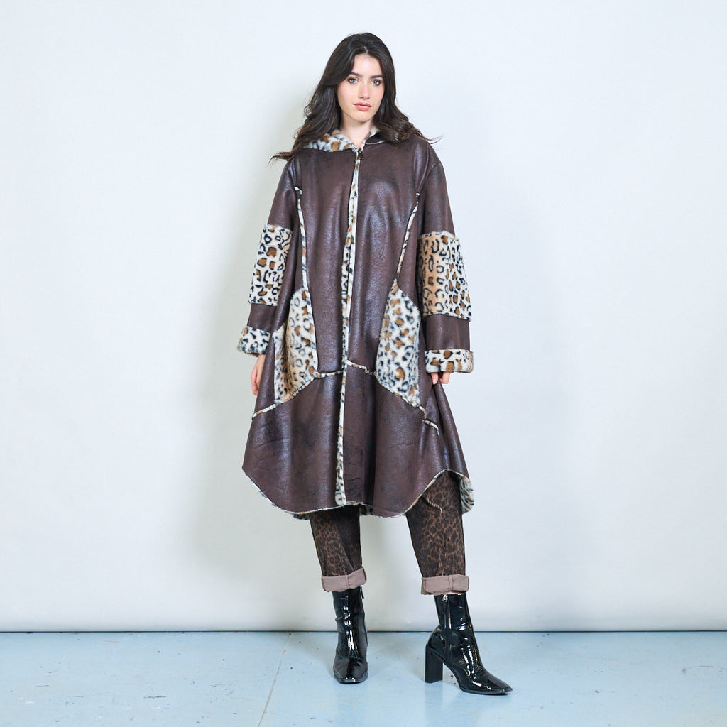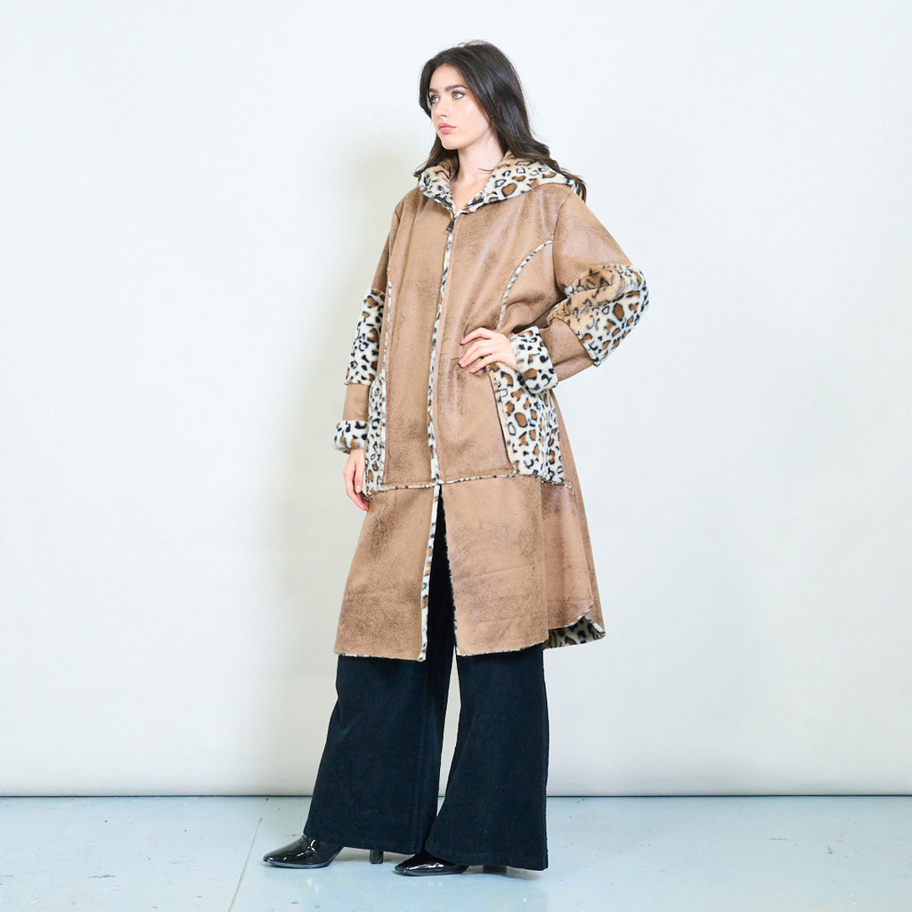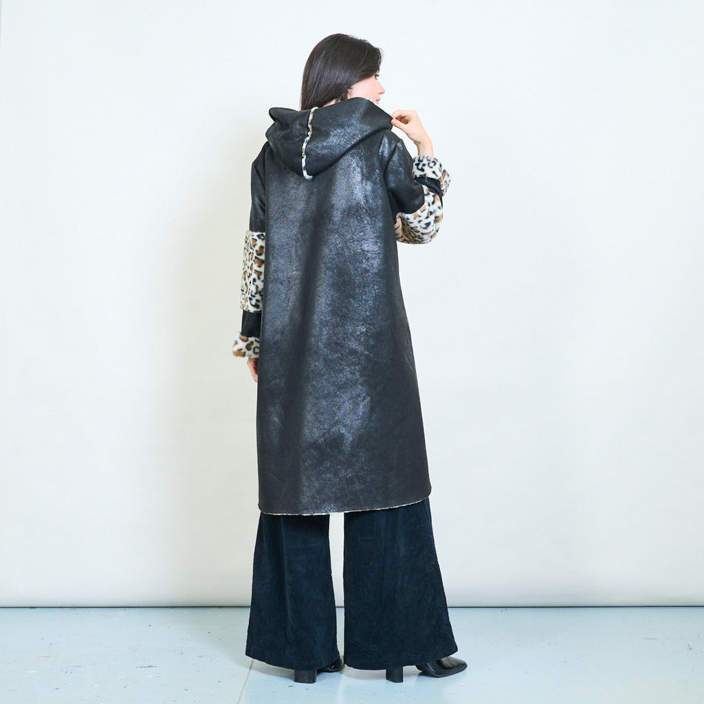 - 舒适的连帽设计,大胆的豹纹衬里和装饰