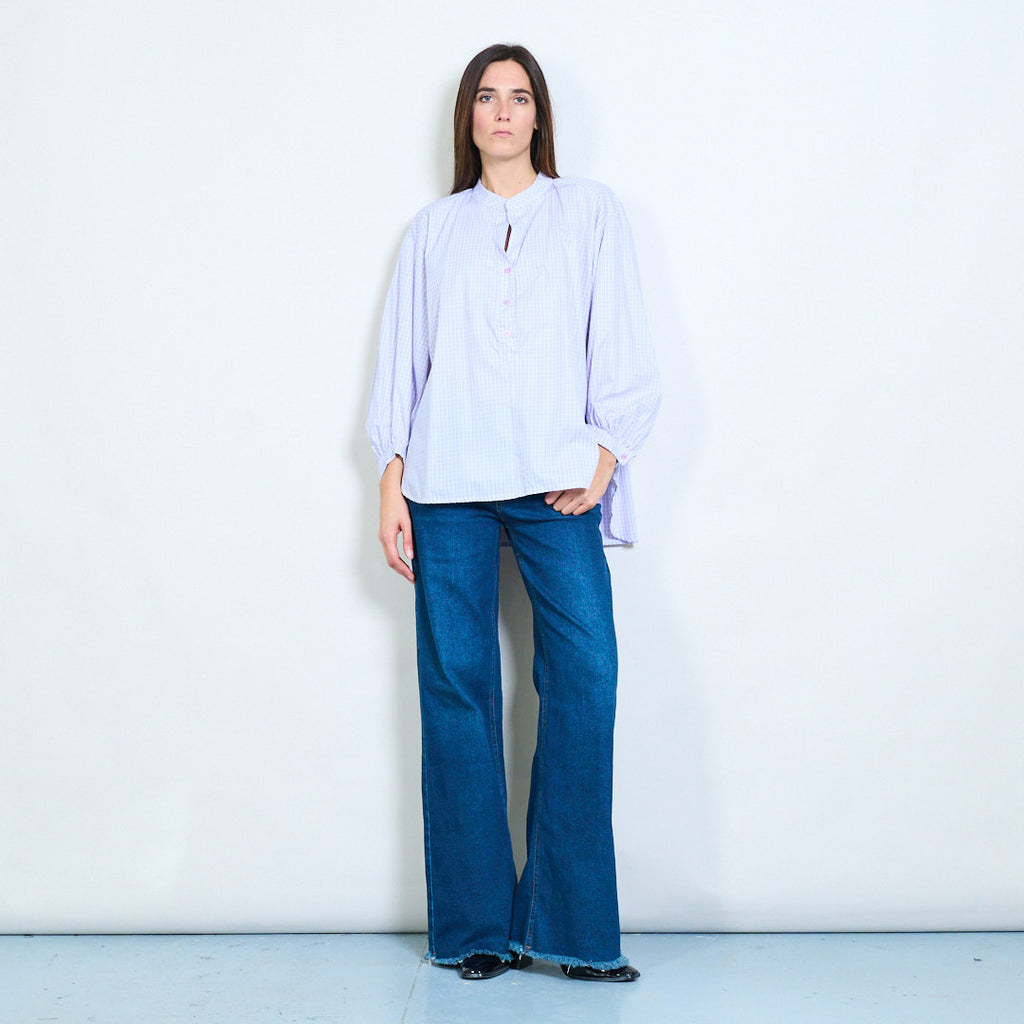轻松的合身衬衫,带V型式领口和方格图案批发
