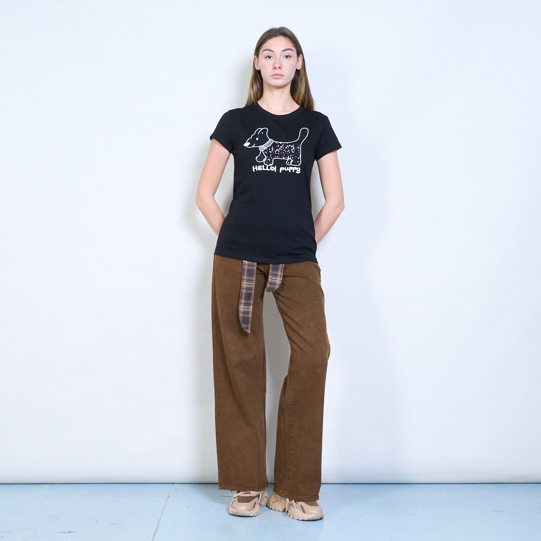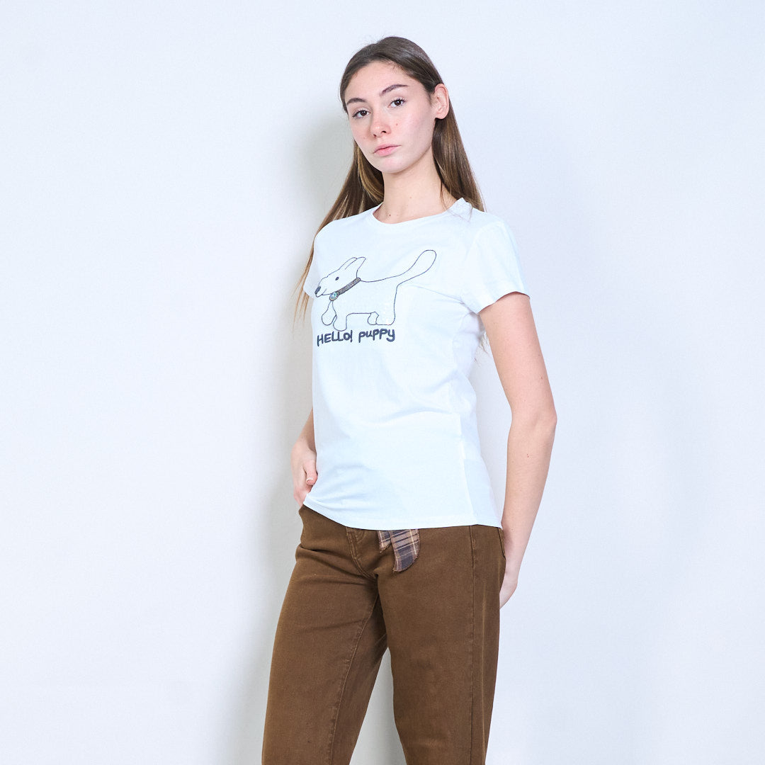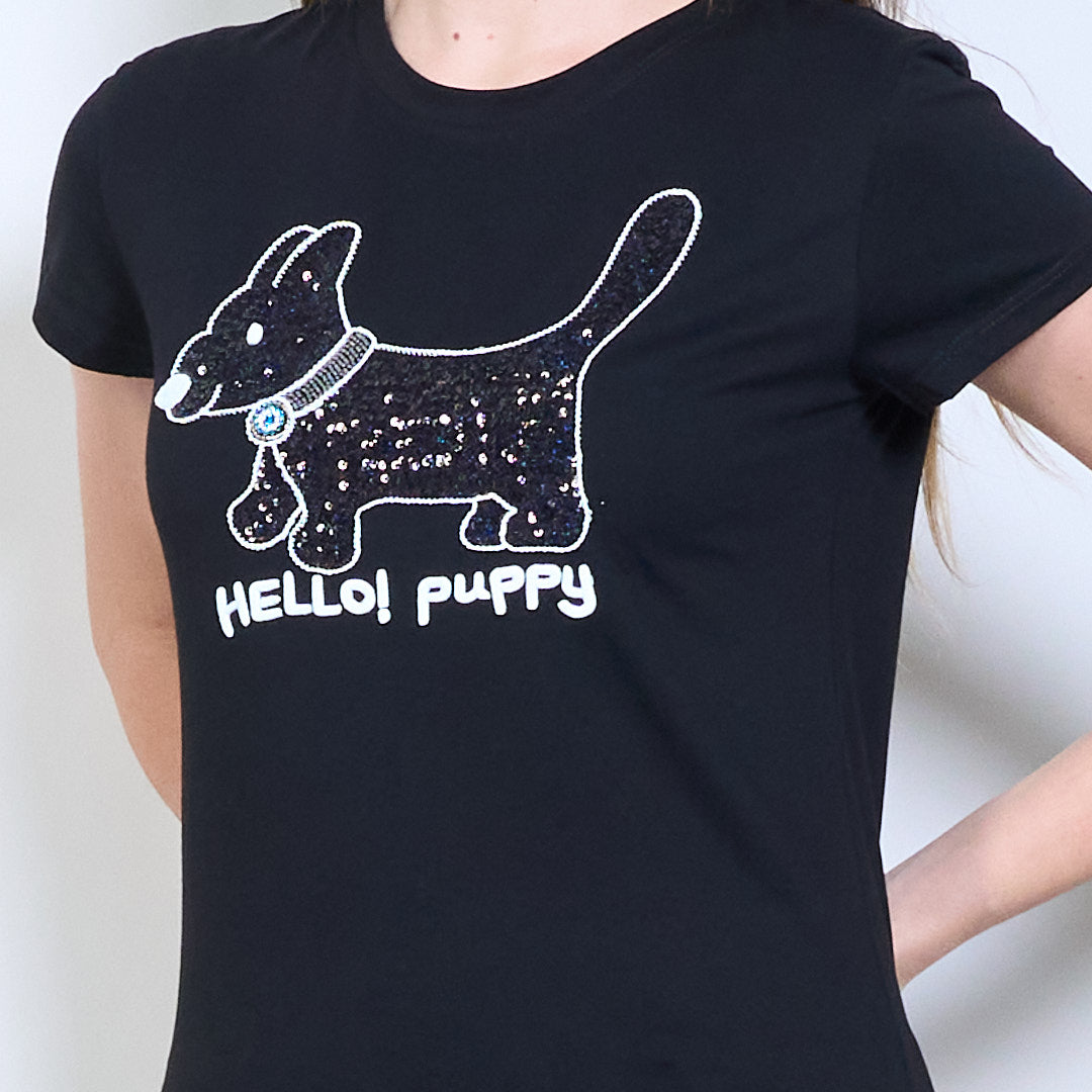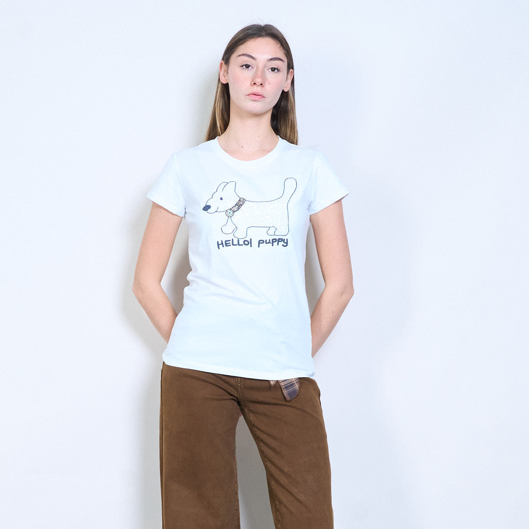 - 带有狗图案印花和标语文字“Hello! Puppy”