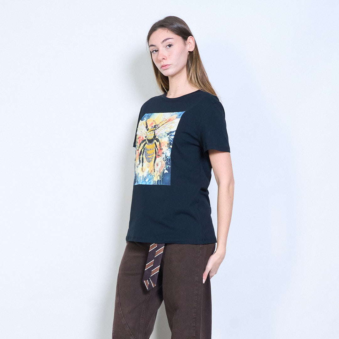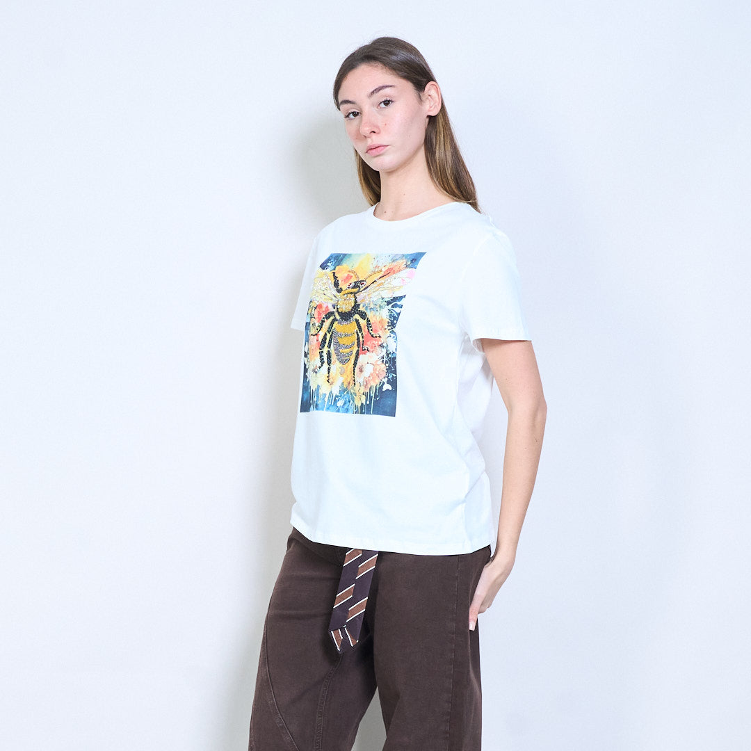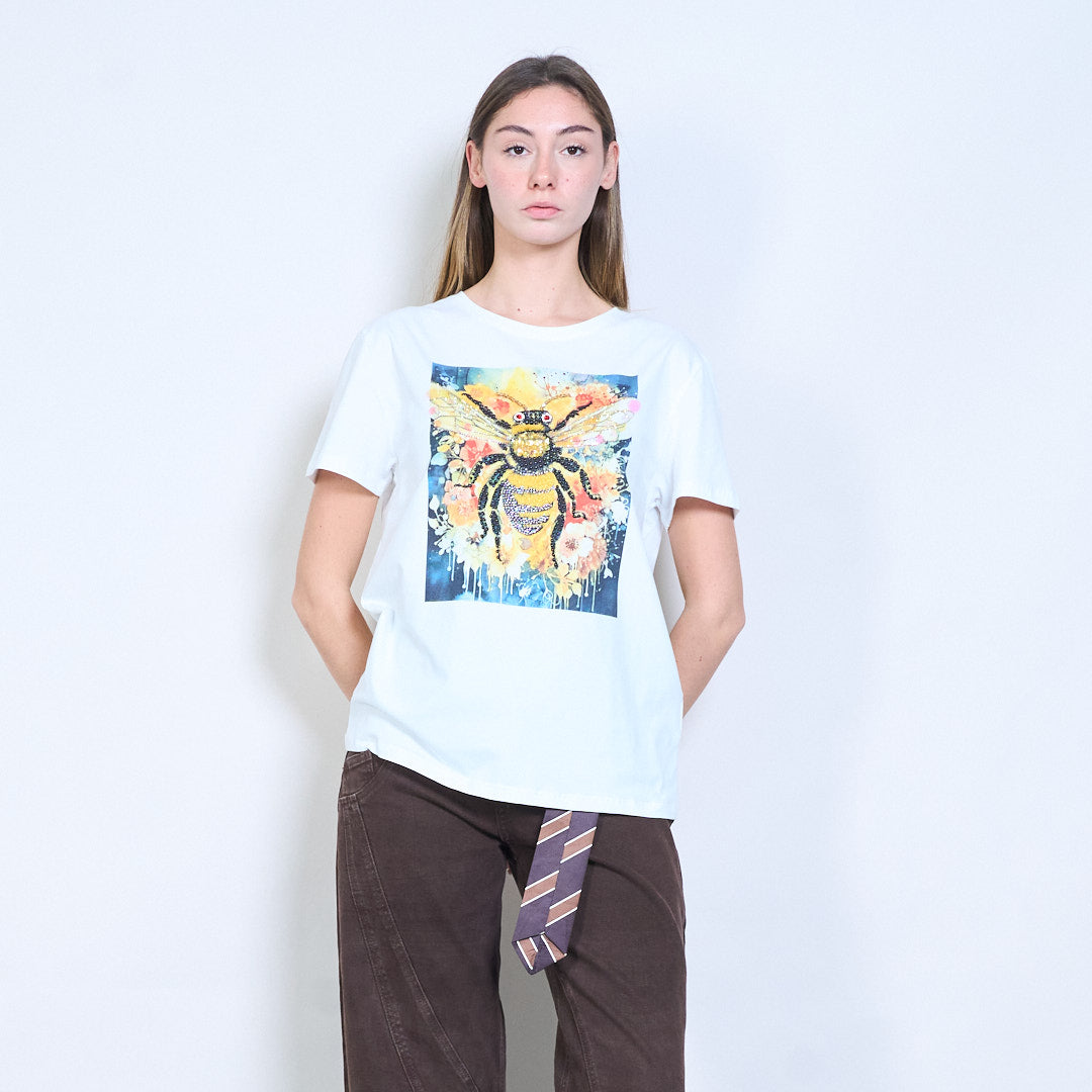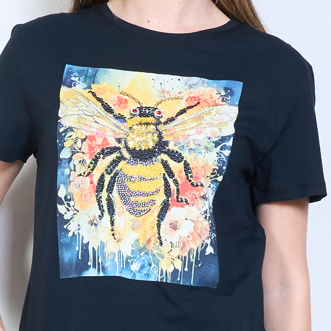 Animalia 编辑水钻装饰蜜蜂花卉艺术图案印花 T 恤批发