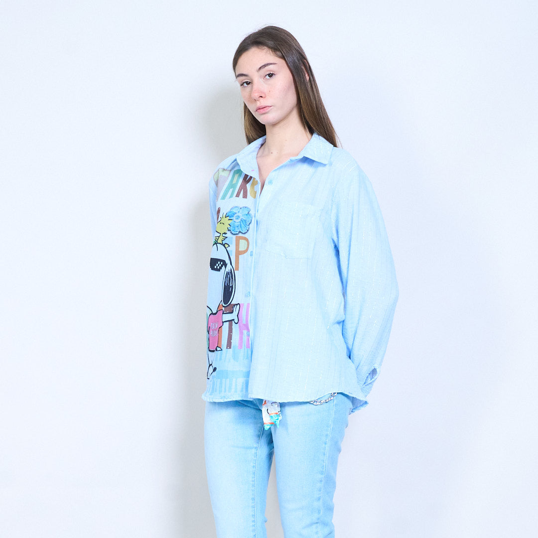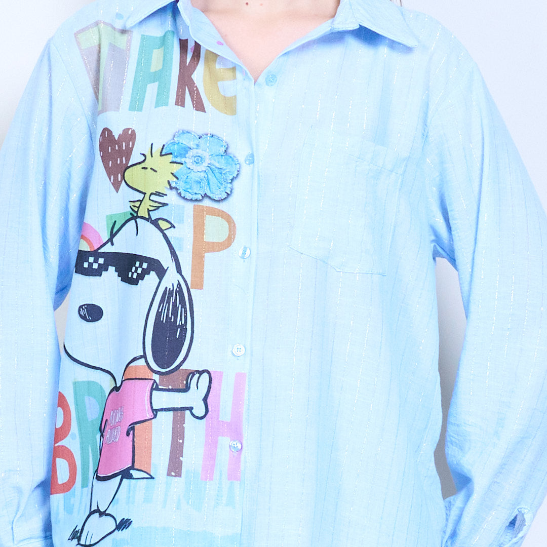 - 衬衫正面纽扣设计,穿着轻松百搭