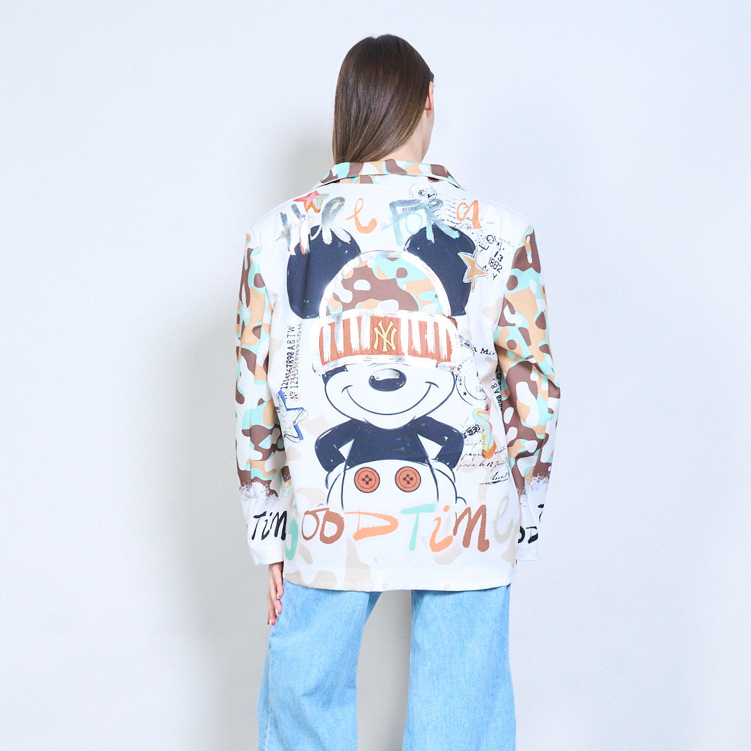 - 采用混合迷彩和图案印花,并带有动物编辑细节
