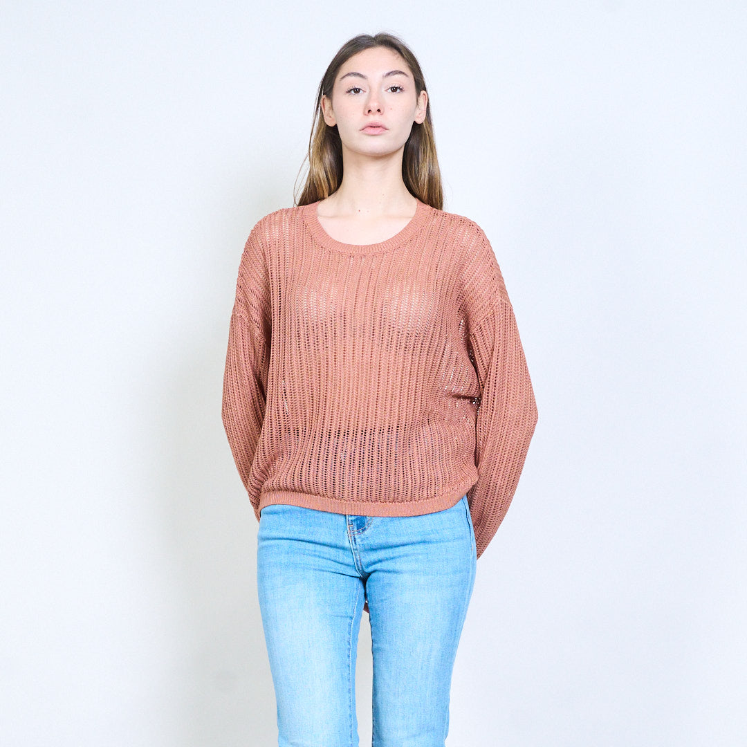 开放式针织透明网眼圆领长袖毛衣批发