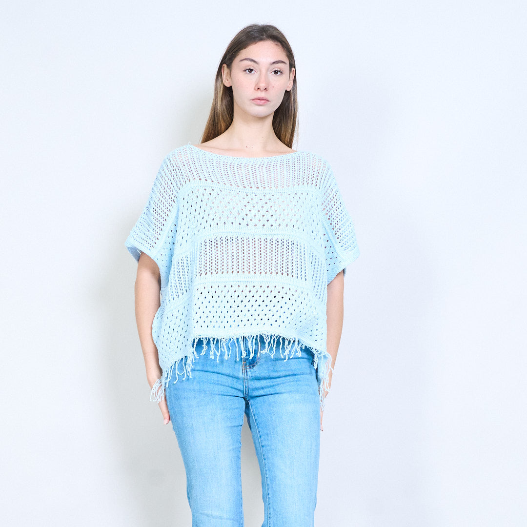 流苏下摆开口针织钩针蝙蝠翼毛衣批发