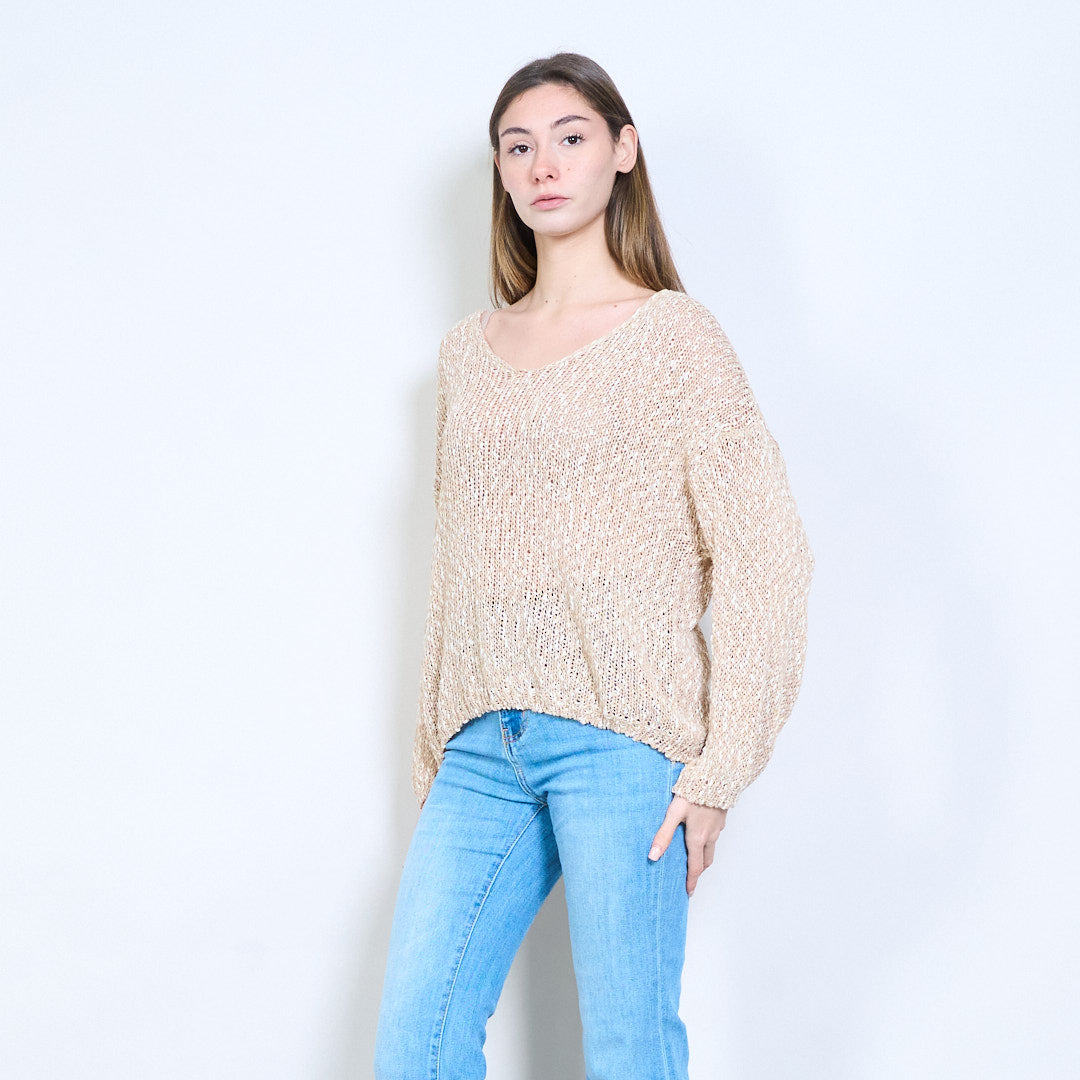 闪光针织 V 领正面纽扣长袖开衫批发