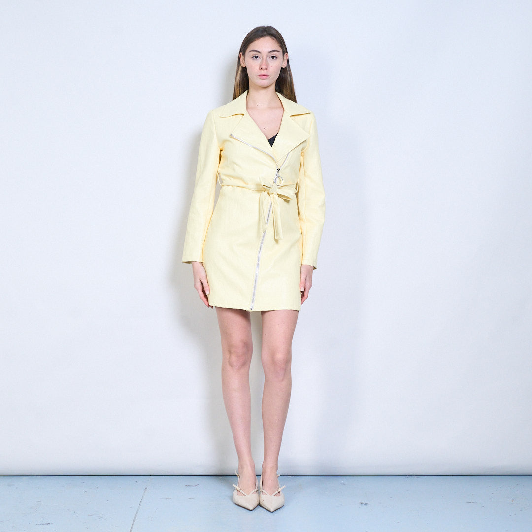 束带长款仿皮夹克批发