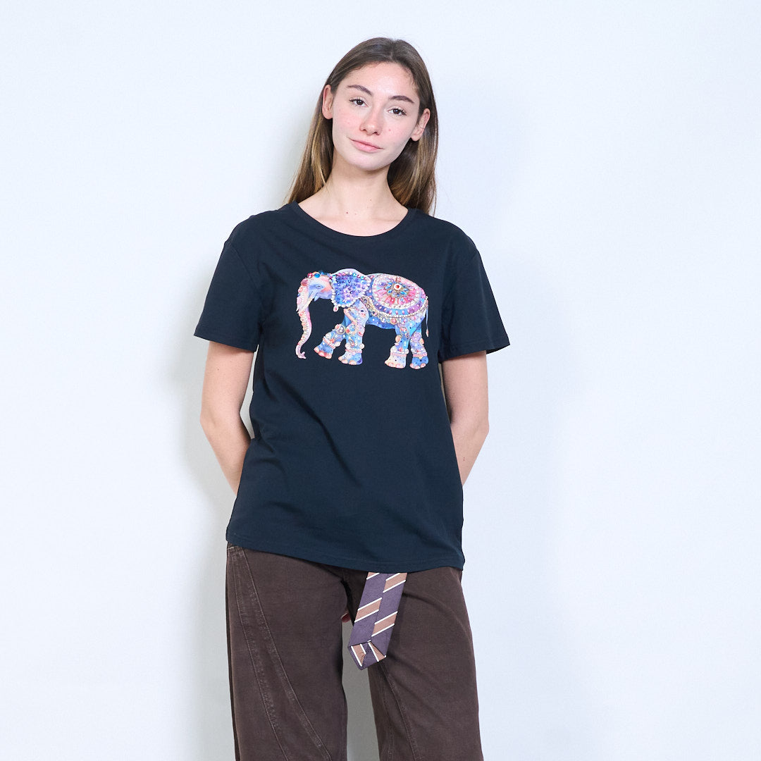 Animalia 编辑亮片水钻装饰大象图案印花 T 恤批发