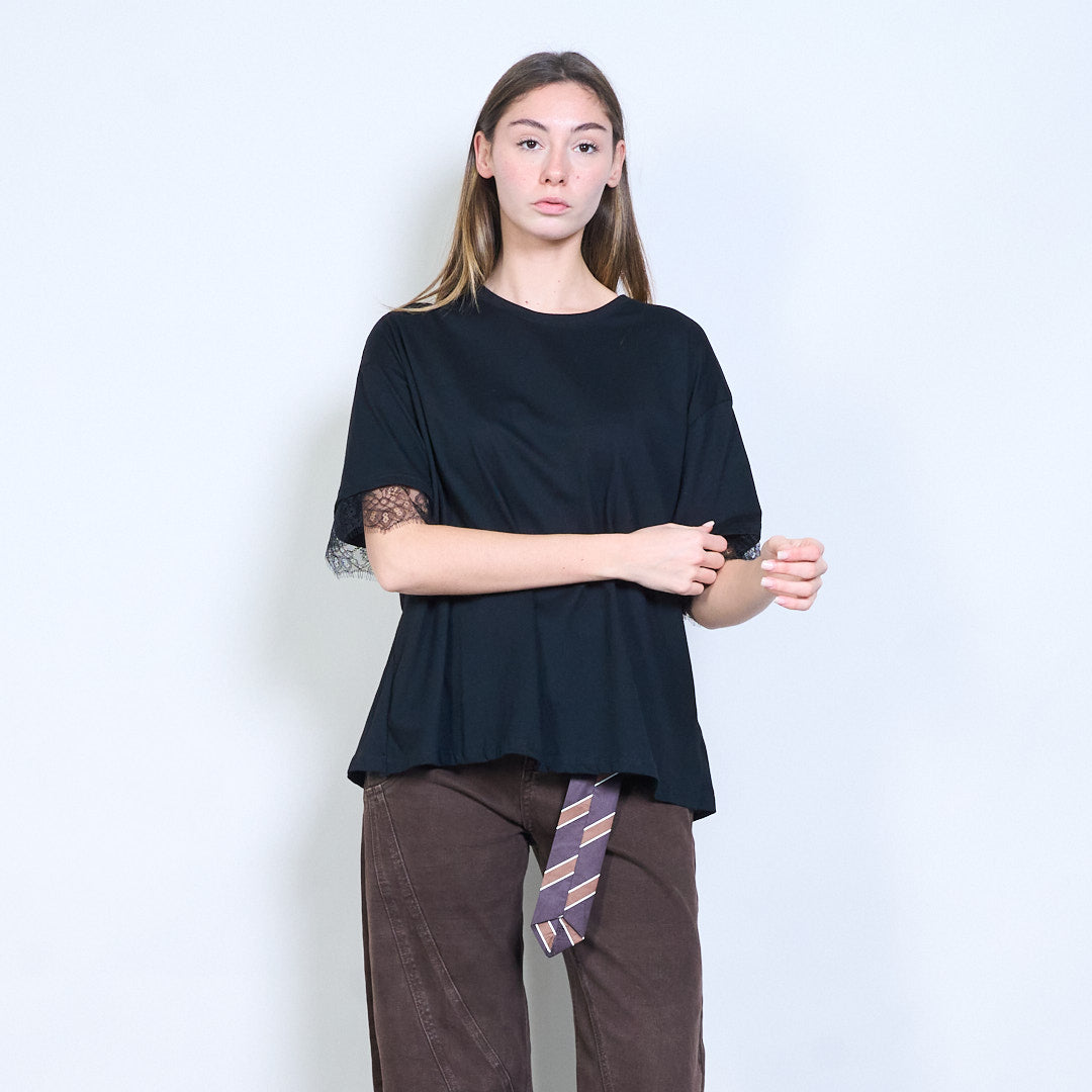 蕾丝边圆领短袖休闲衬衫T恤批发