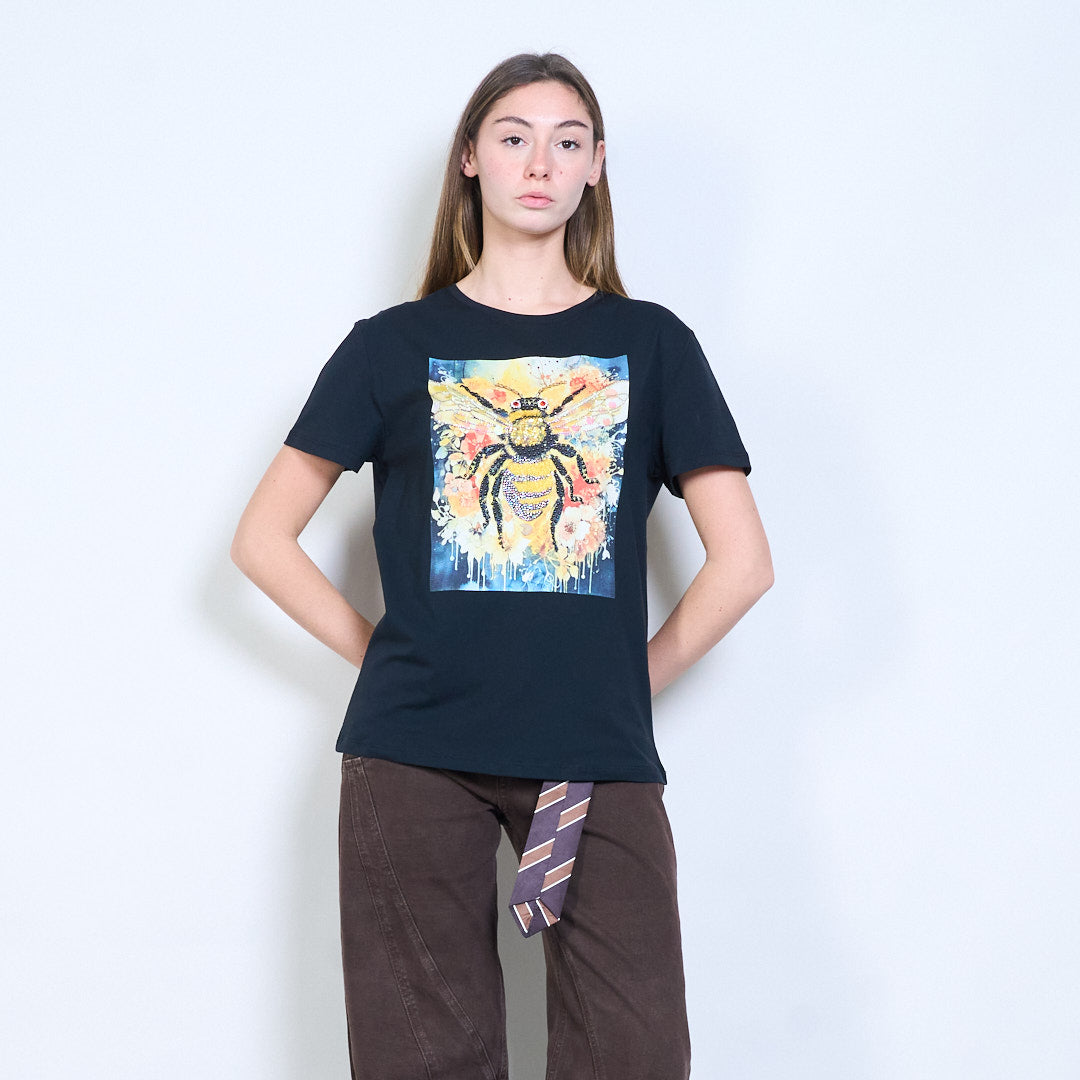 Animalia 编辑水钻装饰蜜蜂花卉艺术图案印花 T 恤批发