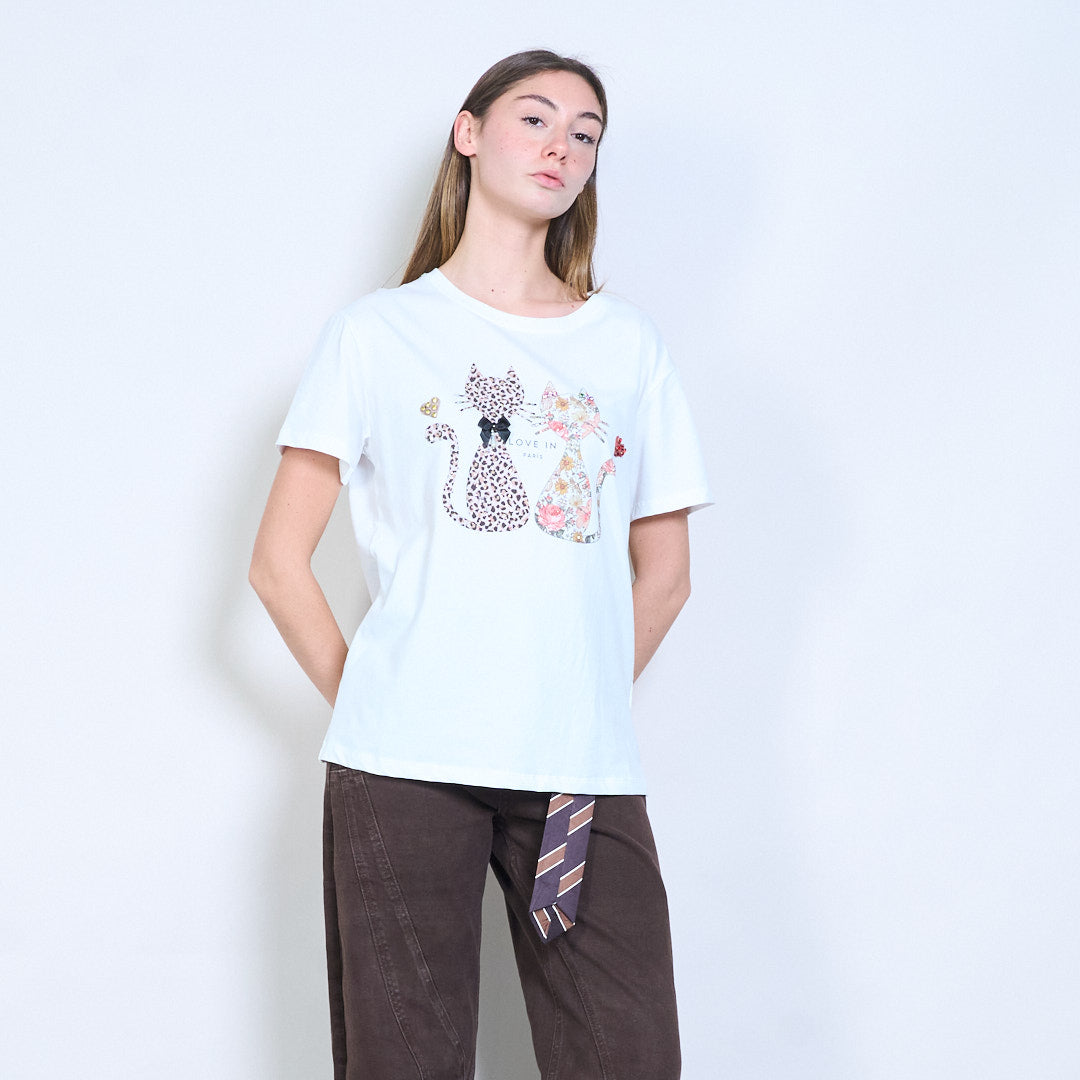Animalia 编辑花卉和豹猫图案“Love in Paris”印花 T 恤批发