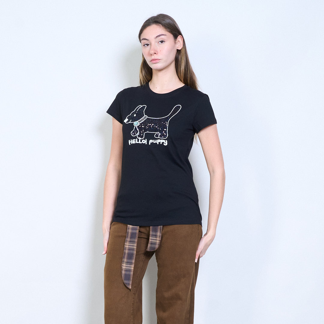 Animalia 编辑亮片水钻“Hello! Puppy”狗图案印花 T 恤批发