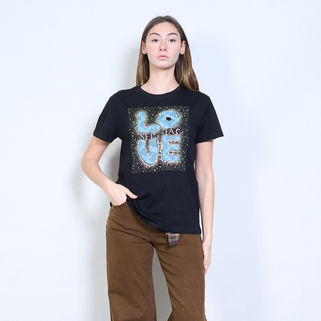 水钻“Love”牛仔布贴片字母图案印花T恤批发