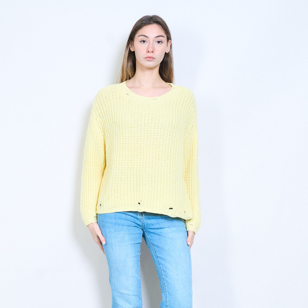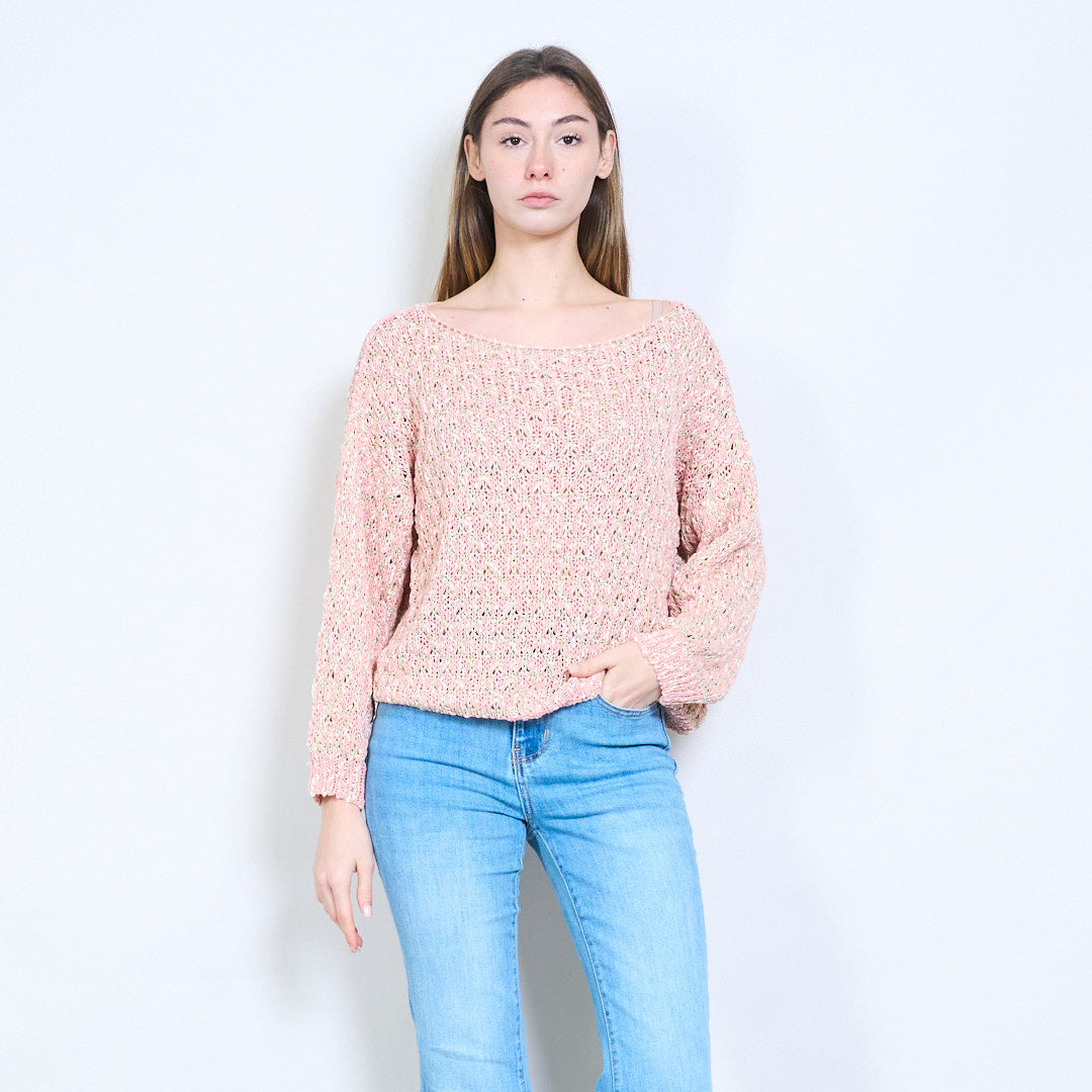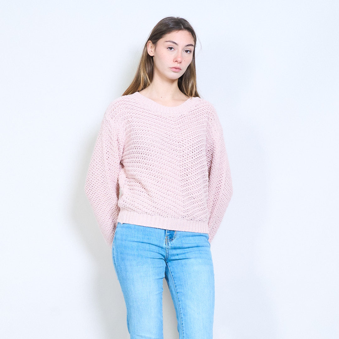 厚实纹理针织罗纹圆领灯笼袖毛衣批发