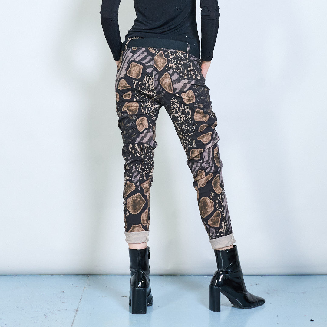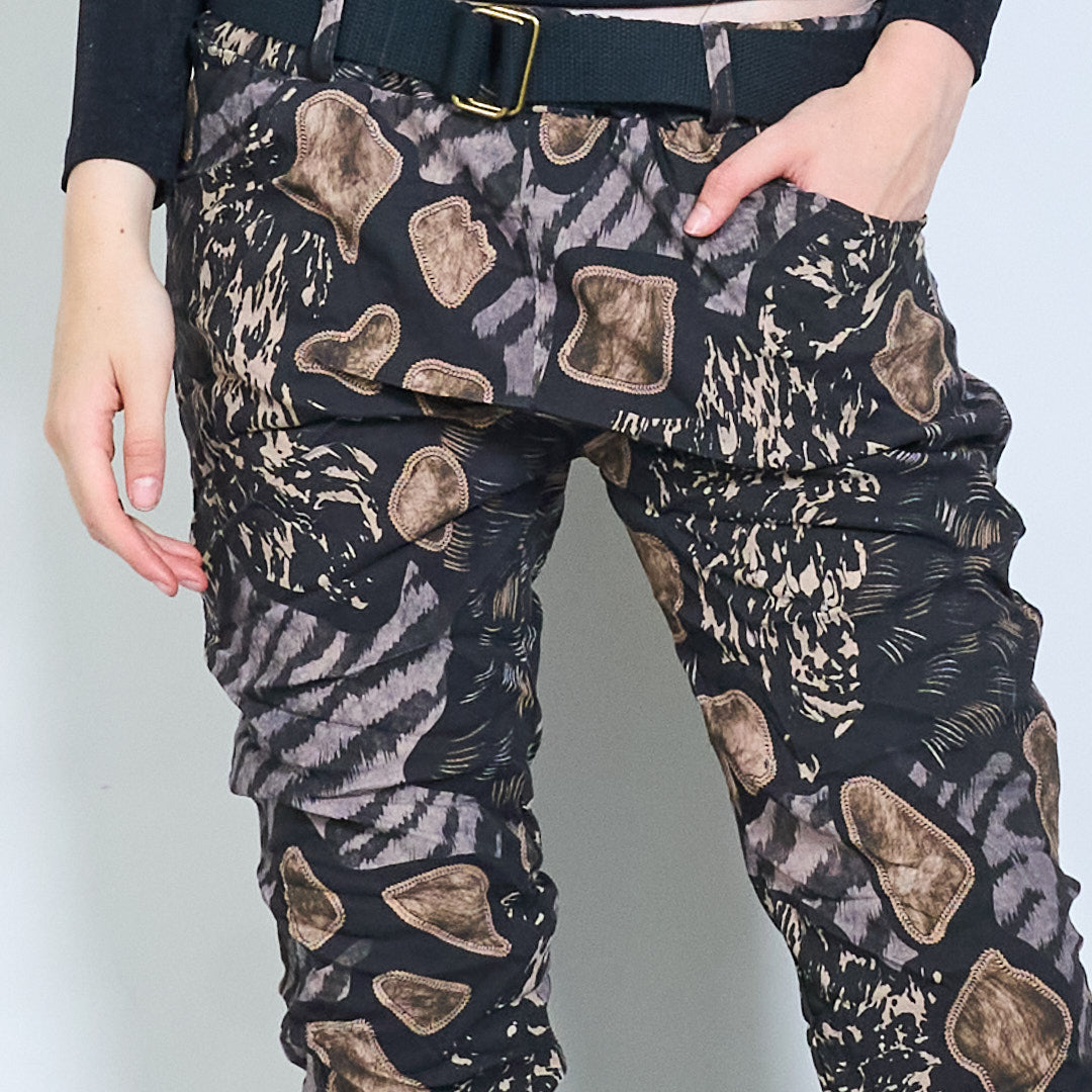 - 大胆的抽象动物风格印花,带有分层拼接细节