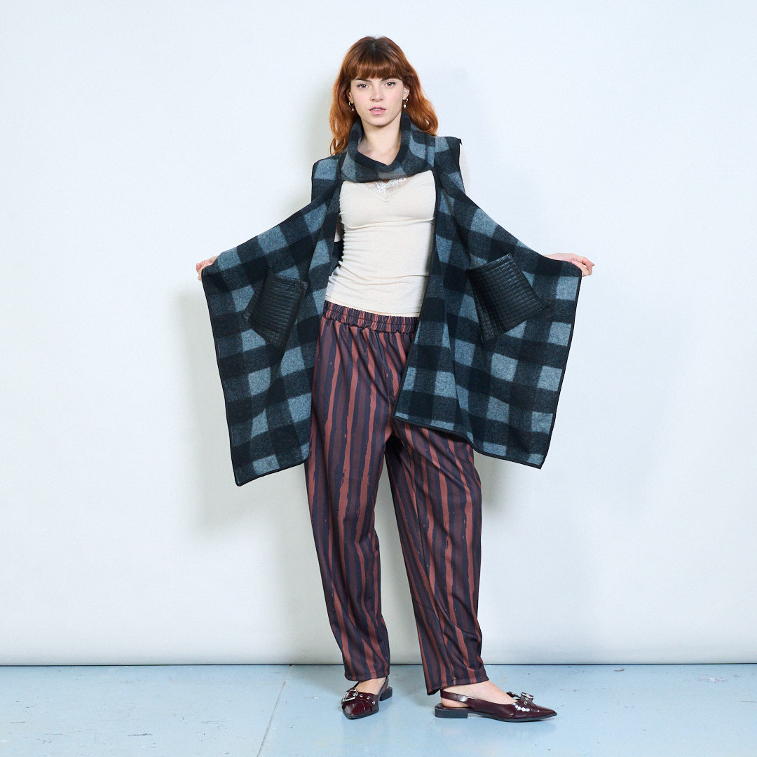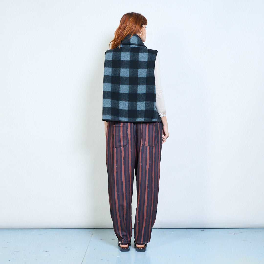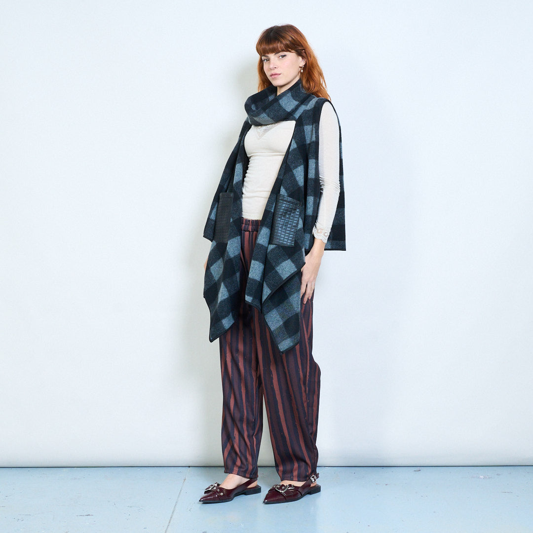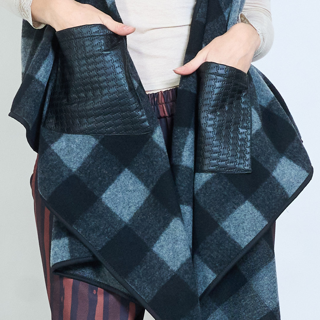 格纹垂坠无袖开襟背心夹克批发