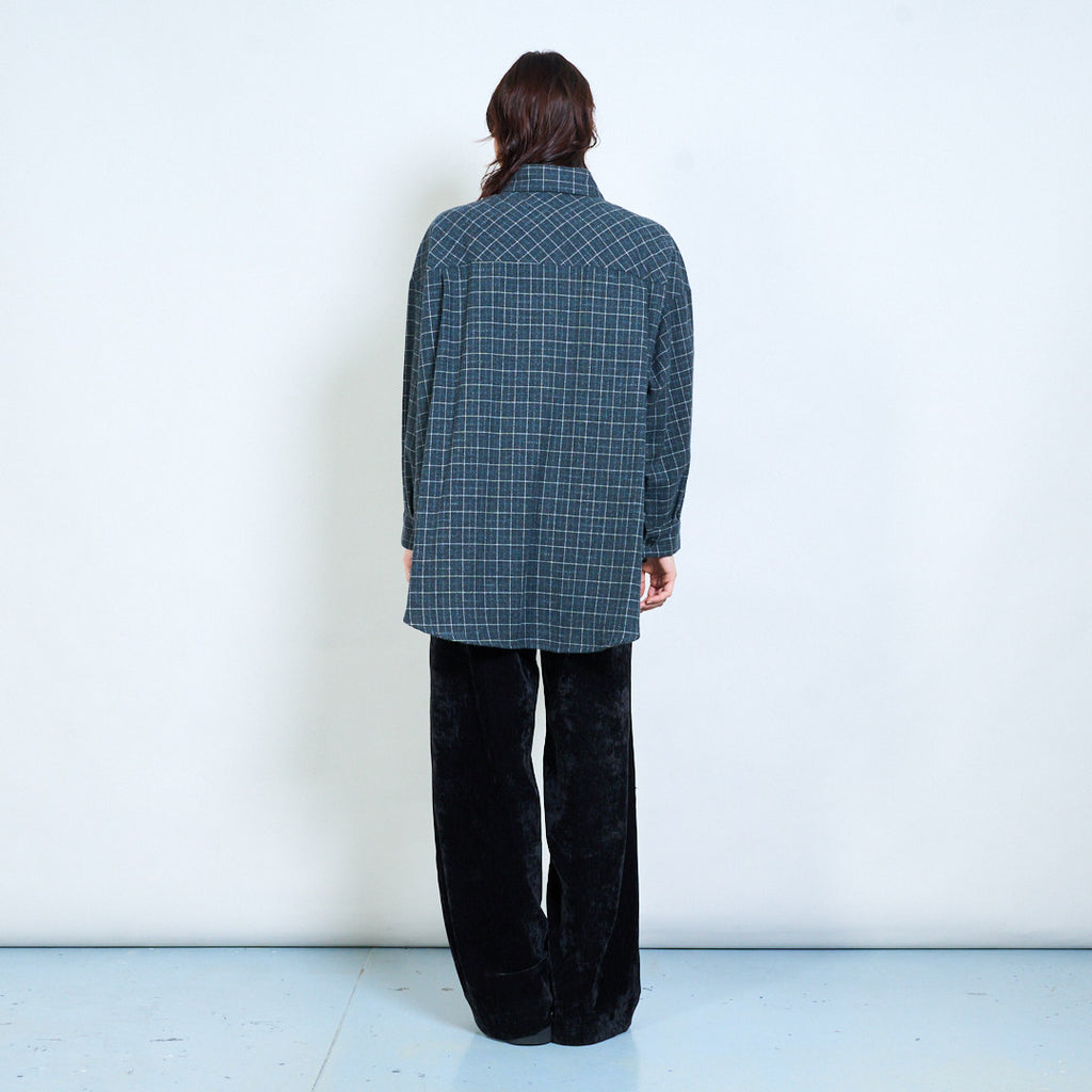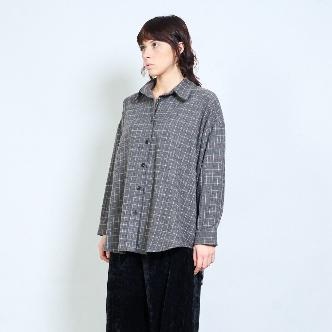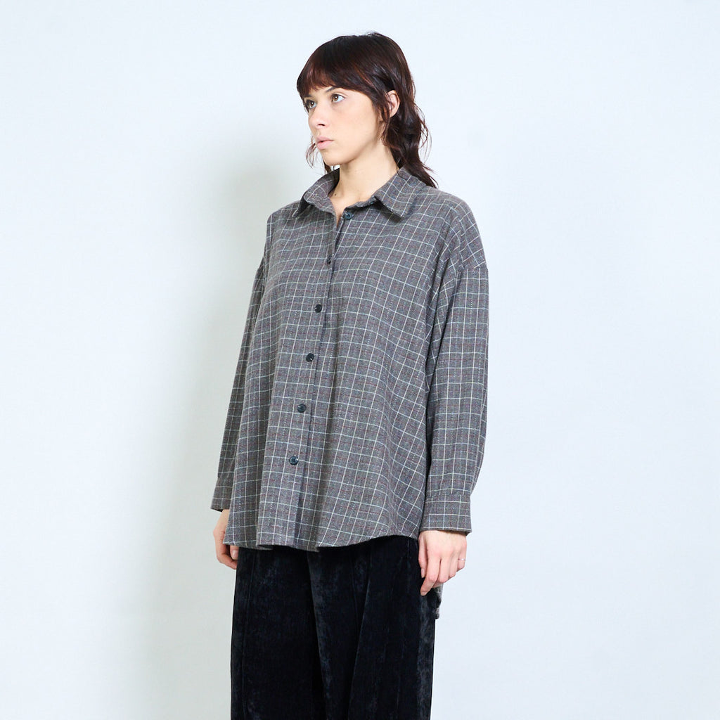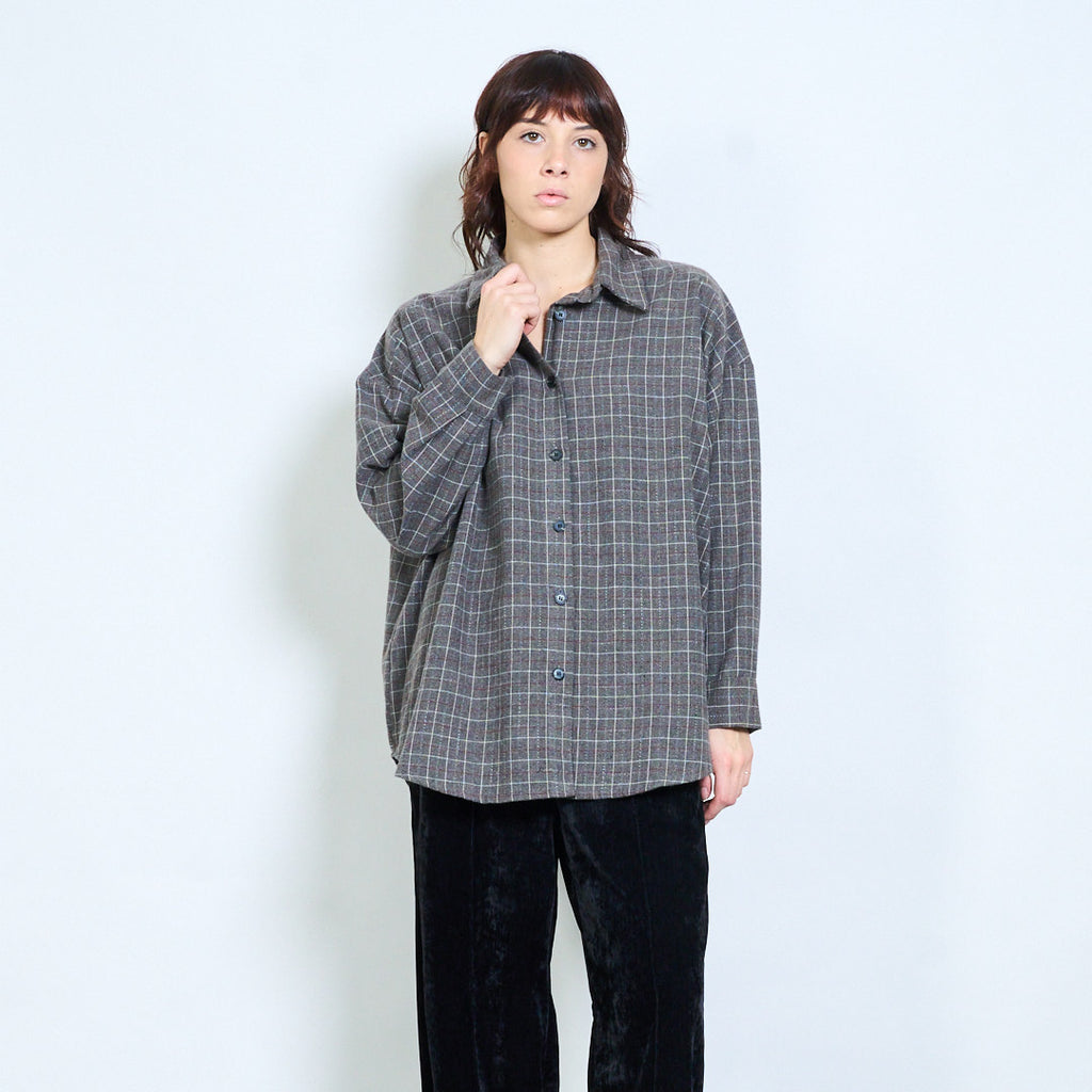 格纹宽松纽扣领衬衫批发
